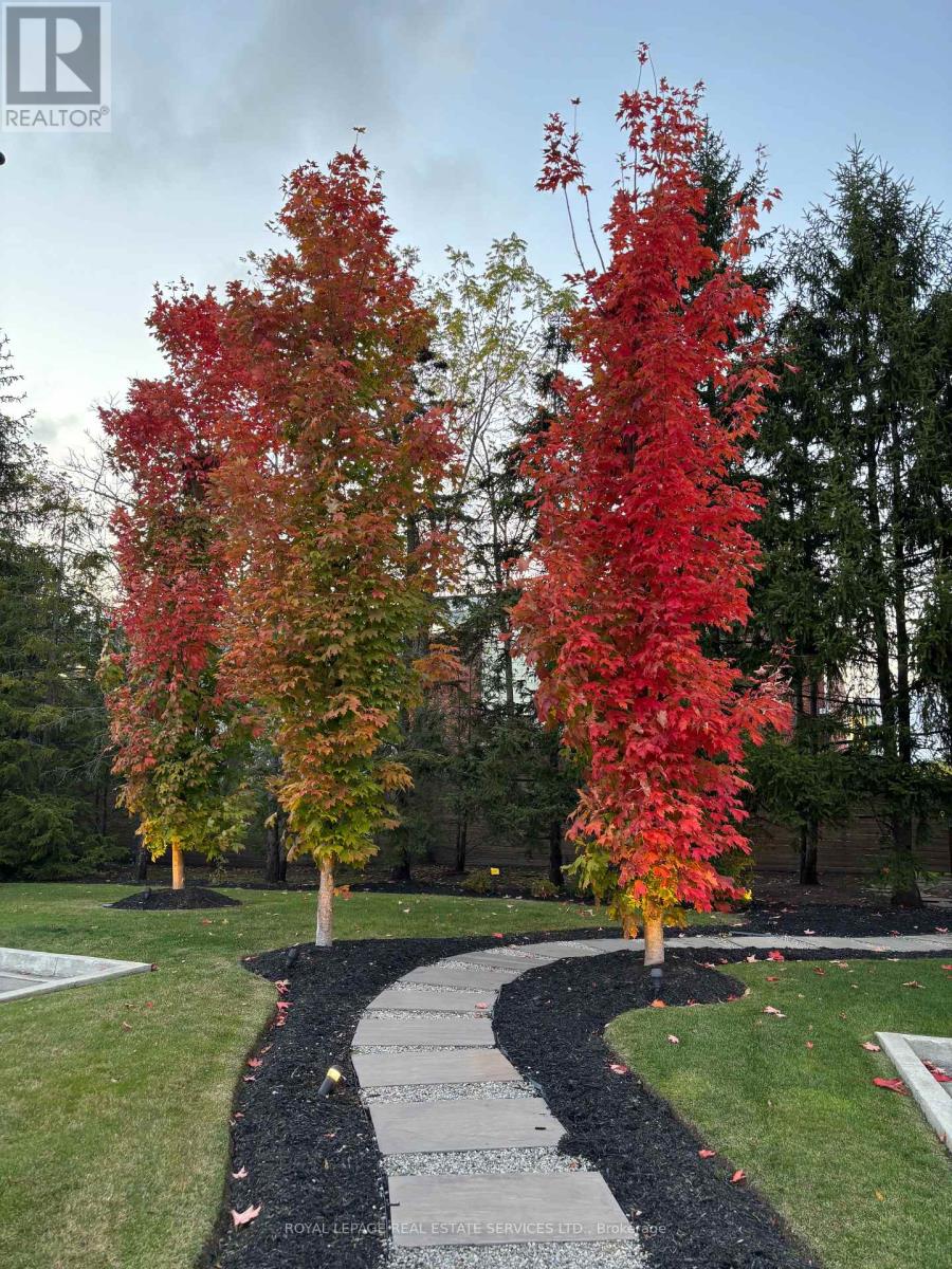 This prestigious southwest Oakville custom home offers luxury living on a large, private pie-shaped lot at the end of a quiet court off Lakeshore Road with mature trees. Ideally located between Oakville Harbour and Bronte Harbour, the property offers quick access to Lake Ontario waterfront parks and beaches,YMCA, downtown Oakville, Bronte Village, and Appleby College, as well as convenient commuter access to the QEW and Bronte GO Station. The striking exterior features a stately stone facade, precast stone accents, a covered front entry, upgraded front door, soffit lighting, and a stone-lined driveway leading to an attached double garage with inside entry. The deep, private backyard, with mature trees, features a newly installed stone patio and ample green space. Offering approximately 3,430 sq. ft. plus finished basement, this 4+1 bedroom, 4.5-bathroom home impresses with 10-foot main-floor ceilings, smooth, coffered, and tray ceiling details, deep crown mouldings, custom cabinetry, upgraded lighting, medium-stained hardwood floors on two levels, and a solid oak staircase with iron pickets spanning three levels. Main-floor living includes a spacious living room/den, formal dining room, and an elegant family room with a coffered (waffle) ceiling and gas fireplace. The chef's kitchen offers extensive custom cabinetry, stone counters and backsplash, under-cabinet lighting, an island with a breakfast bar, deluxe appliances, and a bright breakfast room with a walkout to the patio. All second-floor bedrooms feature ensuite bathroom access, including a luxurious primary suite with two walk-in closets and a spa-like 5-piece ensuite with a freestanding tub and glass shower. The professionally finished basement offers expansive open-concept living, including a recreation/games room, a fifth bedroom, and a 3-piece bathroom. Exclusive & beautiful enclave of homes! Road fee $250/month (id:64974)