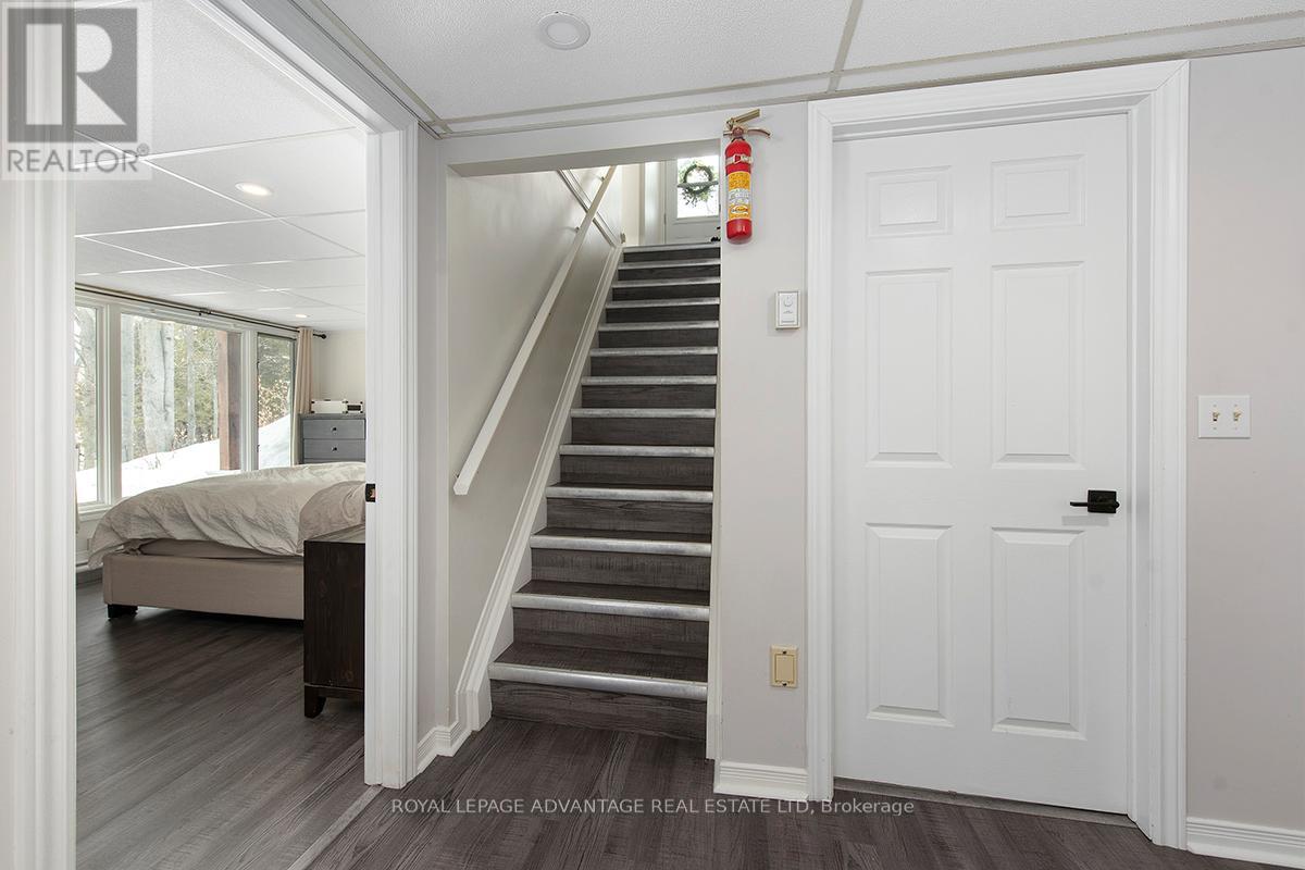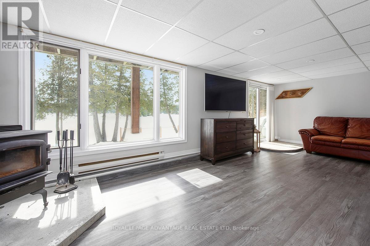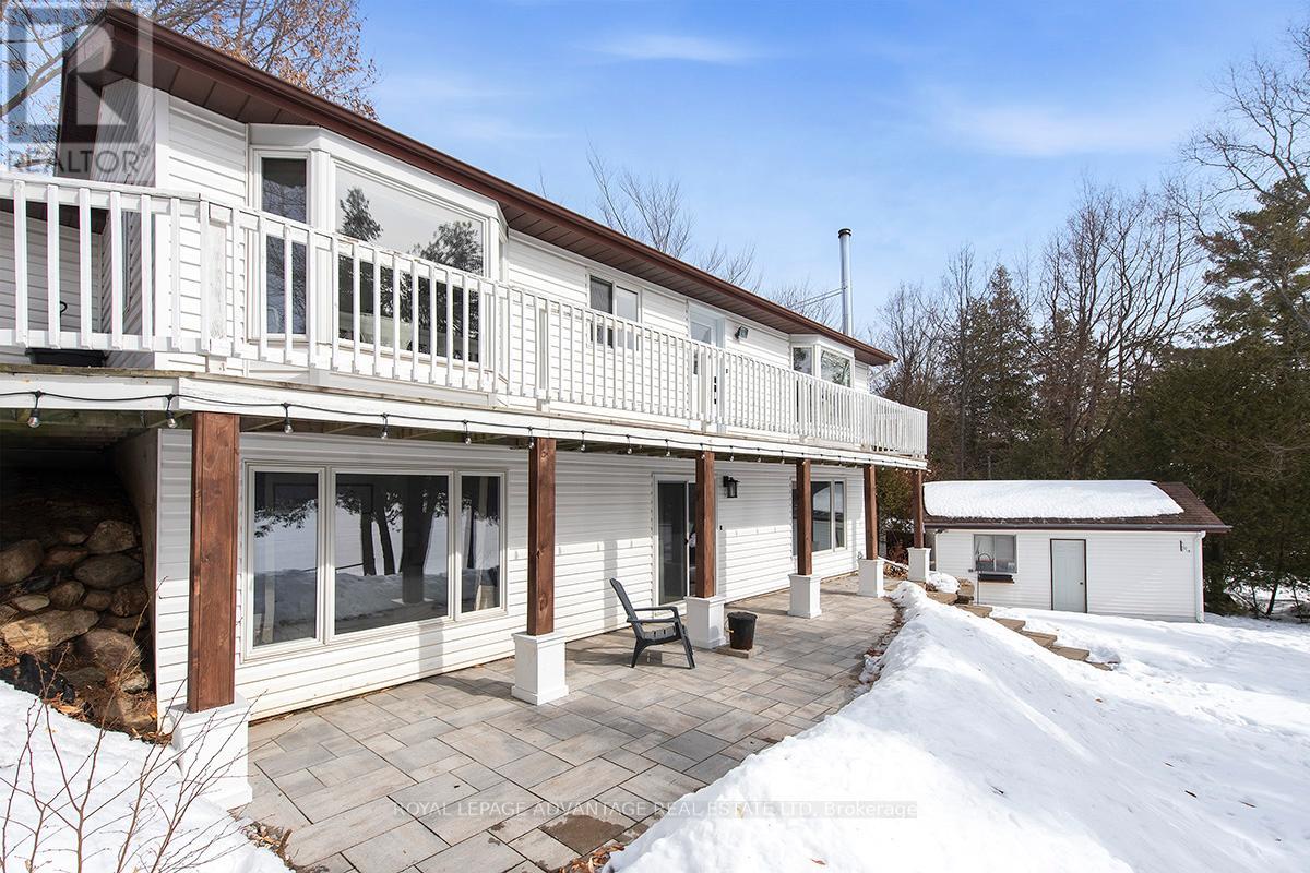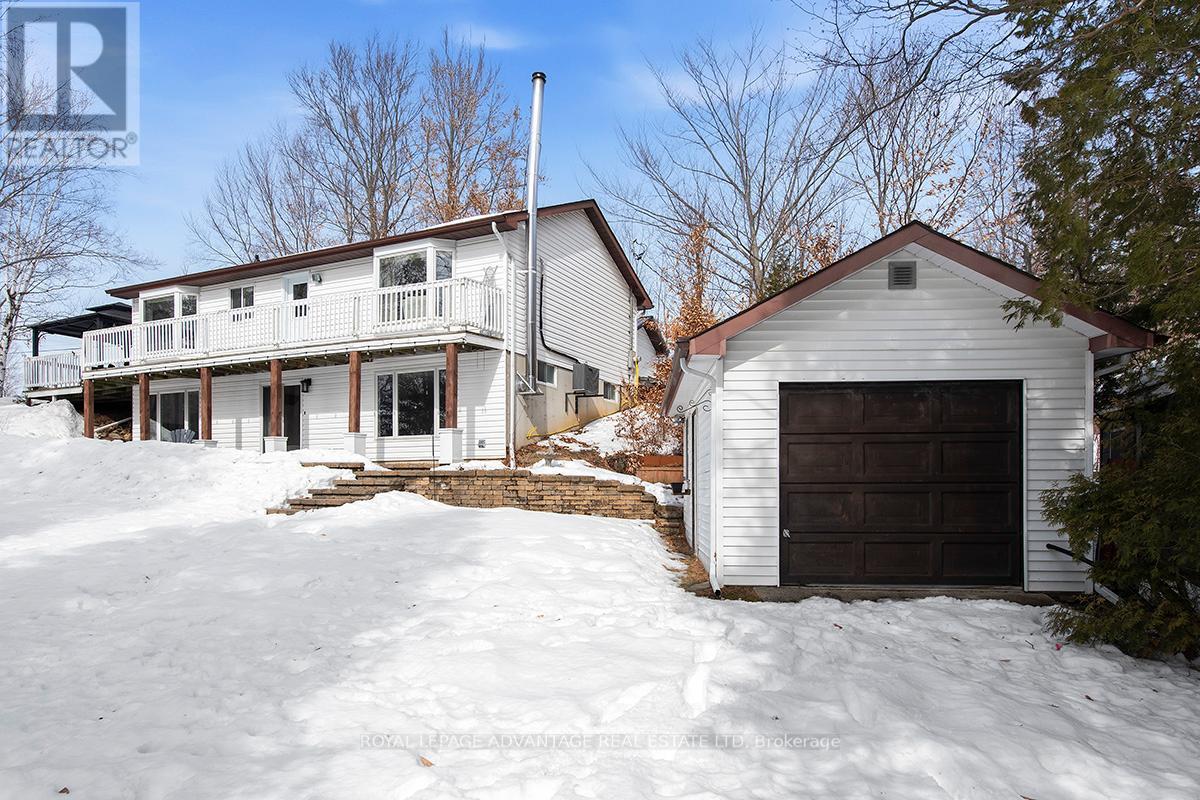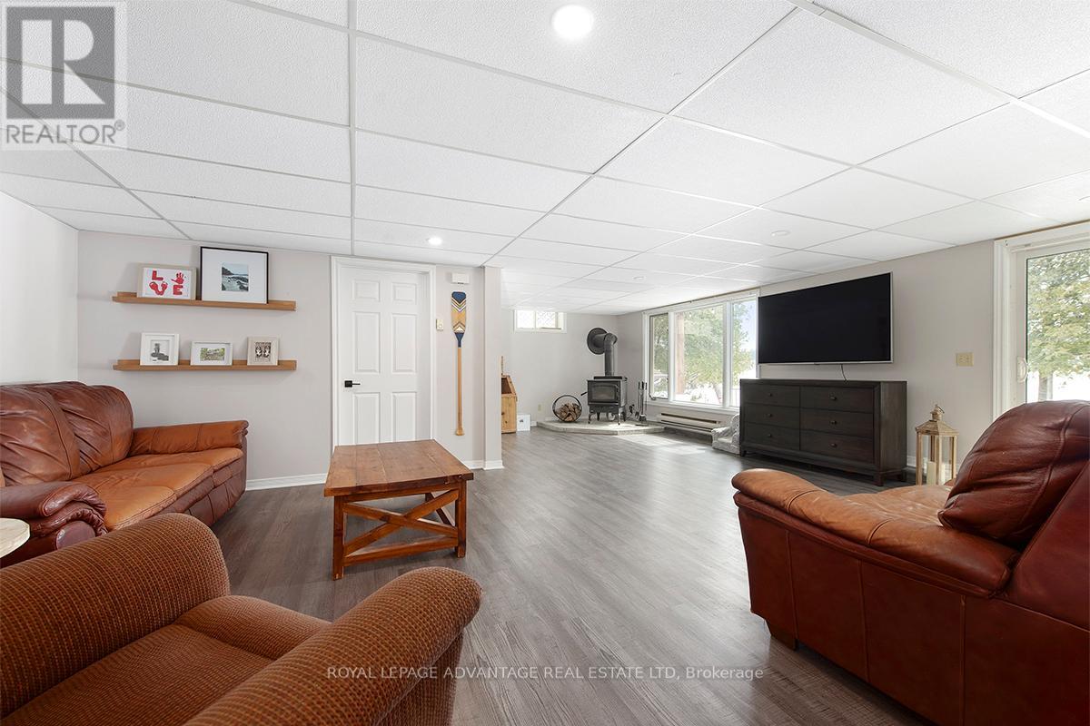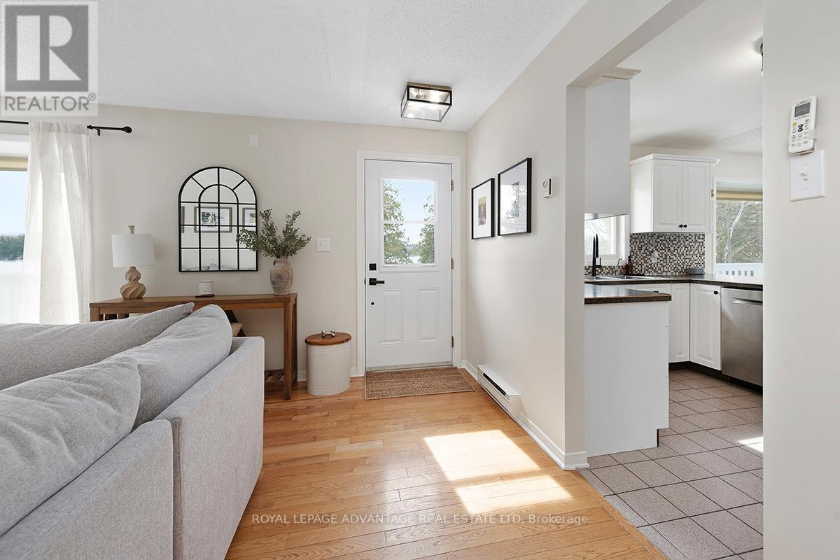 Located just off Scotch Line Road, giving you effortless year-round access, this stunning 4-season bungalow sits on over 100 feet of pristine Pike Lake frontage. Enjoy a rare and level sandy shoreline, perfect for all-ages swimming. The interior has a light and airy design, featuring a 2+1 bedroom, 1.5 bathroom layout that feels incredibly spacious. The main floor offers true one-level living convenience with access to upper viewing deck, laundry, and 4pc bathroom with dual sinks and luxurious heated floor. The lower-level features a large family room with wood stove, great sized 3rd bedroom, large storage room with additional mechanical room. The walk-out leads to an elegant interlock patio, perfect for entertaining and offering front-row seats to gorgeous lake views. From the modern finishes to the move-in-ready condition, every detail has been handled. Just bring your swimsuit and enjoy what all lake life has to offer! (id:64974)
