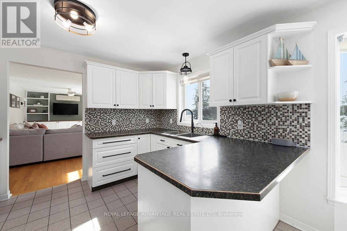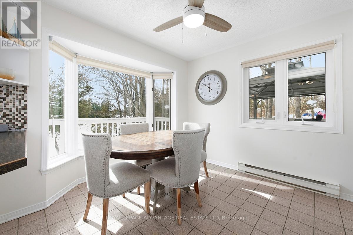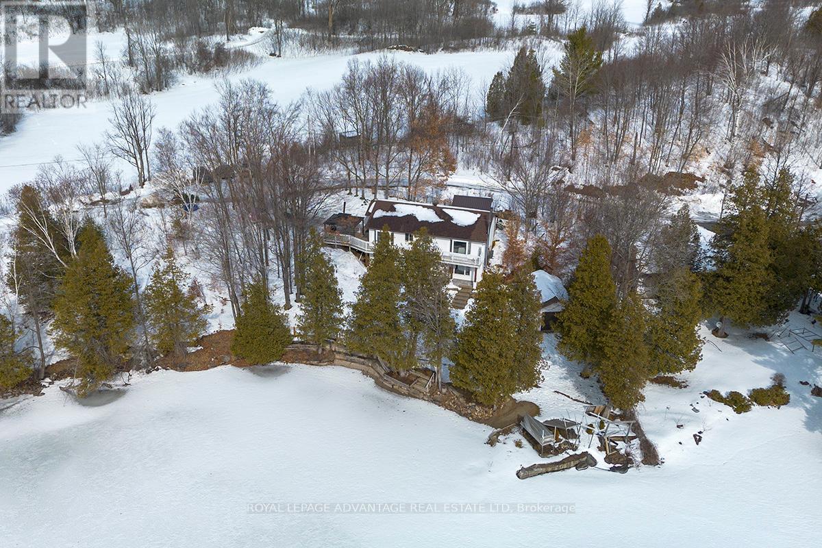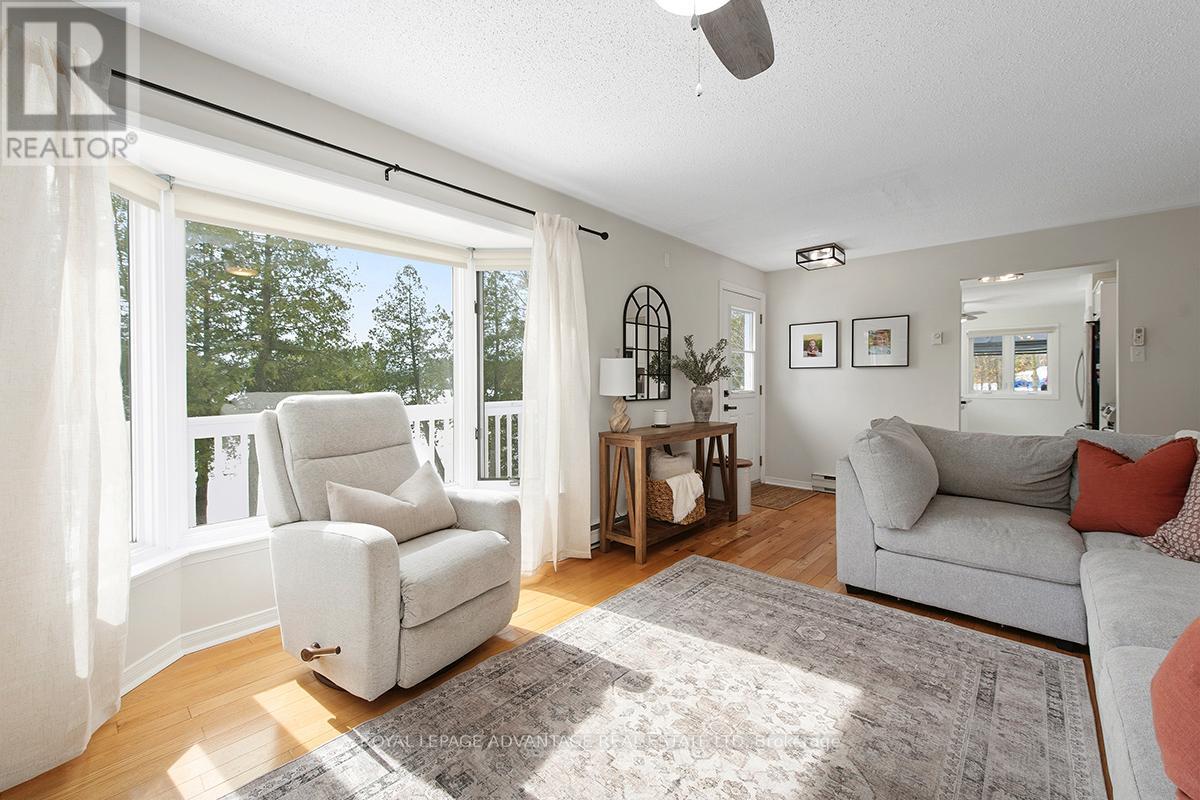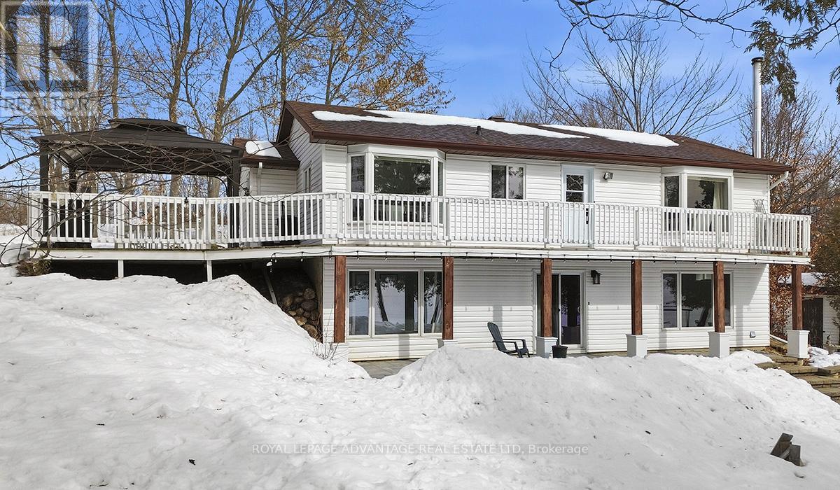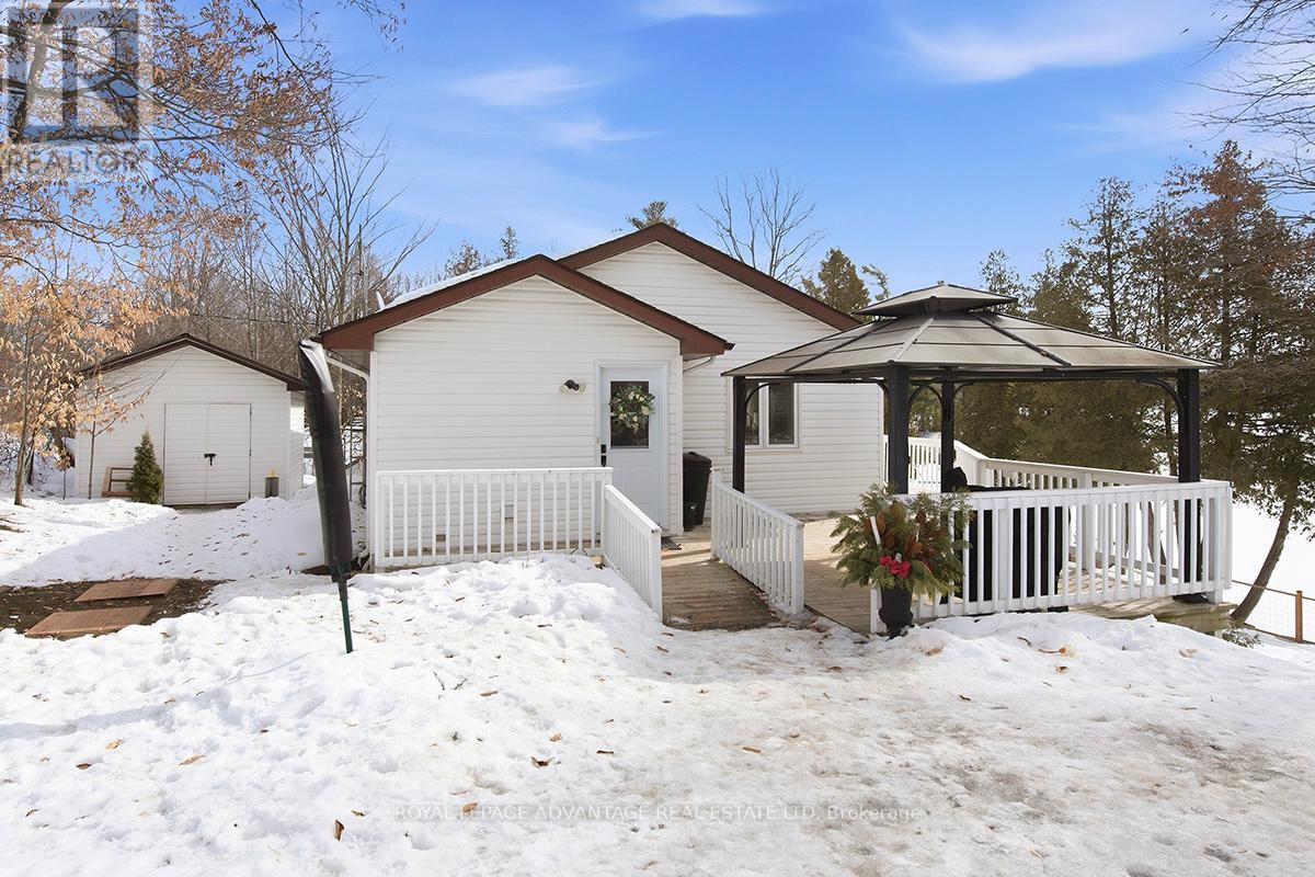Located just off Scotch Line Road, giving you effortless year-round access, this stunning 4-season bungalow sits on over 100 feet of pristine Pike Lake frontage. Enjoy a rare and level sandy shoreline, perfect for all-ages swimming. The interior has a light and airy design, featuring a 2+1 bedroom, 1.5 bathroom layout that feels incredibly spacious. The main floor offers true one-level living convenience with access to upper viewing deck, laundry, and 4pc bathroom with dual sinks and luxurious heated floor. The lower-level features a large family room with wood stove, great sized 3rd bedroom, large storage room with additional mechanical room. The walk-out leads to an elegant interlock patio, perfect for entertaining and offering front-row seats to gorgeous lake views. From the modern finishes to the move-in-ready condition, every detail has been handled. Just bring your swimsuit and enjoy what all lake life has to offer! (id:64974)