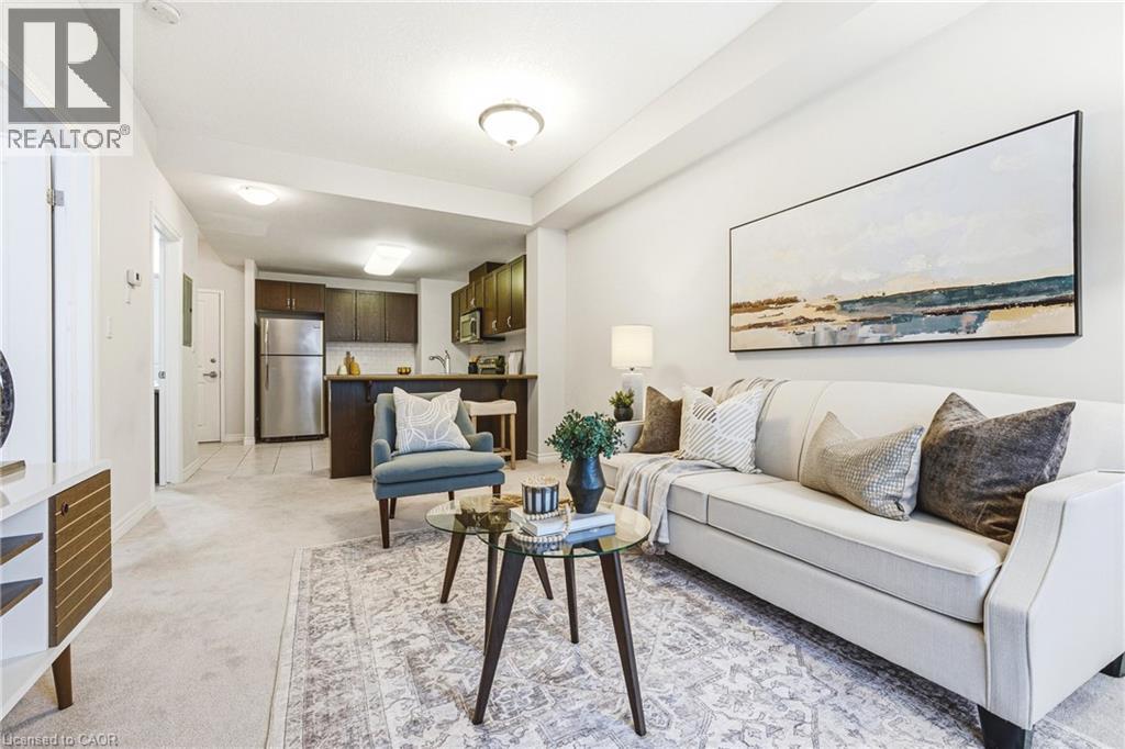 Rare find in Ancaster’s prestigious Stonegate building, featuring award-winning gardens surrounded by trees and offering a fantastic walkability score. This 1 bedroom, 1 bath Tranquility model is a perfect opportunity and offers a private balcony overlooking gardens. Just steps to grocery stores, pharmacy, banks, restaurants, trails, and easy access to highway 403. The unit offers an open living room, kitchen, a spacious bedroom & 4 piece bathroom. In-suite laundry. This building features a tastefully decorated lobby, large party room and gym – all recently updated. Off the party room is a generously sized patio with pergola and gas barbeque. There is also a car wash area located in the parking garage. Exclusive use of 1 parking space and a locker. Condo fees include: internet, exterior maintenance, common elements, water, parking and building insurance. Small pets allowed (refer to the status certificate for full details). Move right in and enjoy all that this unit and Ancaster have to offer minutes from your door. Room sizes approximate (id:64974)