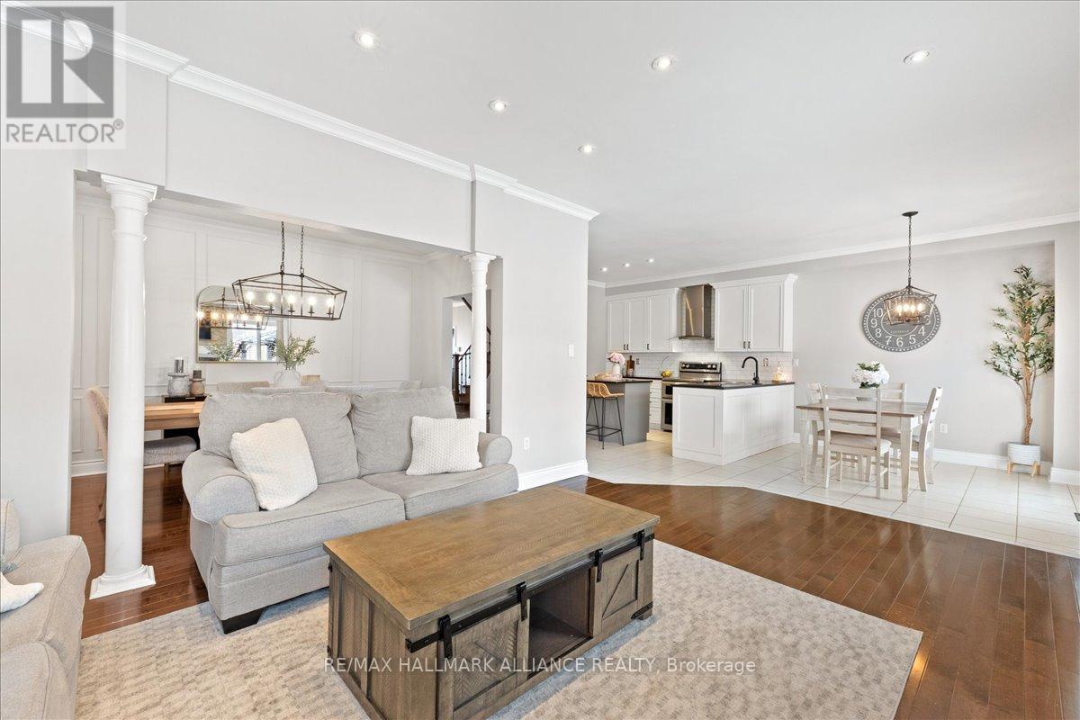 Nestled in one of Milton's most desirable and family-friendly neighbourhoods, this beautifully upgraded home offers the perfect blend of modern elegance, comfort, and future potential. Surrounded by scenic parks, top-rated schools, walking trails, and convenient access to shopping, highways, and transit, this location delivers exceptional lifestyle value for growing families and commuters alike. Step inside to discover a bright and spacious open-concept floor plan designed for both everyday living and entertaining. Featuring 9-foot ceilings, modern finishes, stylish accent walls, and a striking oak staircase, the main level flows seamlessly from room to room. The inviting living area is anchored by a cozy gas fireplace, creating the perfect space to gather with family and friends. Originally designed as a 4-bedroom plus den home, this layout has been thoughtfully converted by the Builder into a spacious 3-bedroom design with a generous second-floor family room - ideal as a media space, playroom, or home office. Buyers have the option to easily convert it back to a 4-bedroom layout if desired. The primary suite is a private retreat, complete with his and hers closets and a luxurious 4-piece ensuite featuring a separate shower and a deep soaker tub - perfect for unwinding at the end of the day. The unfinished basement offers a blank canvas with endless possibilities - design your dream recreation space, home gym, or explore potential for a future rental suite. Exterior highlights include aggregate concrete wrapping around the home, exterior pot lights, and a fully landscaped yard ideal for outdoor entertaining. Major updates provide peace of mind: A/C (2019), roof (2021), fence (2024), kitchen appliances (2020).This is a rare opportunity to own a meticulously maintained home on a premium lot in a thriving Milton community. Move in and make it yours! (id:64974)