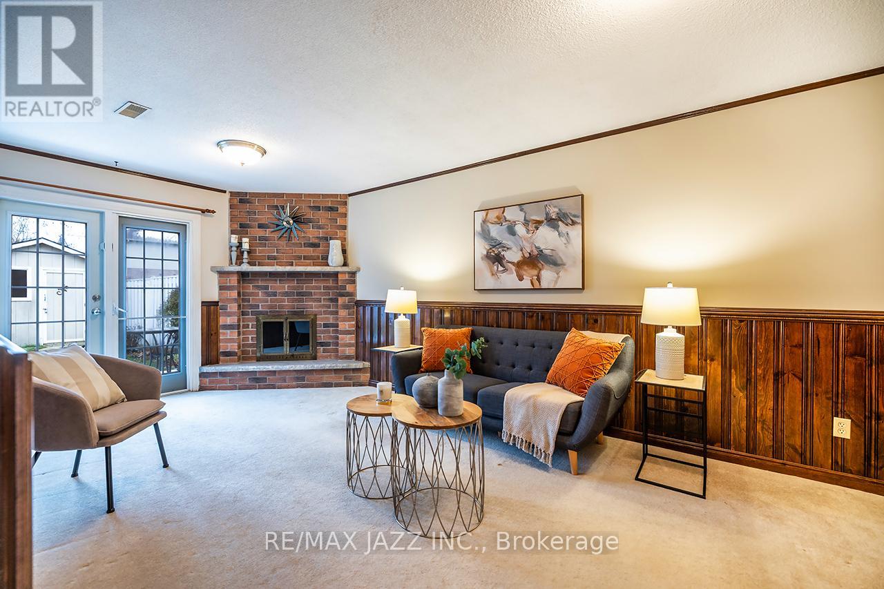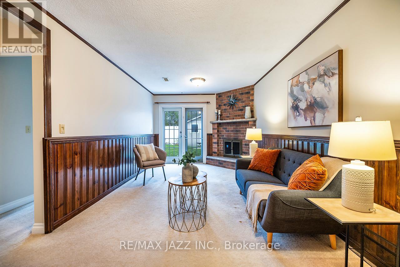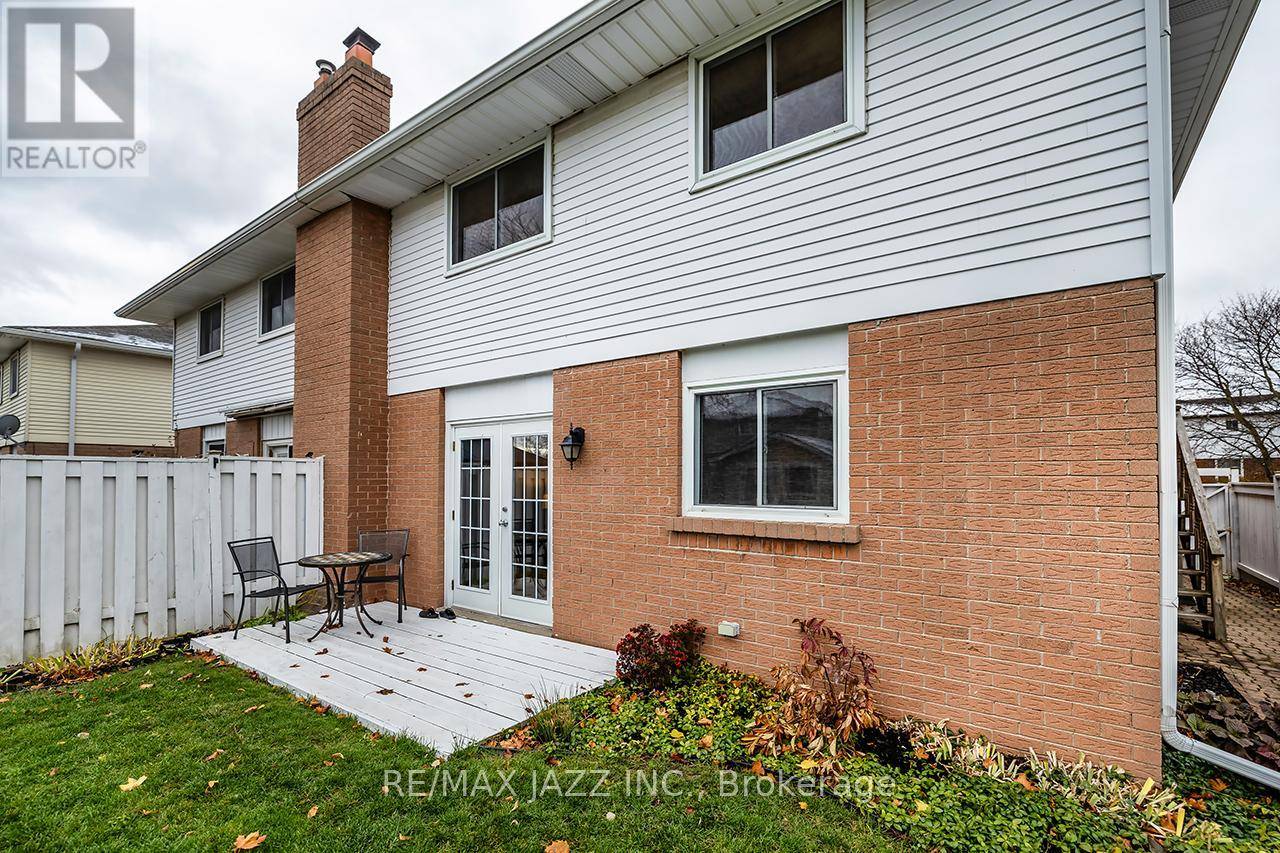Beautiful move-in-ready 3-bedroom, 2-bath home in the sought-after Donevan community, backing directly onto Terry Fox park. This large and spacious 4 level back-split offers a bright open-concept living and dining area with a walkout to a covered patio, eat-in kitchen with ceramic floors. Upstairs you'll find two generous bedrooms and a full bathroom. The ground level includes a third bedroom, a cozy family room with a fireplace and walkout to the backyard, plus an additional bathroom. Single-car garage with indoor access. The private backyard with no neighbours behind features a large deck, additional storage shed and a flagstone walkway. This home features a gas furnace and central air conditioning and offers plenty of storage space. Excellent family location minutes to schools, parks, shopping and the 401 for commuters! Do not miss it! (id:64974)