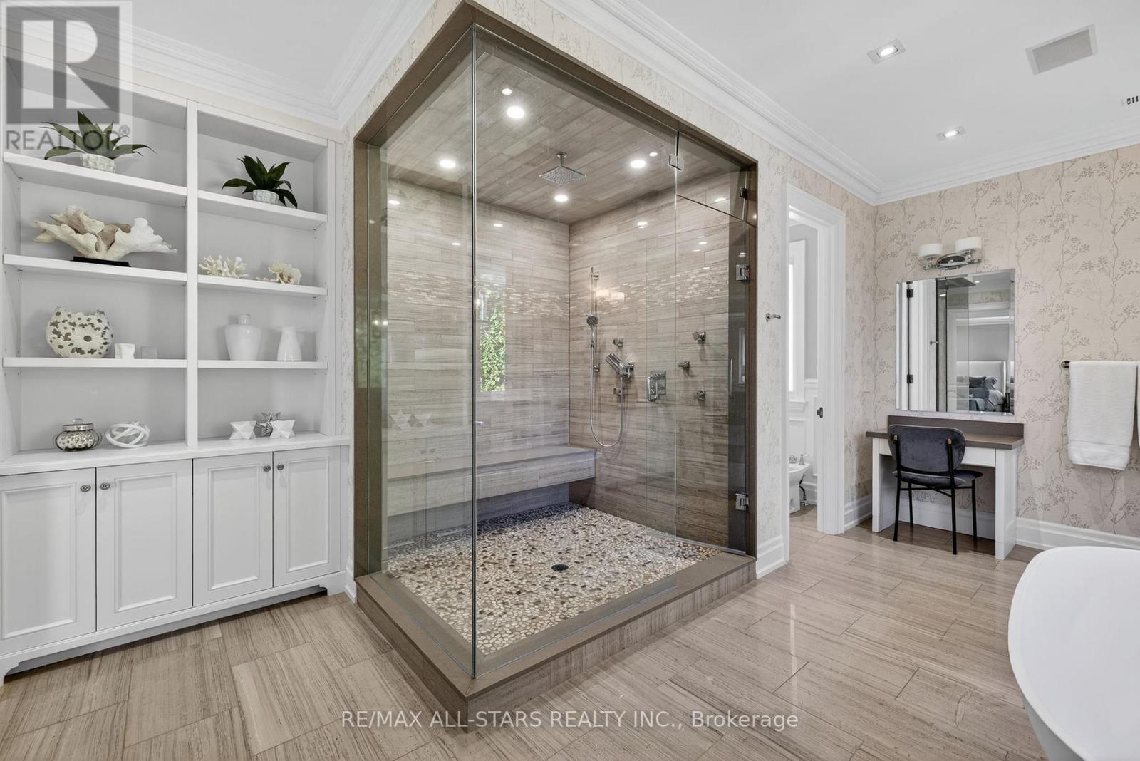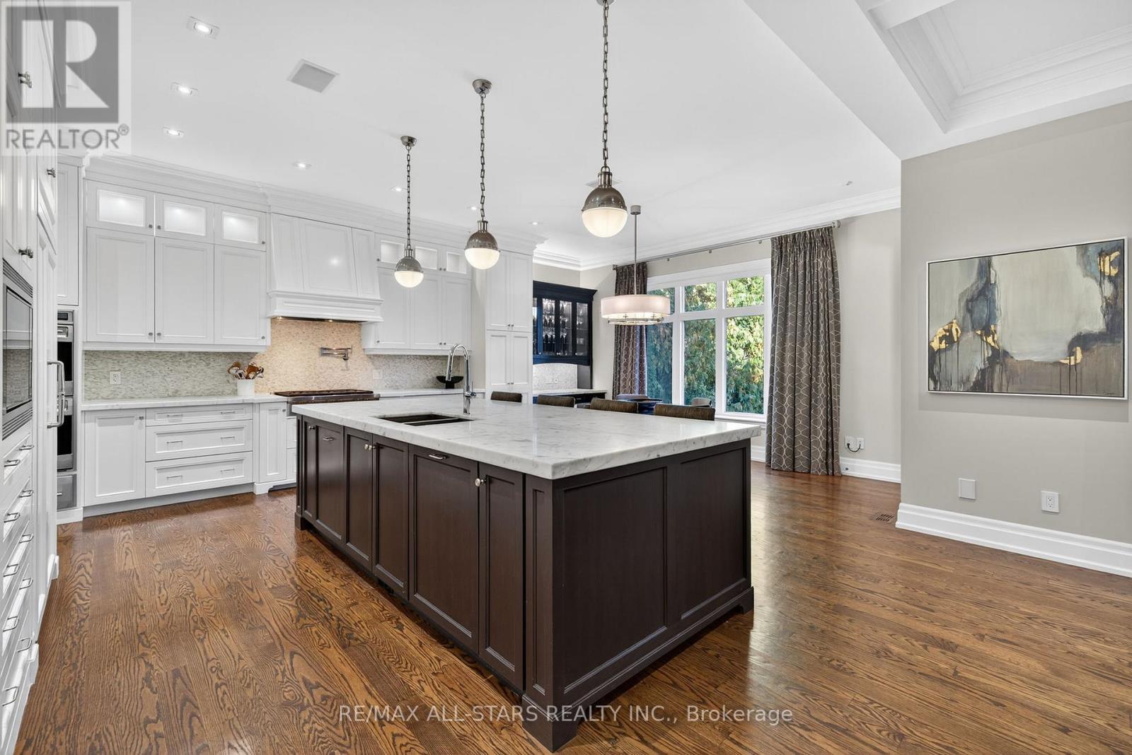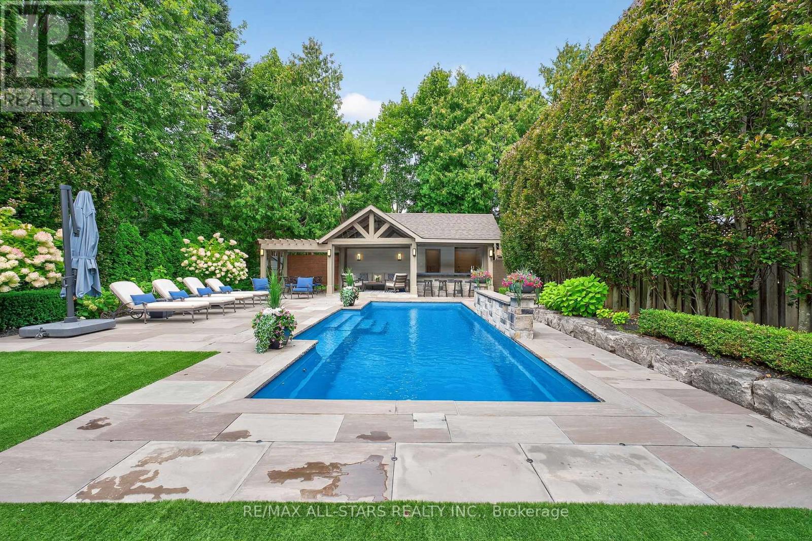 *See video tour! Welcome to this one-of-a-kind, custom-built luxury residence on a prestigious street in the Aurora Village. Nestled on a 54 x 199.5 ft. professionally landscaped lot, this immaculate home showcases over 6,000 sq. ft. of finished living space, with no detail overlooked and pride of ownership throughout.The elegant main floor features 10-ft ceilings, custom wainscoting and moldings, solid wood doors and built-ins. Enjoy formal living and dining rooms, a private office, large family room and chefs kitchen complete with Wolf & SubZero appliances, dumb waiter to the garage, marble counters, and a walk-in pantry. From the main floor walk out to a screened-in porch overlooking the backyard oasis with a heated in-ground pool, hot tub, bbq table with wood oven and grill, cabana with seating area, servery and a 2-pc bath. The home's second floor boasts tray ceilings in all bedrooms and a gorgeous primary suite with a gas fireplace, terrace walk-out, and spa-like 6-pc ensuite. The lower level offers hydronic heated floors, a prep kitchen, a spacious rec room, and a walk-out to the backyard.Additional highlights include: four-car tandem heated garage, snowmelt driveway, electric heated floors in bathrooms and foyer, four fireplaces, custom built-ins, 230+ potlights, 2 x furnace, 2 x AC, 2 x HRV and Generac generator. No disappointments here! See attached feature sheet for full list of impressive features. (id:64974)