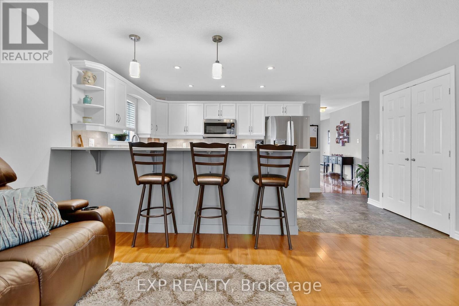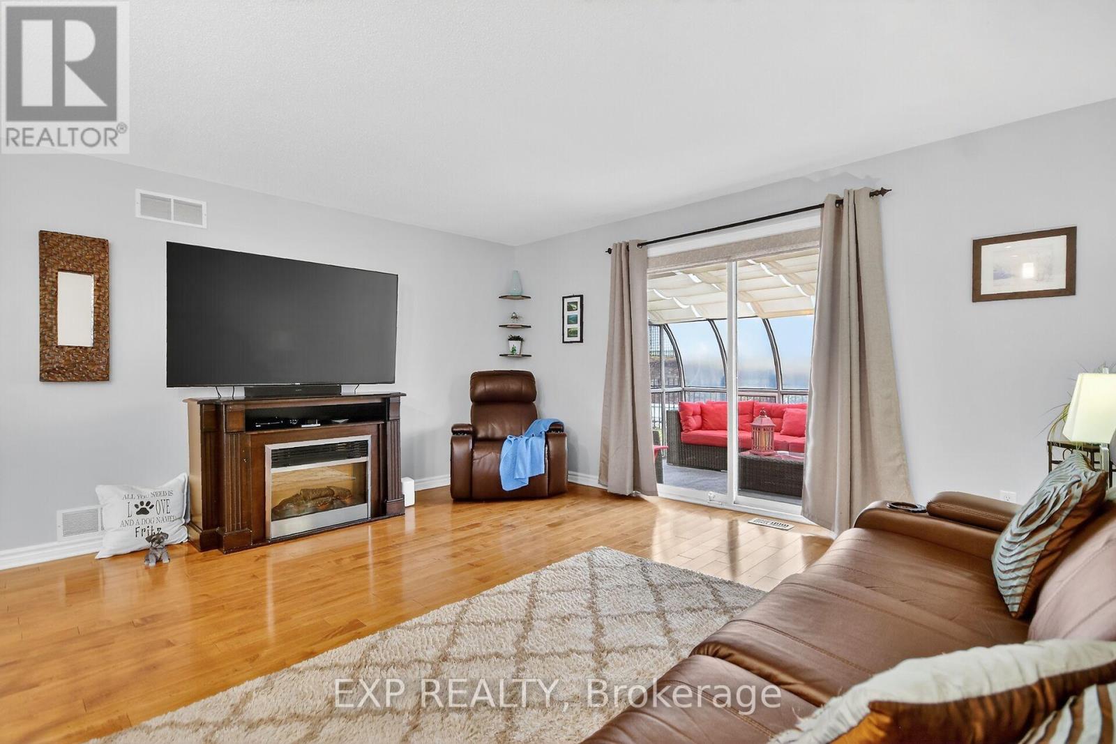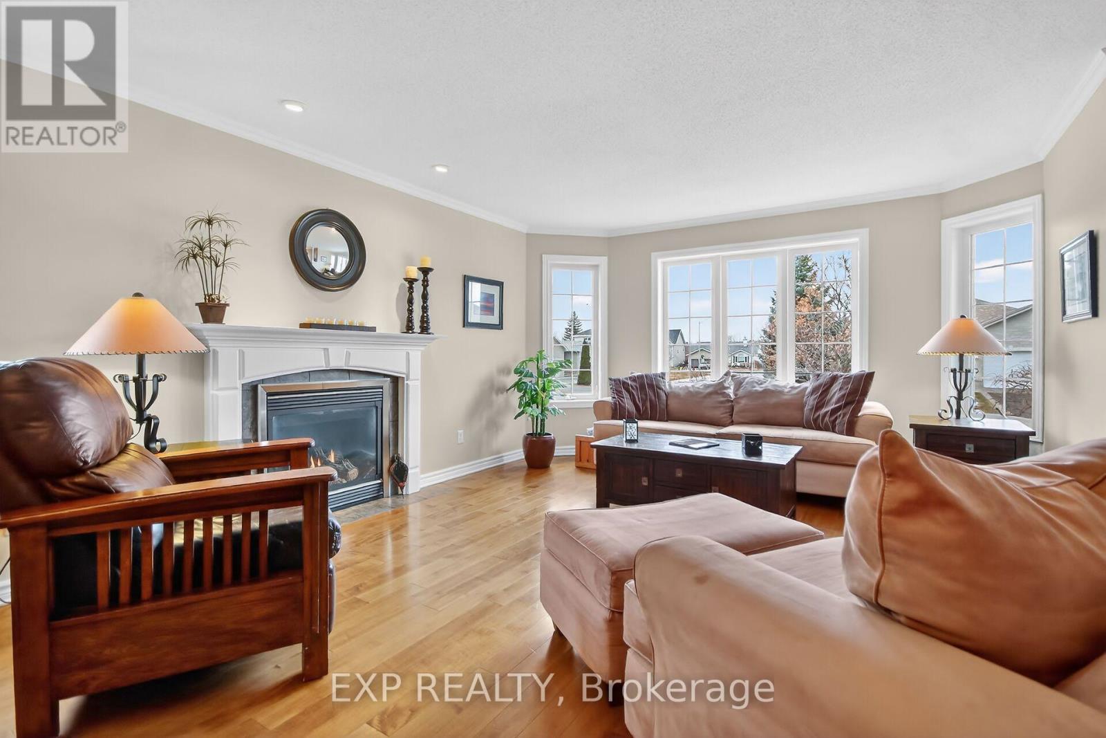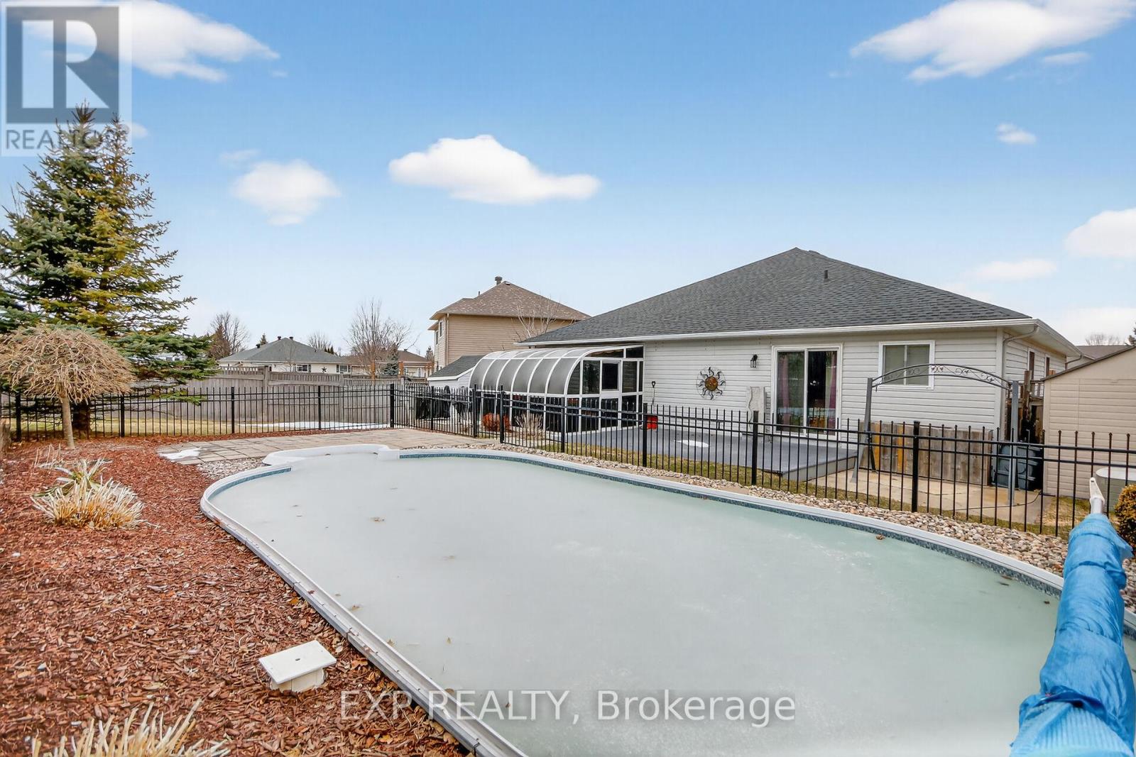Welcome to 126 Metcalfe Drive, set in a quiet, mature neighbourhood in the heart of Almonte - an ideal place to put down roots. This well-maintained 2007 brick and vinyl bungalow offers a thoughtful layout perfect for family living. A bright front foyer leads into the inviting living room, complete with a large bay window, gas fireplace, and hardwood flooring. Adjoining dining room is perfect for family dinners and special occasions. Spacious U-shaped kitchen features two-tone cabinetry, stainless steel appliances, a large pantry, and a breakfast bar with seating for four - ideal for busy mornings or after-school snacks. The adjacent great room offers flexible space for everyday living, with patio doors leading to a 3-season solarium and a fully fenced backyard with a on-ground saltwater pool - ready for summer fun. Main floor also features a practical mudroom with laundry, ample storage, and convenient access to the double attached garage. Three well-sized bedrooms offer comfortable space for the whole family. Primary suite accommodates a king-sized bed and includes a walk-in closet, ensuite with walk-in shower, and direct access to the backyard-perfect for enjoying warm evenings or a midnight swim. Finished basement extends your living space with a large recreation area featuring a wet bar, ideal for entertaining or family movie nights. (Please forgive the Toronto Maple Leafs' paraphernalia.) There's also a home gym (some equipment included), a dedicated kids' play or hockey room, and potential for a fourth bedroom with a nearby powder room. Outside, the fully fenced yard provides a safe and private space for kids and pets to play, complete with an on-ground heated saltwater pool. Located within the sought-after Naismith School catchment and close to parks and amenities, this is a home designed for growing families to enjoy for years to come. (id:64974)