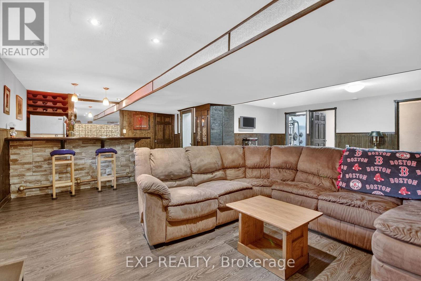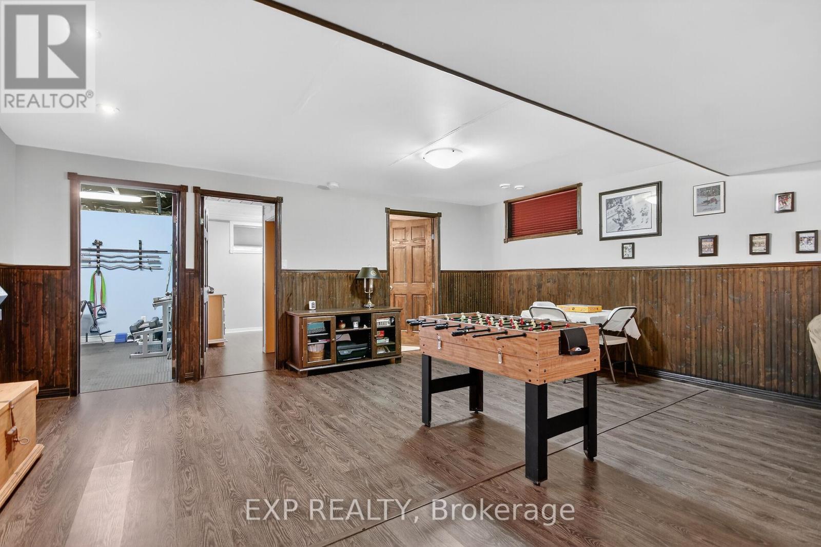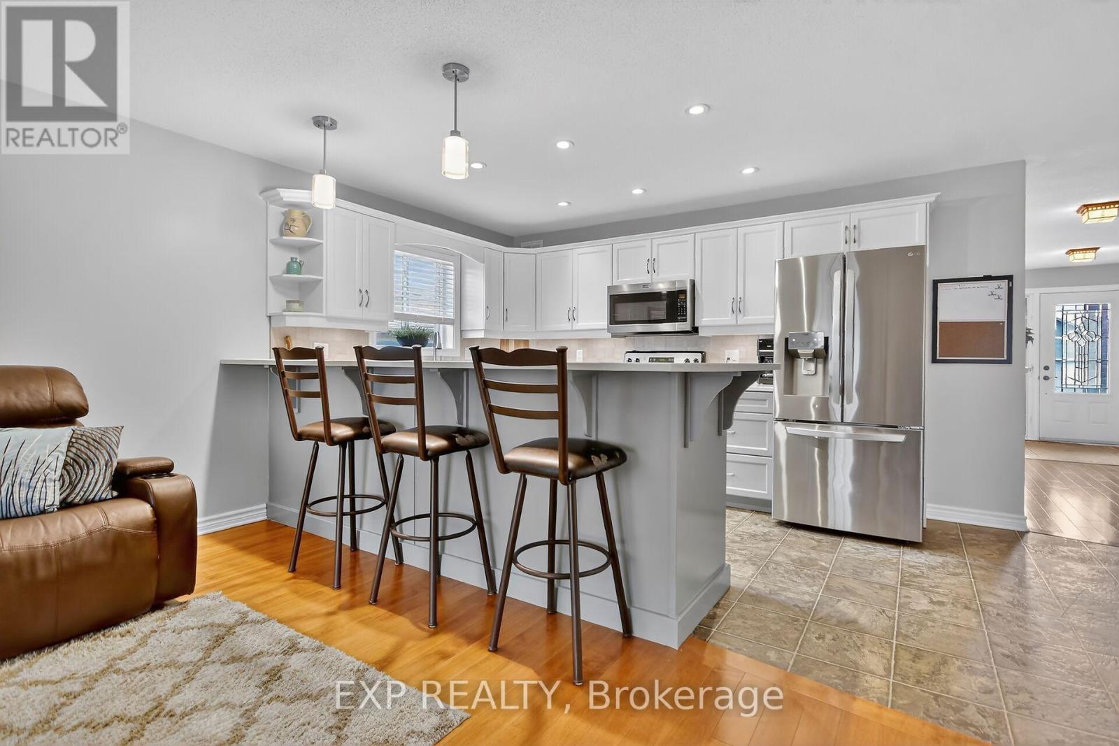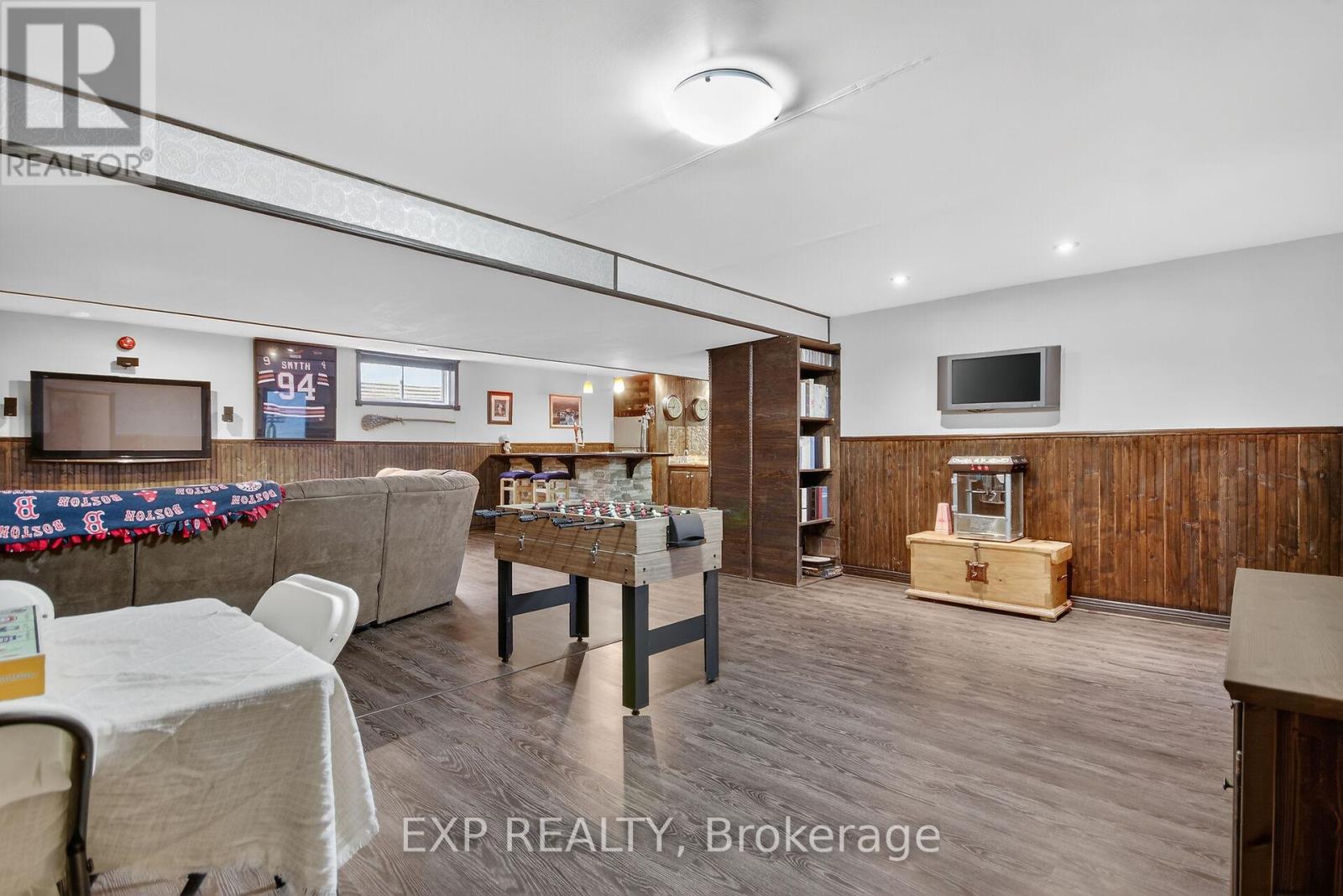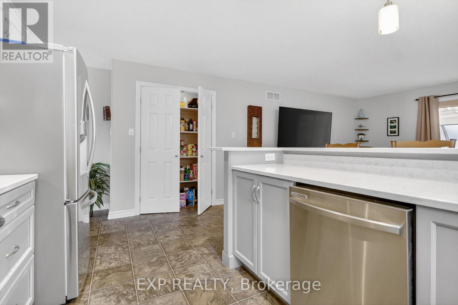 Welcome to 126 Metcalfe Drive, set in a quiet, mature neighbourhood in the heart of Almonte - an ideal place to put down roots. This well-maintained 2007 brick and vinyl bungalow offers a thoughtful layout perfect for family living. A bright front foyer leads into the inviting living room, complete with a large bay window, gas fireplace, and hardwood flooring. Adjoining dining room is perfect for family dinners and special occasions. Spacious U-shaped kitchen features two-tone cabinetry, stainless steel appliances, a large pantry, and a breakfast bar with seating for four - ideal for busy mornings or after-school snacks. The adjacent great room offers flexible space for everyday living, with patio doors leading to a 3-season solarium and a fully fenced backyard with a on-ground saltwater pool - ready for summer fun. Main floor also features a practical mudroom with laundry, ample storage, and convenient access to the double attached garage. Three well-sized bedrooms offer comfortable space for the whole family. Primary suite accommodates a king-sized bed and includes a walk-in closet, ensuite with walk-in shower, and direct access to the backyard-perfect for enjoying warm evenings or a midnight swim. Finished basement extends your living space with a large recreation area featuring a wet bar, ideal for entertaining or family movie nights. (Please forgive the Toronto Maple Leafs' paraphernalia.) There's also a home gym (some equipment included), a dedicated kids' play or hockey room, and potential for a fourth bedroom with a nearby powder room. Outside, the fully fenced yard provides a safe and private space for kids and pets to play, complete with an on-ground heated saltwater pool. Located within the sought-after Naismith School catchment and close to parks and amenities, this is a home designed for growing families to enjoy for years to come. (id:64974)