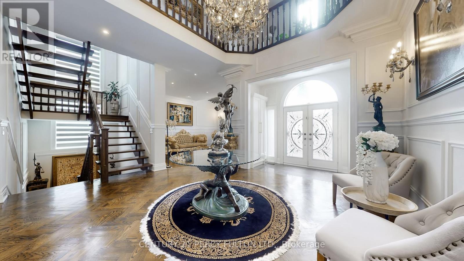 Welcome to this breathtaking south-facing custom-built residence in the prestigious South Richvale community, situated on an exceptional 60.7 x 155 ft lot in one of Richmond Hill's most desirable neighborhoods. Offering over 5,000 sq.ft. of elegant living space above grade plus a fully finished lower level, this impressive home delivers a grand sense of arrival with its stately circular interlocking driveway and beautifully landscaped grounds with ambient lighting. Step into a dramatic foyer with soaring 18-ft ceilings, showcasing rich hardwood floors, crown moulding, 3 skylights, and over 150 pot lights throughout. Designed for both refined living and exceptional entertaining, the home features two spacious family rooms, a main-floor office, and four gas fireplaces. The gourmet kitchen boasts designer cabinetry, upgraded backsplash, modern countertops, and a bright breakfast area with walk-out to the deck for seamless indoor-outdoor flow. Enhancing the lifestyle experience is a built-in speaker system throughout both the interior and exterior, perfect for everyday enjoyment or hosting in style. The upper level offers five generously sized bedrooms, including a luxurious primary suite with a brand-new spa-inspired ensuite and custom walk-in closet. The beautifully finished lower level offers exceptional versatility, featuring two spacious bedrooms and two well-appointed bathrooms with a private separate entrance, perfectly suited for extended family living, a discreet guest retreat, or an elegant in-law/nanny suite. Additional highlights include home automation and two furnaces. Ideally located just minutes from Yonge Street, top-ranked schools, parks, shopping, and major amenities, this exceptional residence presents a rare opportunity to own a true luxury home in prime South Richvale. (id:64974)
