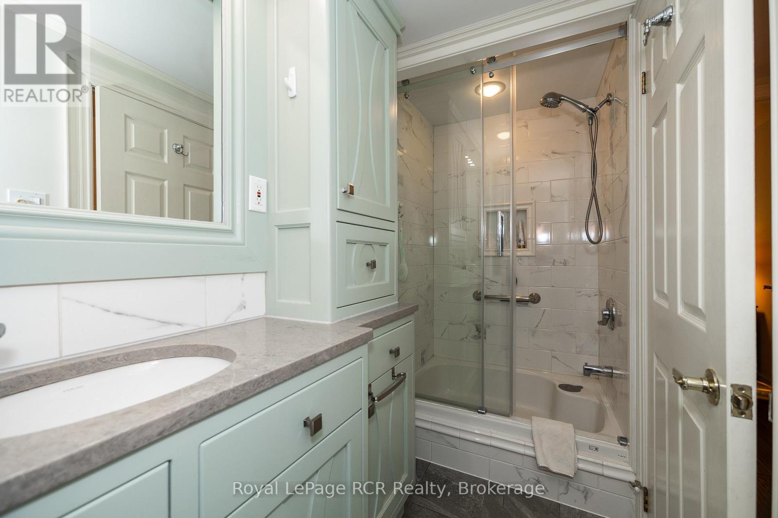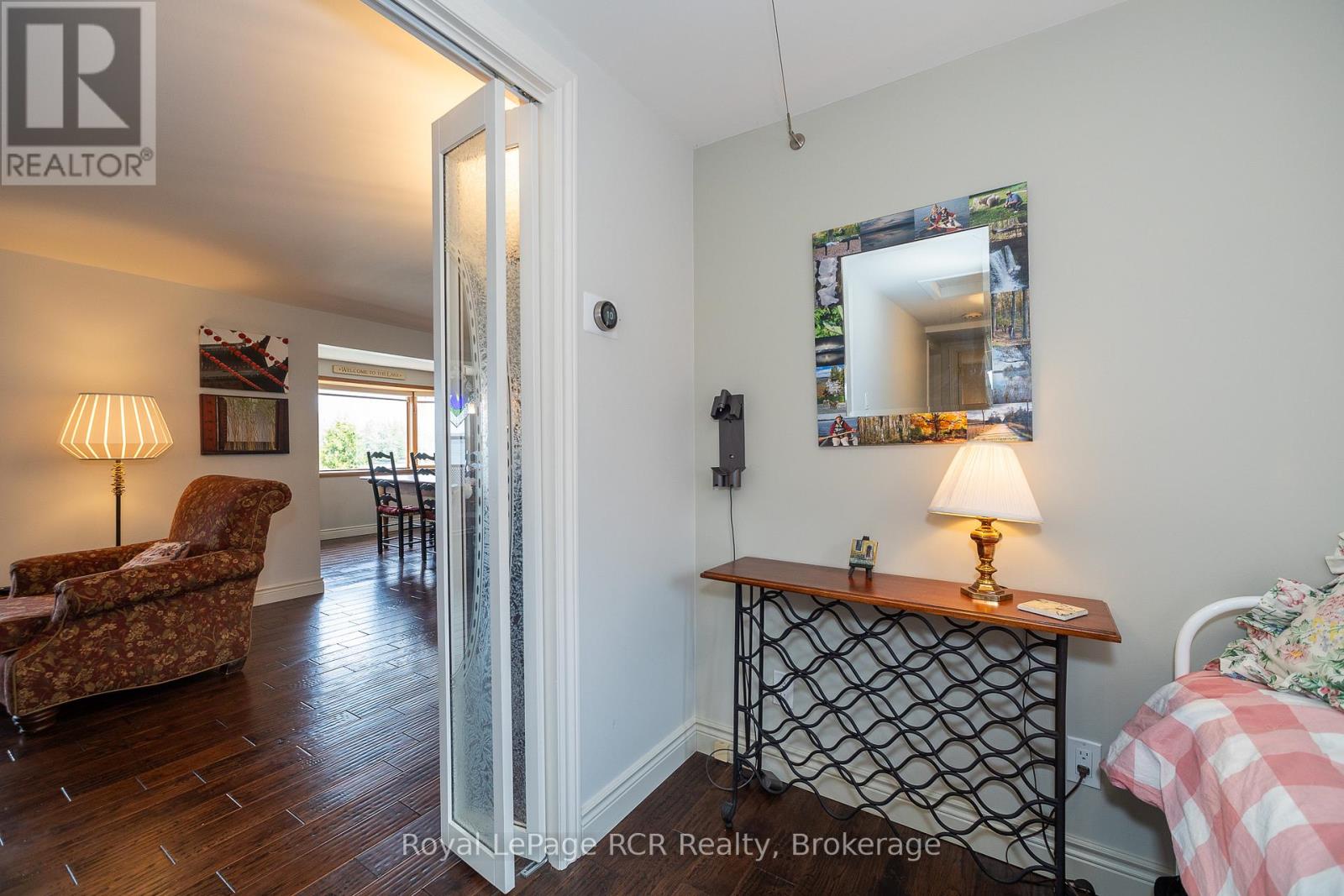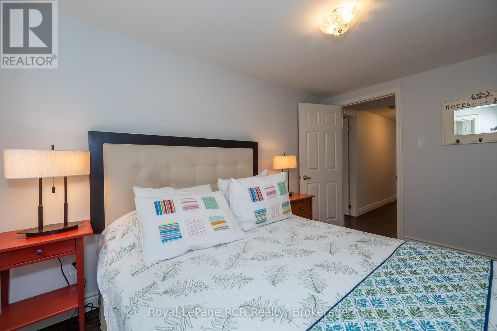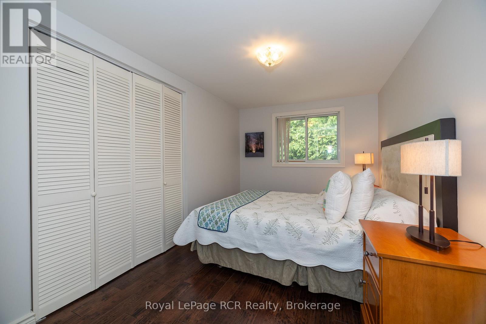 123' waterfront on Sunset Point, Lake Eugenia with unobstructed views from nearly every room on both levels. Enjoy the open kitchen, dining and living areas with direct access to the light-filled sunroom. Lower level walkout features a family room with propane free-standing stove, second kitchen, 2nd bath and great coat room with access to the attached garage. Walkout to stone patio, waterside deck, sheltered dock, enclosed gazebo, sandy beach area and everything desired in a waterfront property. Thoroughly enjoyed and lovingly maintained including updated kitchen and bath (2017), hot water tank (2023), sewage pump (2024), shingles (2010), eavestrough with leaf guard (2023). Shared ownership and use of Macdonald Farm with 127 acres of trails for recreational use. (id:64974)