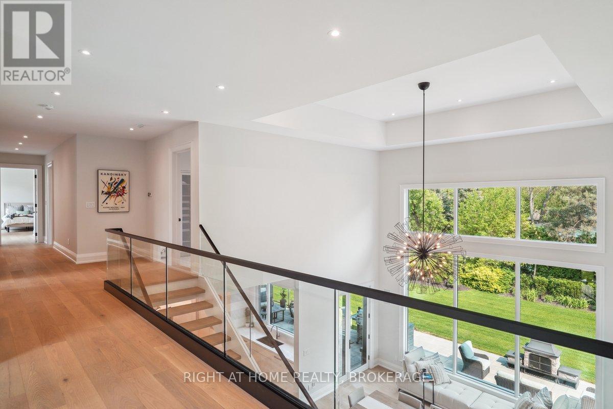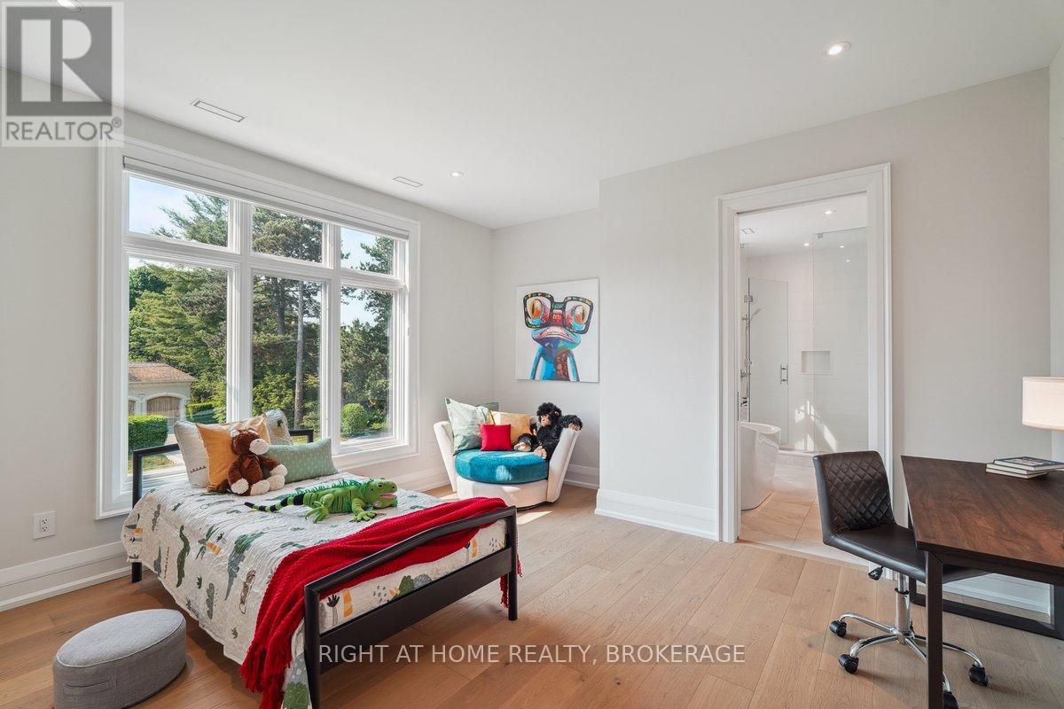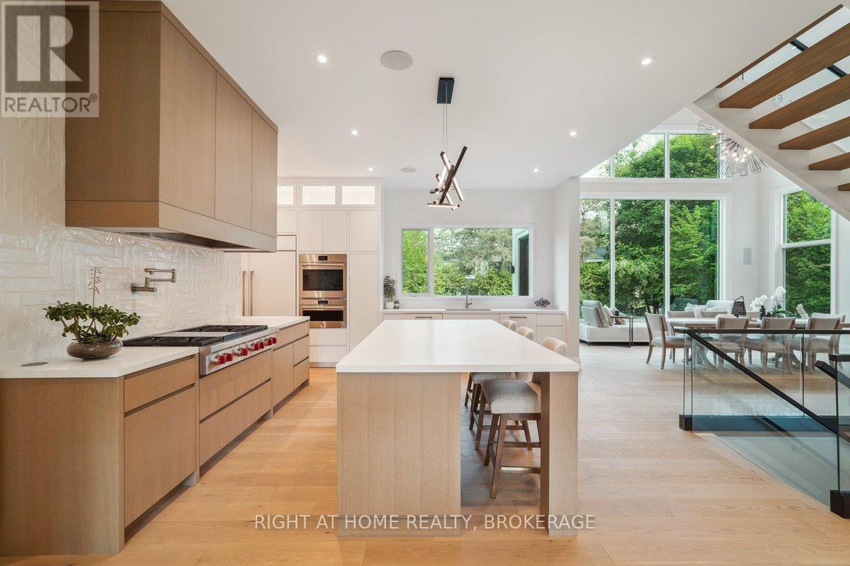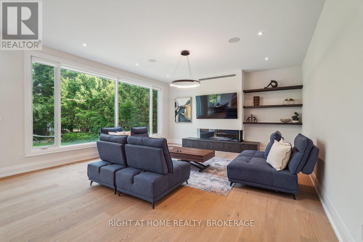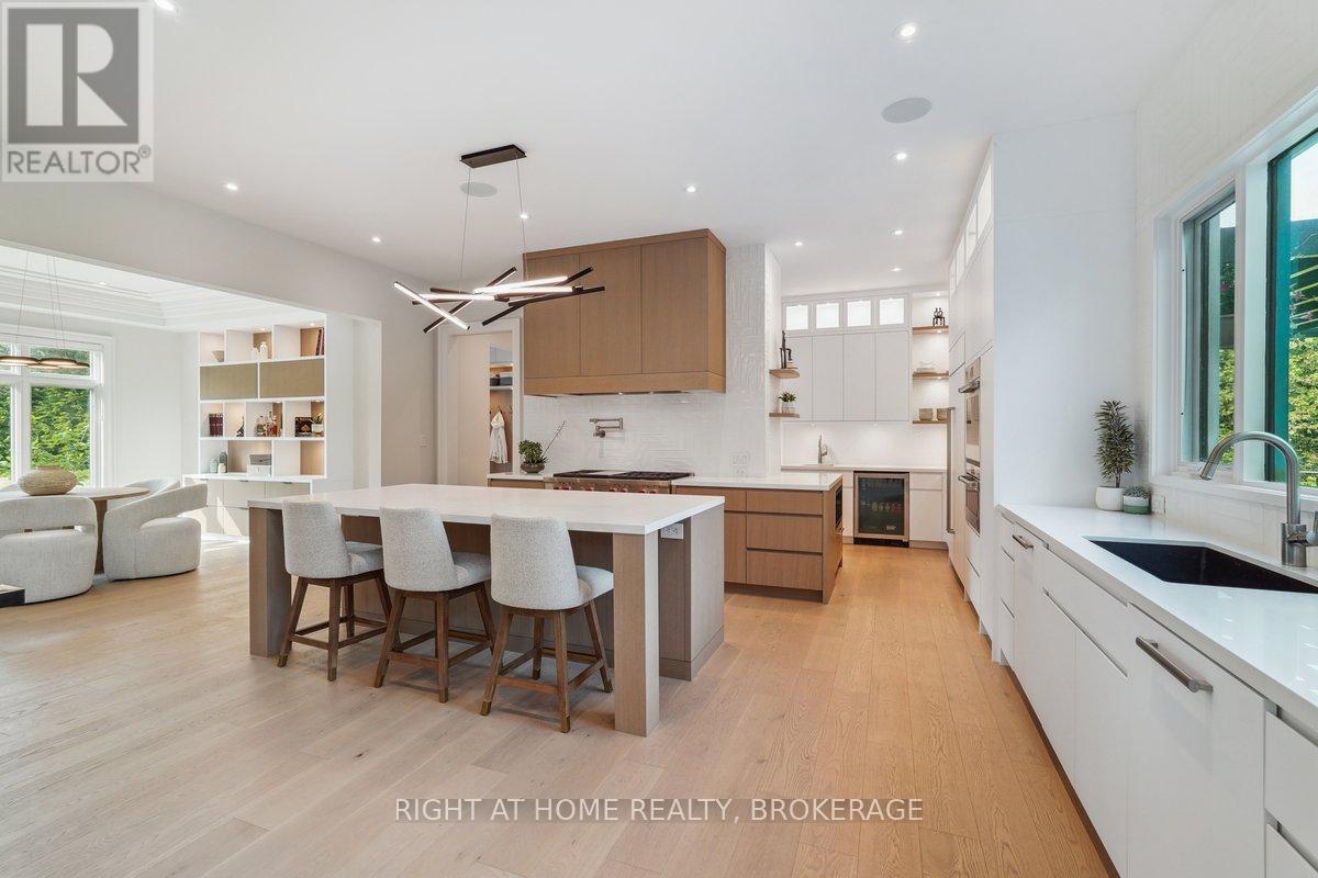 Welcome to 1260 Braeside Drive, a distinguished custom-built luxury residence located in the prestigious Morrison neighborhood of South East Oakville. Situated on a premium, tree-lined lot this exceptional home offers over 7,000 square feet of thoughtfully designed and carefully crafted family living space. This home is highlighted by the large windows that provide beautiful views of mature trees, allowing natural light to fill the space throughout the day and creating a seamless indoor-outdoor living environment.Constructed with enduring elegance and equipped with advanced smart home technology, this architectural masterpiece features 10-foot ceilings, wide-plank engineered hardwood flooring, and a striking two-storey dining area that enhances the sense of openness and light. The open-concept gourmet kitchen, complete with a wrap-around pantry, is ideal for entertaining and includes custom full-height cabinetry, a spacious quartz island, and high-end Wolf and SubZero appliances. Upstairs, the luxurious primary suite offers a spa-inspired ensuite with heated floors, a soaking tub, and a custom walk-in closet. Three additional bedrooms, each with private ensuite bathrooms, office, and a generously sized laundry room provide excellent comfort and functionality for family living. The lower level is equally impressive, boasting a home theater, gym, wet bar with a full-sized refrigerator and professional wine storage fridge, and a stylish recreation area with a modern fireplace. Additionally, the basement has a bonus bedroom with a private ensuite and radiant heated floors for added comfort.1260 Braeside Drive offers more than just a home, it provides a comfortable and sophisticated lifestyle. Located in a quiet, family-oriented neighborhood, just minutes from top-rated schools, the lakefront, and downtown Oakville, this rare opportunity in one of the GTAs most sought-after communities is truly worth experiencing firsthand. (id:64974)