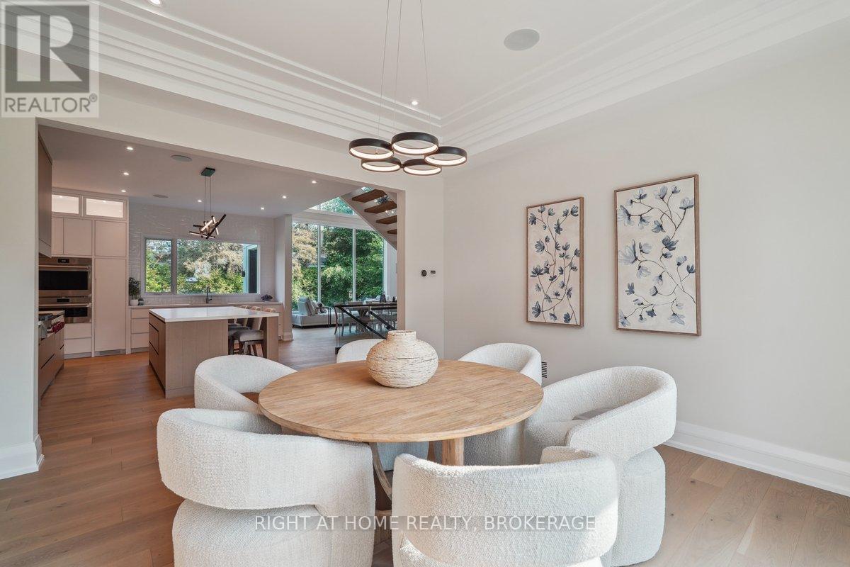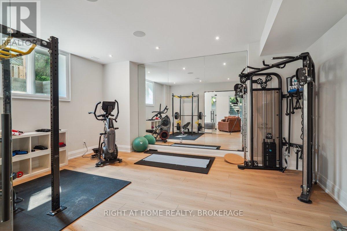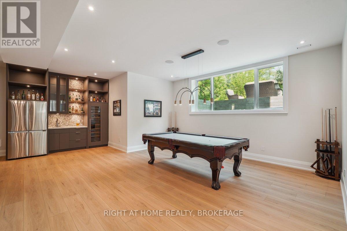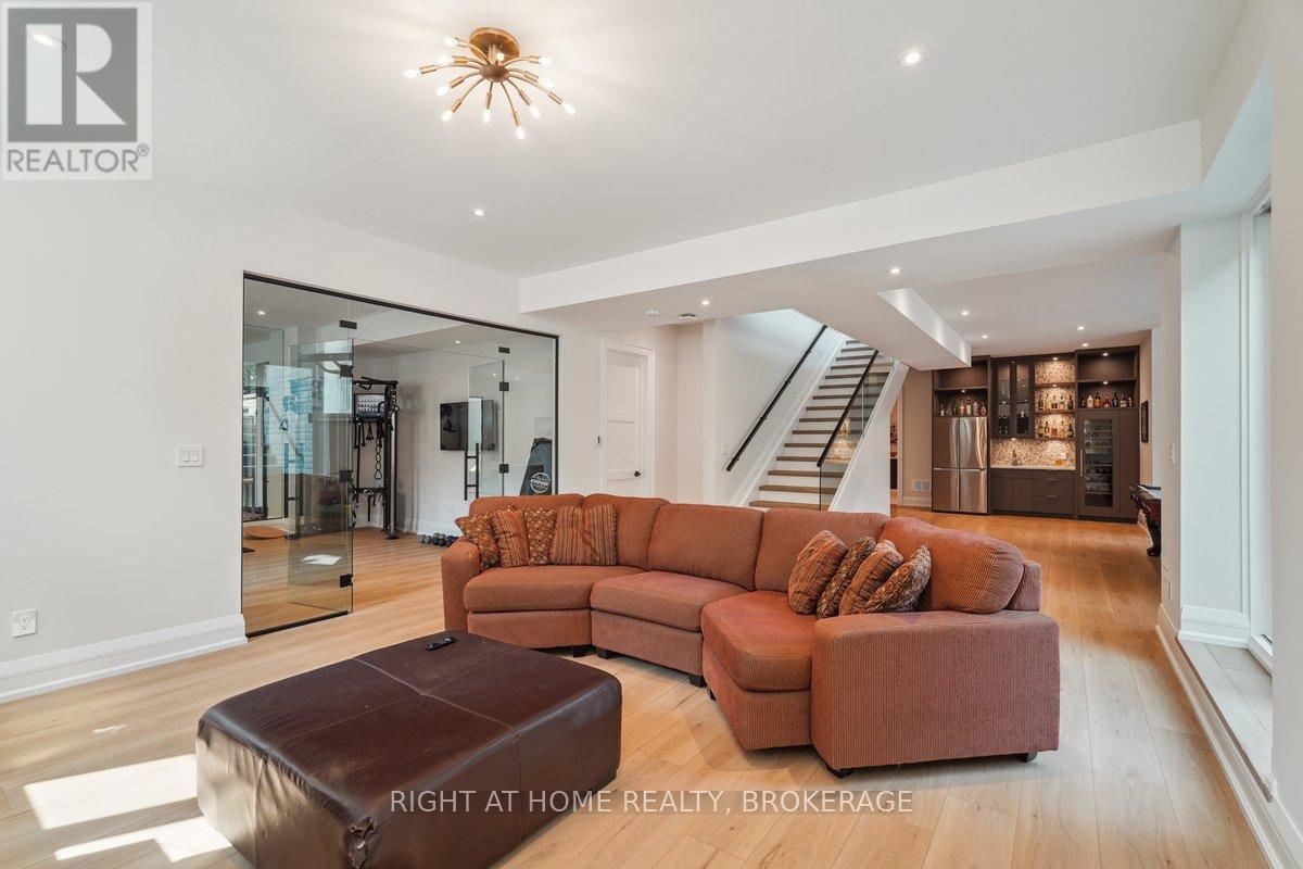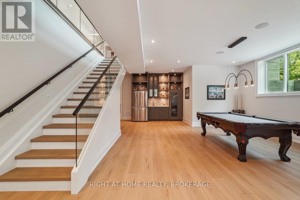 Welcome to 1260 Braeside Drive, a distinguished custom-built luxury residence located in the prestigious Morrison neighborhood of South East Oakville. Situated on a premium, tree-lined lot this exceptional home offers over 7,000 square feet of thoughtfully designed and carefully crafted family living space. This home is highlighted by the large windows that provide beautiful views of mature trees, allowing natural light to fill the space throughout the day and creating a seamless indoor-outdoor living environment.Constructed with enduring elegance and equipped with advanced smart home technology, this architectural masterpiece features 10-foot ceilings, wide-plank engineered hardwood flooring, and a striking two-storey dining area that enhances the sense of openness and light. The open-concept gourmet kitchen, complete with a wrap-around pantry, is ideal for entertaining and includes custom full-height cabinetry, a spacious quartz island, and high-end Wolf and SubZero appliances. Upstairs, the luxurious primary suite offers a spa-inspired ensuite with heated floors, a soaking tub, and a custom walk-in closet. Three additional bedrooms, each with private ensuite bathrooms, office, and a generously sized laundry room provide excellent comfort and functionality for family living. The lower level is equally impressive, boasting a home theater, gym, wet bar with a full-sized refrigerator and professional wine storage fridge, and a stylish recreation area with a modern fireplace. Additionally, the basement has a bonus bedroom with a private ensuite and radiant heated floors for added comfort.1260 Braeside Drive offers more than just a home, it provides a comfortable and sophisticated lifestyle. Located in a quiet, family-oriented neighborhood, just minutes from top-rated schools, the lakefront, and downtown Oakville, this rare opportunity in one of the GTAs most sought-after communities is truly worth experiencing firsthand. (id:64974)