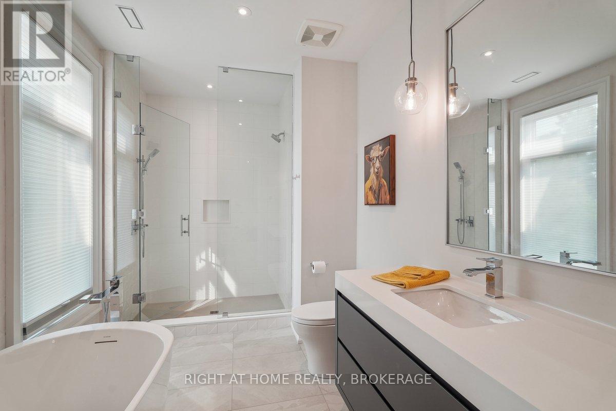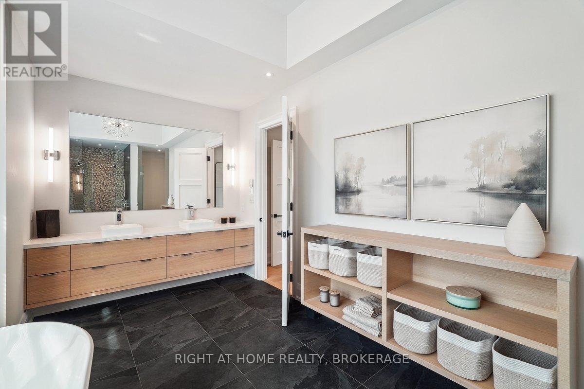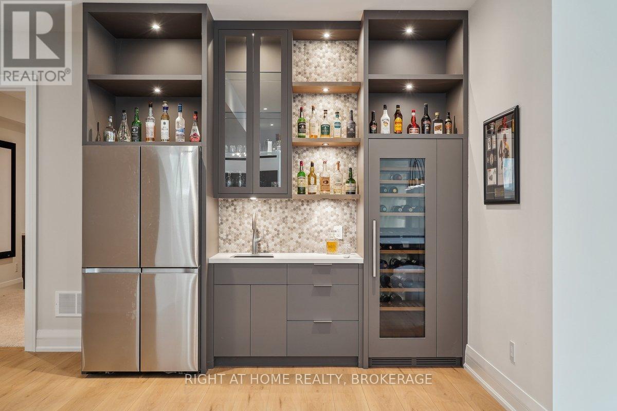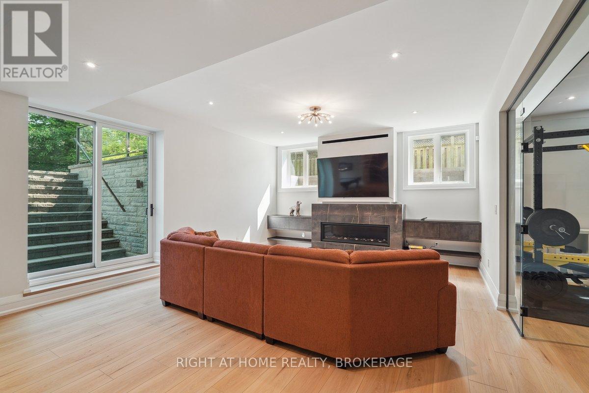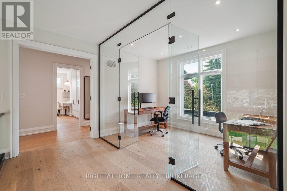 Welcome to 1260 Braeside Drive, a distinguished custom-built luxury residence located in the prestigious Morrison neighborhood of South East Oakville. Situated on a premium, tree-lined lot this exceptional home offers over 7,000 square feet of thoughtfully designed and carefully crafted family living space. This home is highlighted by the large windows that provide beautiful views of mature trees, allowing natural light to fill the space throughout the day and creating a seamless indoor-outdoor living environment.Constructed with enduring elegance and equipped with advanced smart home technology, this architectural masterpiece features 10-foot ceilings, wide-plank engineered hardwood flooring, and a striking two-storey dining area that enhances the sense of openness and light. The open-concept gourmet kitchen, complete with a wrap-around pantry, is ideal for entertaining and includes custom full-height cabinetry, a spacious quartz island, and high-end Wolf and SubZero appliances. Upstairs, the luxurious primary suite offers a spa-inspired ensuite with heated floors, a soaking tub, and a custom walk-in closet. Three additional bedrooms, each with private ensuite bathrooms, office, and a generously sized laundry room provide excellent comfort and functionality for family living. The lower level is equally impressive, boasting a home theater, gym, wet bar with a full-sized refrigerator and professional wine storage fridge, and a stylish recreation area with a modern fireplace. Additionally, the basement has a bonus bedroom with a private ensuite and radiant heated floors for added comfort.1260 Braeside Drive offers more than just a home, it provides a comfortable and sophisticated lifestyle. Located in a quiet, family-oriented neighborhood, just minutes from top-rated schools, the lakefront, and downtown Oakville, this rare opportunity in one of the GTAs most sought-after communities is truly worth experiencing firsthand. (id:64974)