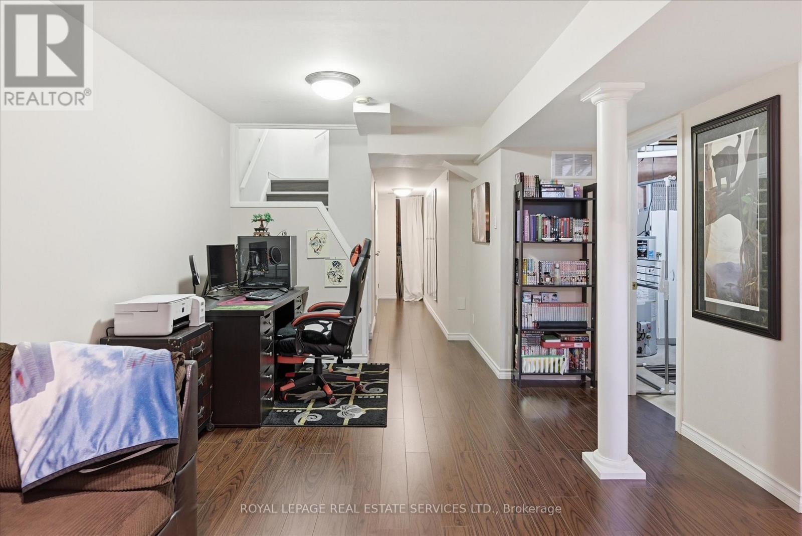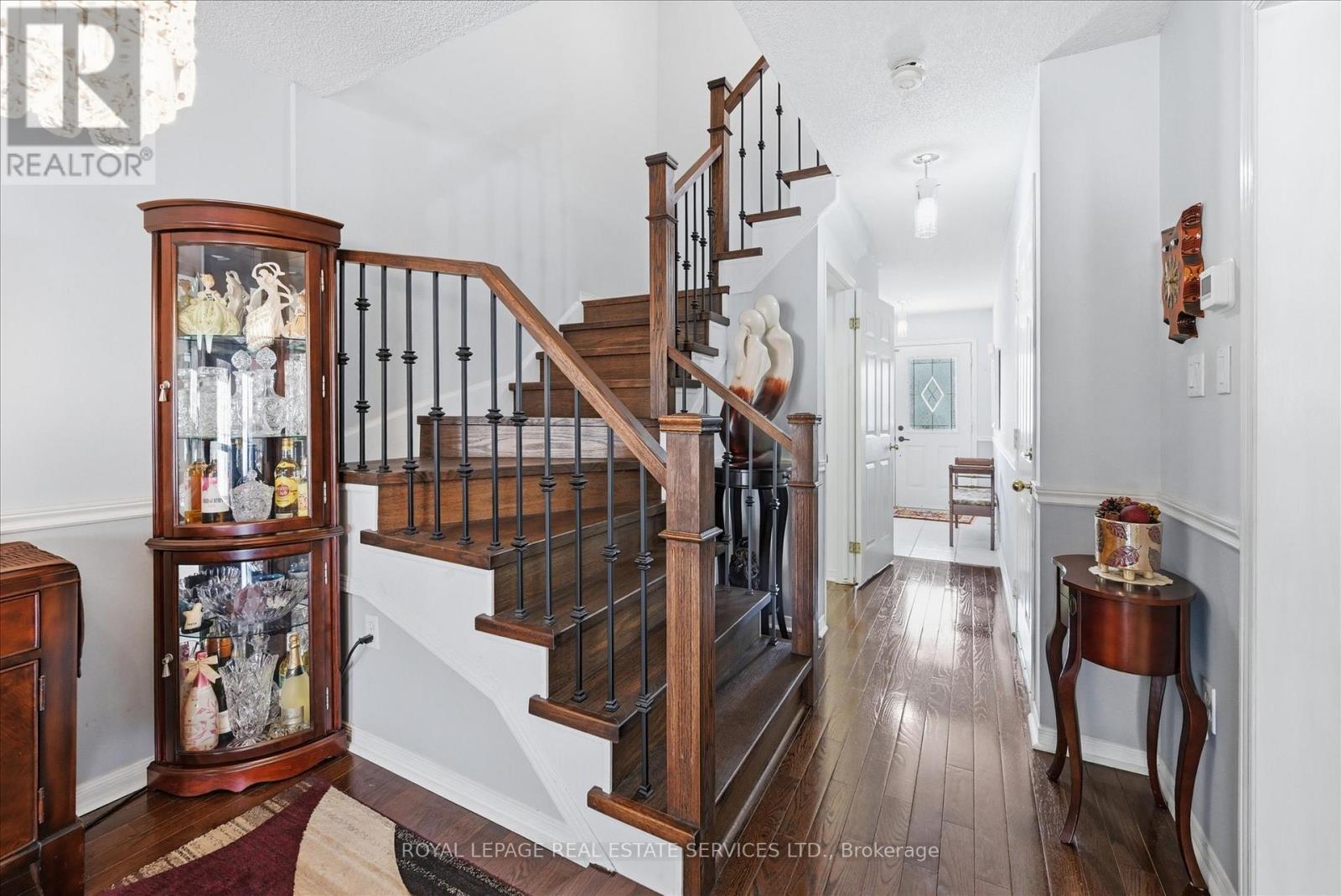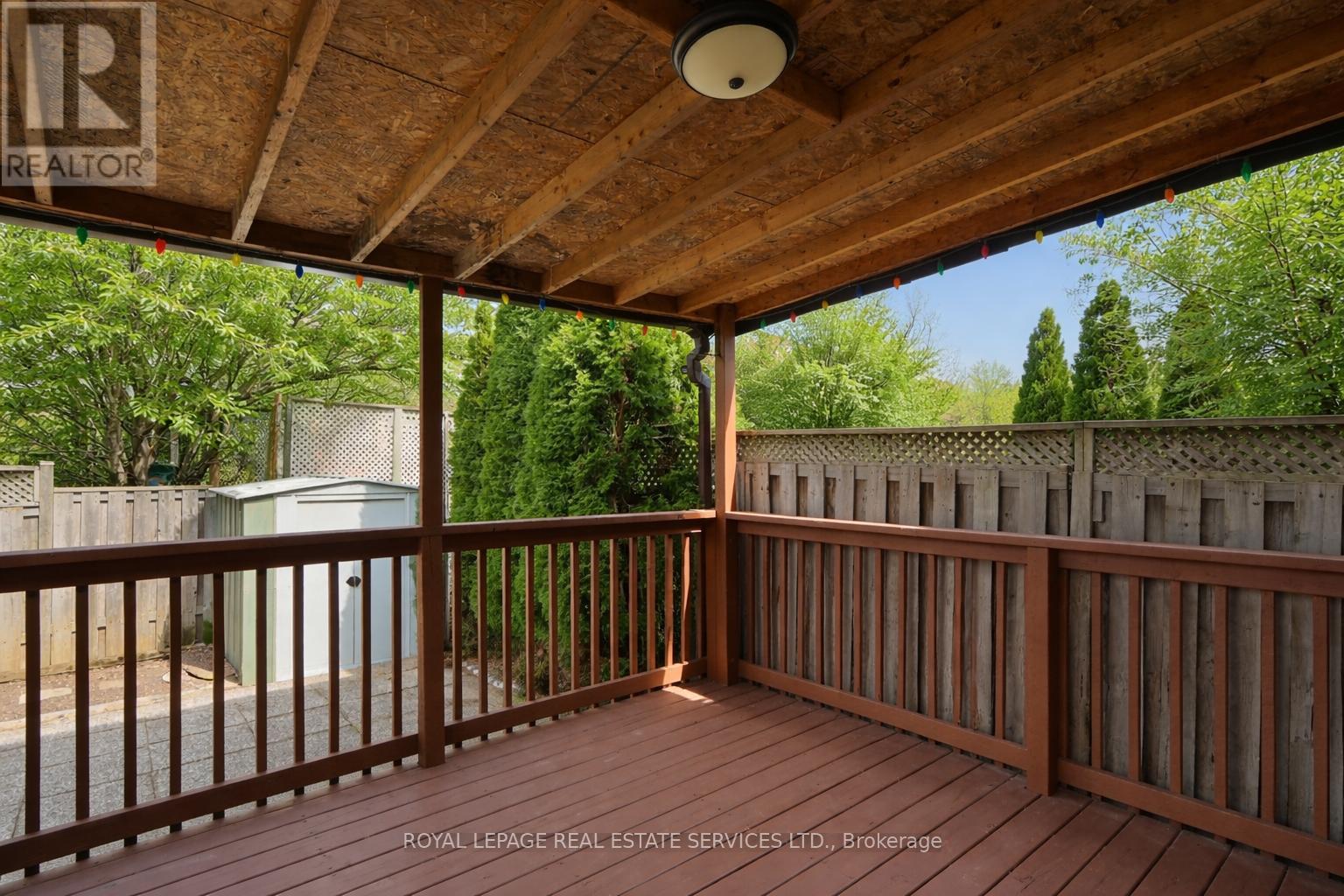 Exceptionally well-maintained and beautifully updated from top to bottom, this stylish three-bedroom freehold townhome offers modern comfort in the heart of Burlington. Approximately $30,000 has been invested in thoughtful upgrades, including fresh paint, designer lighting, new kitchen appliances, quartz and granite in the kitchen and bathrooms, a hardwood staircase with elegant wrought iron spindles (2022), furnace (2022), roof (2015), and a newly stained covered deck. The open-concept main level is designed for today's lifestyle, featuring hardwood flooring, vaulted ceilings, and a cozy gas fireplace. The kitchen is equipped with matching GE stainless steel appliances and a convenient granite-topped pass-through - ideal for entertaining. Walk out from the living room to the private covered deck. Upstairs, you'll find three spacious bedrooms along with a three-piece bathroom with a quartz countertop. The fully finished basement adds valuable living space, complete with laminate flooring, a large recreation area, four-piece bathroom, laundry/utility room, and plenty of storage space. Enjoy a fully fenced, low-maintenance backyard with a covered deck, concrete patio, landscaped gardens, mature cedars, and handy garden shed. Ideally located within walking distance of Mainway Recreation Centre, Palmer and Tansley Woods Parks, schools, shopping, and restaurants. Commuters will appreciate easy access to public transit, major highways, and the GO Train. A perfect blend of style, function, and location! (certain images have been digitally enhanced and virtually staged) (id:64974)