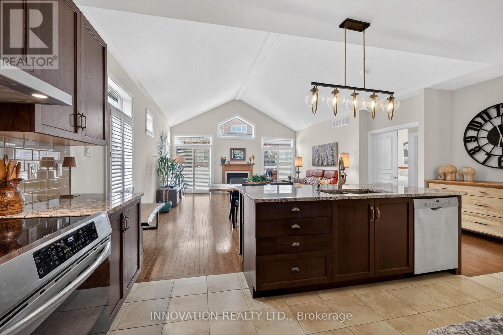 This inviting bungalow blends comfort and style in all the right ways. Rich hardwood flooring and a vaulted ceiling set the tone as you step into the open-concept living and dining area, anchored by a natural gas fireplace. The kitchen is ready for gatherings with stainless steel appliances, a breakfast bar, stone countertops, and a large pantry. A main-floor den offers a quiet retreat, while the primary bedroom features a walk-in closet and a private three-piece bathroom. A spacious secondary bedroom and main-floor laundry complete the level. Downstairs, a generous recreation room with luxury vinyl flooring easily accommodates a pool-table-sized gaming area. Guests will appreciate the additional bedroom and full three-piece bathroom, plus plenty of storage space for fitness or hobbies. Outside, a fenced yard with an interlocking stone patio creates a perfect spot for relaxing or BBQing with family and friends. All of this is just moments from fantastic shopping and recreation! (id:64974)