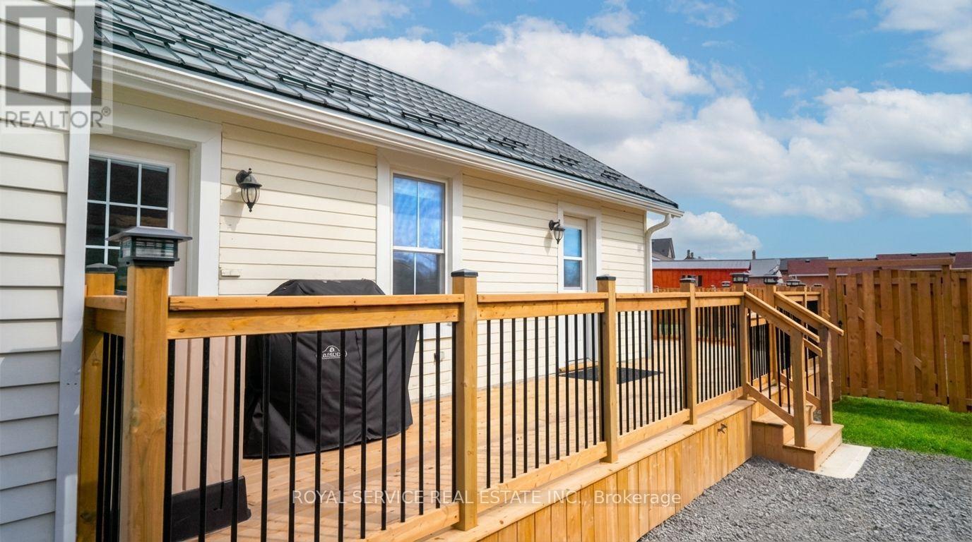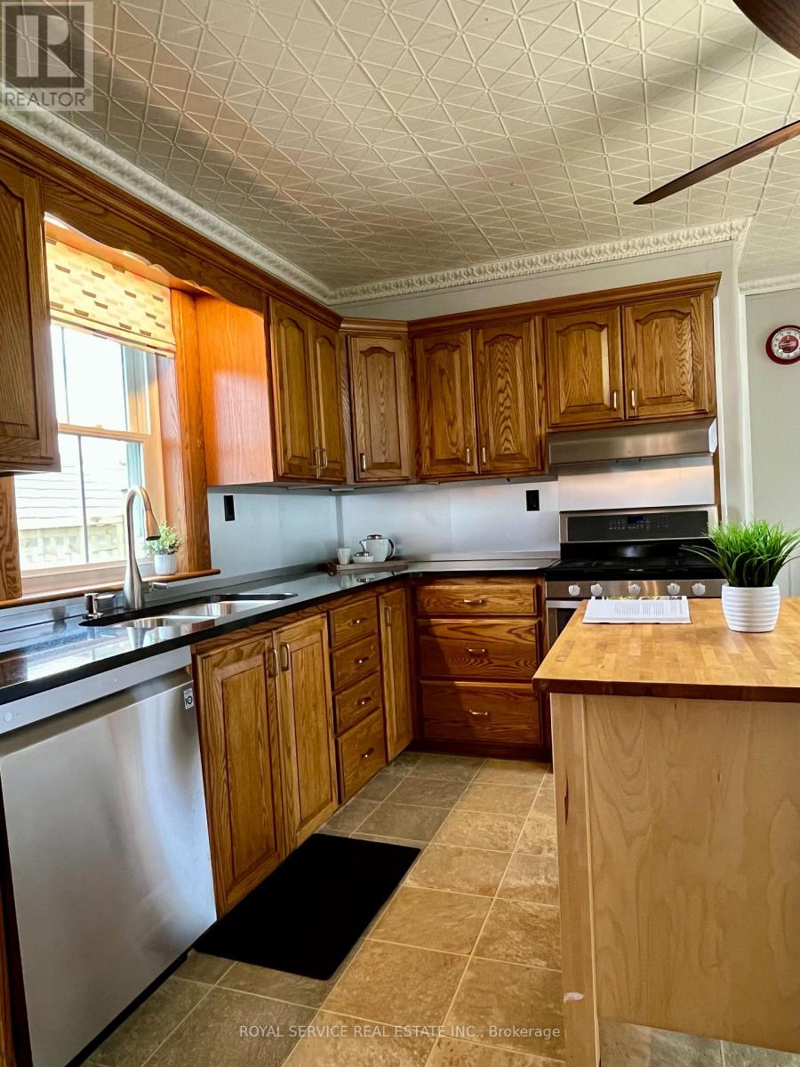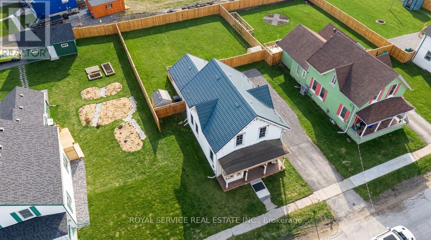 A Piece of Port Hope History - With All the Right Updates. Step into one of Port Hope's storied Captain's Houses and feel the difference that over a century of good bones makes. This two-storey century home sits on a level double lot, just a two-minute walk to the waterfront, 10 minute walk to downtown, and is close to so many amenities. At just under 2,000 SqFt of finished space, there's room to spread out. A sizable front foyer with 9ft ceilings and curved staircase opens into generously sized primary rooms filled with natural light from the large windows. You'll love the historic mouldings and trim throughout the home. The eat in kitchen features granite countertops, original tin ceiling, SS appliances (including a gas stove) and flows well for cooking and gathering. A rear entrance mudroom with main floor laundry and powder room adds everyday practicality, and a new front porch and enclosed portico make for a welcoming arrival. There are three bedrooms upstairs plus a flexible main-floor room that works well as a fourth bedroom, home office, or studio. The large primary bedroom includes a spacious walk-in closet. A full bath with heated tile floors & quartz counters and a powder room serve the household comfortably. The big-ticket items have all been looked after, including metal roof, eavestroughs, windows, mechanicals, and attic insulation, so you can settle in without a long to-do list. Custom window treatments including motorized blinds are all included. This home also offers more storage than you often find in homes of this era. A brand new rear wrap-around deck and fully fenced yard open onto a large, level backyard - a blank canvas ready for your flower beds, gardens or whatever else you can imagine for your space. A home with real history, ready for its next chapter. (id:64974)