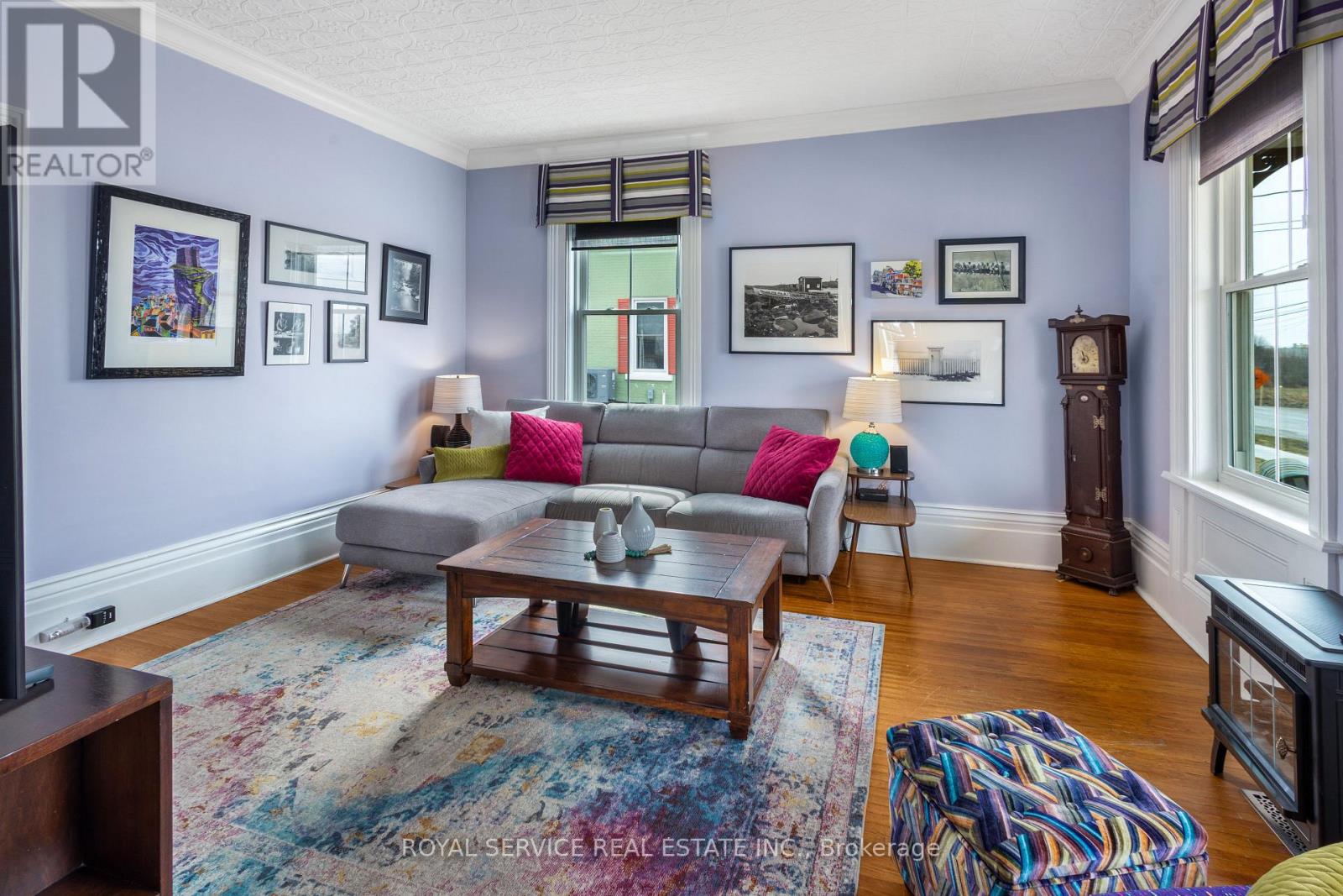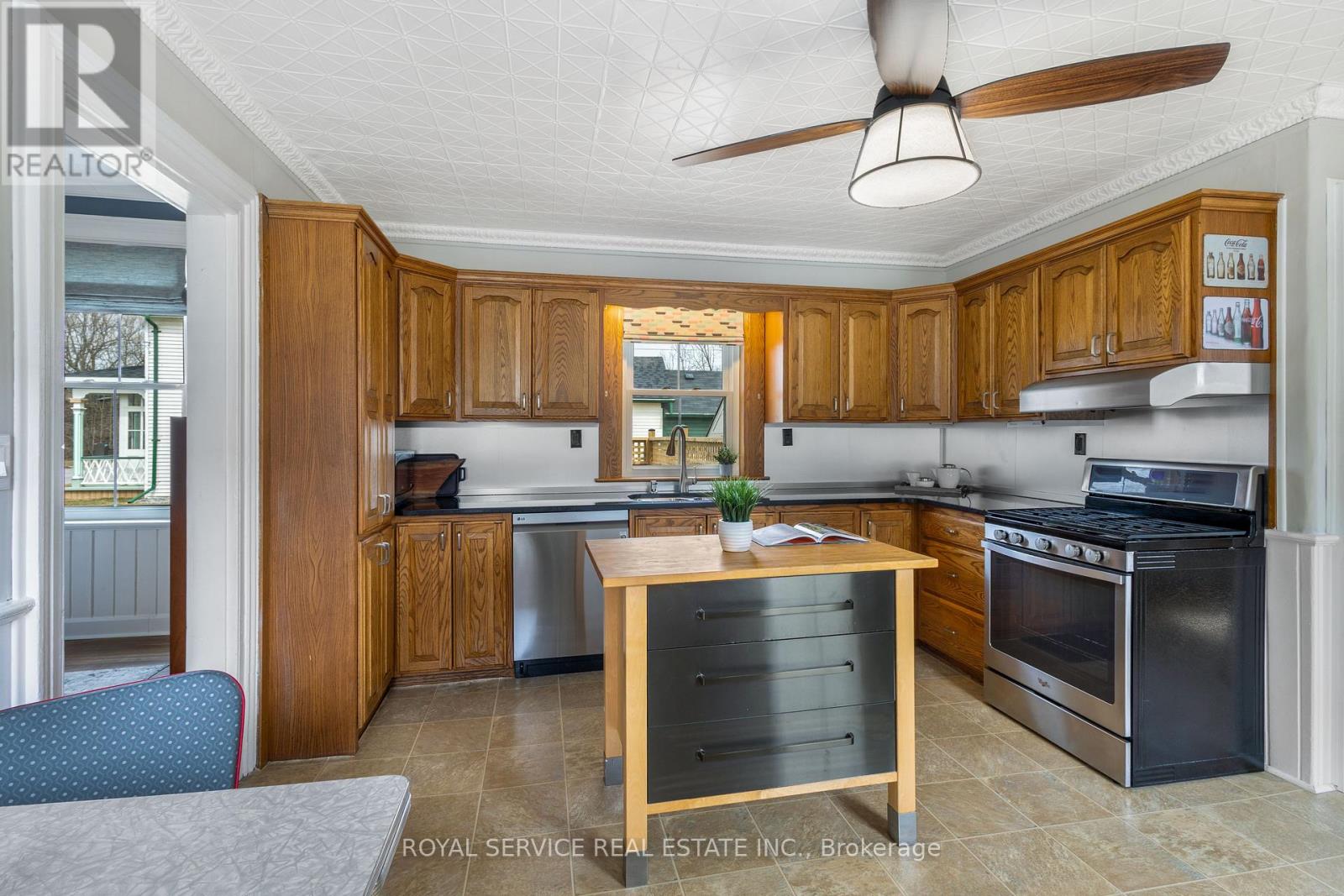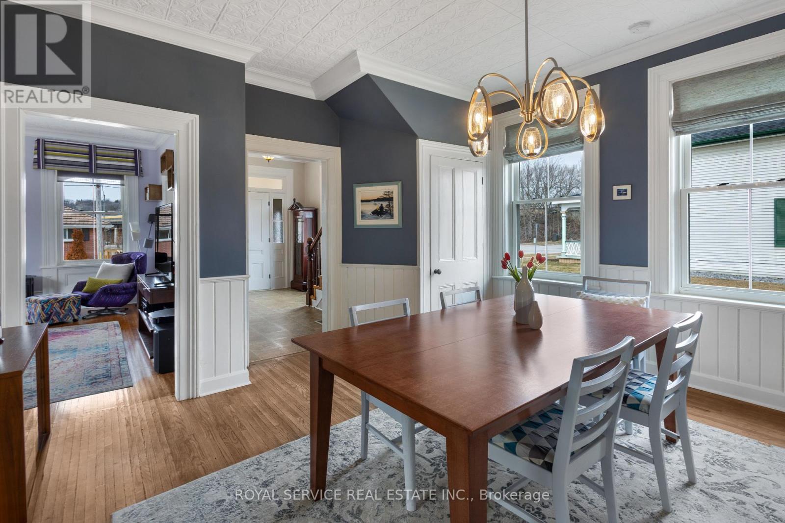 A Piece of Port Hope History - With All the Right Updates. Step into one of Port Hope's storied Captain's Houses and feel the difference that over a century of good bones makes. This two-storey century home sits on a level double lot, just a two-minute walk to the waterfront, 10 minute walk to downtown, and is close to so many amenities. At just under 2,000 SqFt of finished space, there's room to spread out. A sizable front foyer with 9ft ceilings and curved staircase opens into generously sized primary rooms filled with natural light from the large windows. You'll love the historic mouldings and trim throughout the home. The eat in kitchen features granite countertops, original tin ceiling, SS appliances (including a gas stove) and flows well for cooking and gathering. A rear entrance mudroom with main floor laundry and powder room adds everyday practicality, and a new front porch and enclosed portico make for a welcoming arrival. There are three bedrooms upstairs plus a flexible main-floor room that works well as a fourth bedroom, home office, or studio. The large primary bedroom includes a spacious walk-in closet. A full bath with heated tile floors & quartz counters and a powder room serve the household comfortably. The big-ticket items have all been looked after, including metal roof, eavestroughs, windows, mechanicals, and attic insulation, so you can settle in without a long to-do list. Custom window treatments including motorized blinds are all included. This home also offers more storage than you often find in homes of this era. A brand new rear wrap-around deck and fully fenced yard open onto a large, level backyard - a blank canvas ready for your flower beds, gardens or whatever else you can imagine for your space. A home with real history, ready for its next chapter. (id:64974)