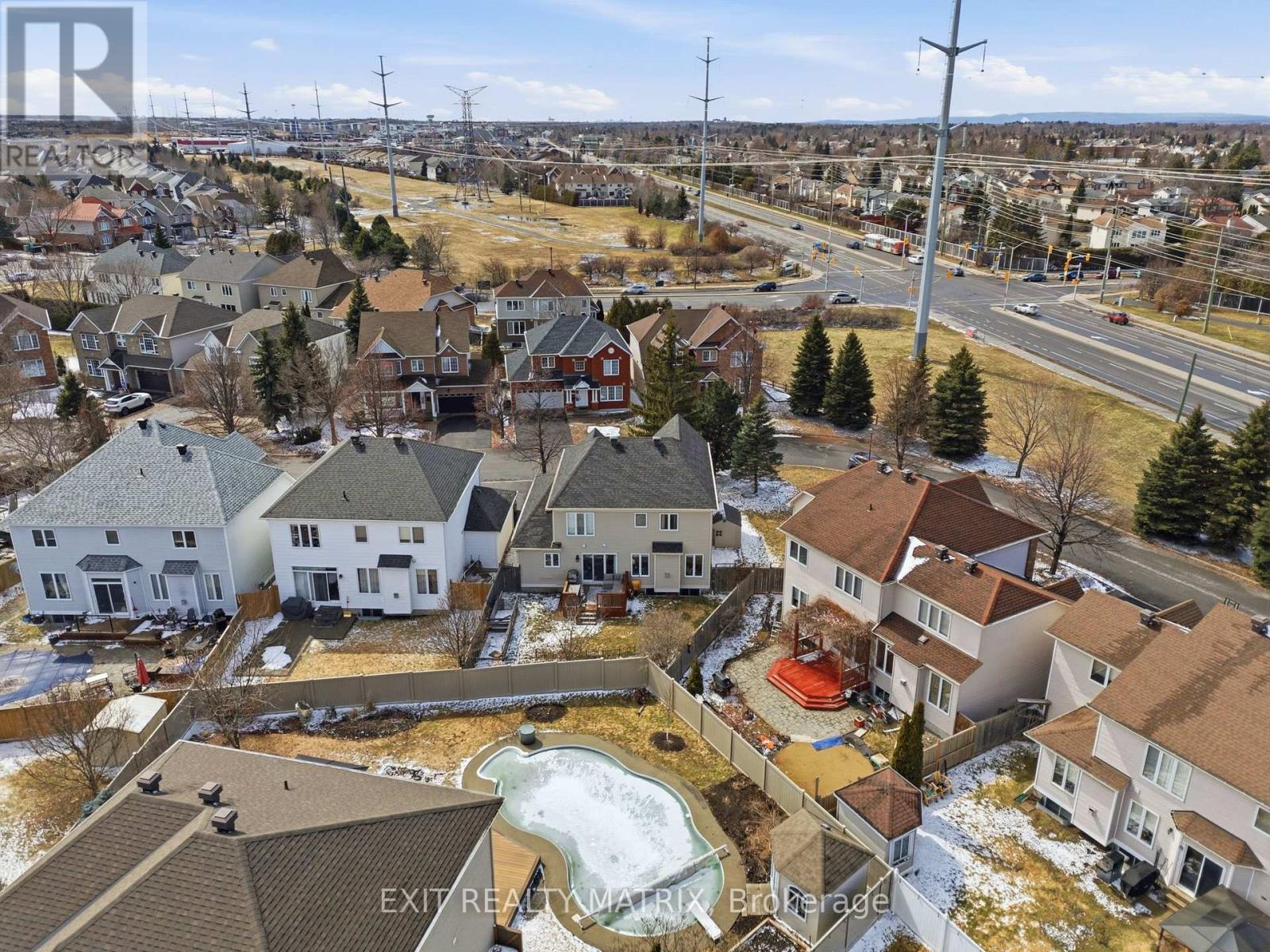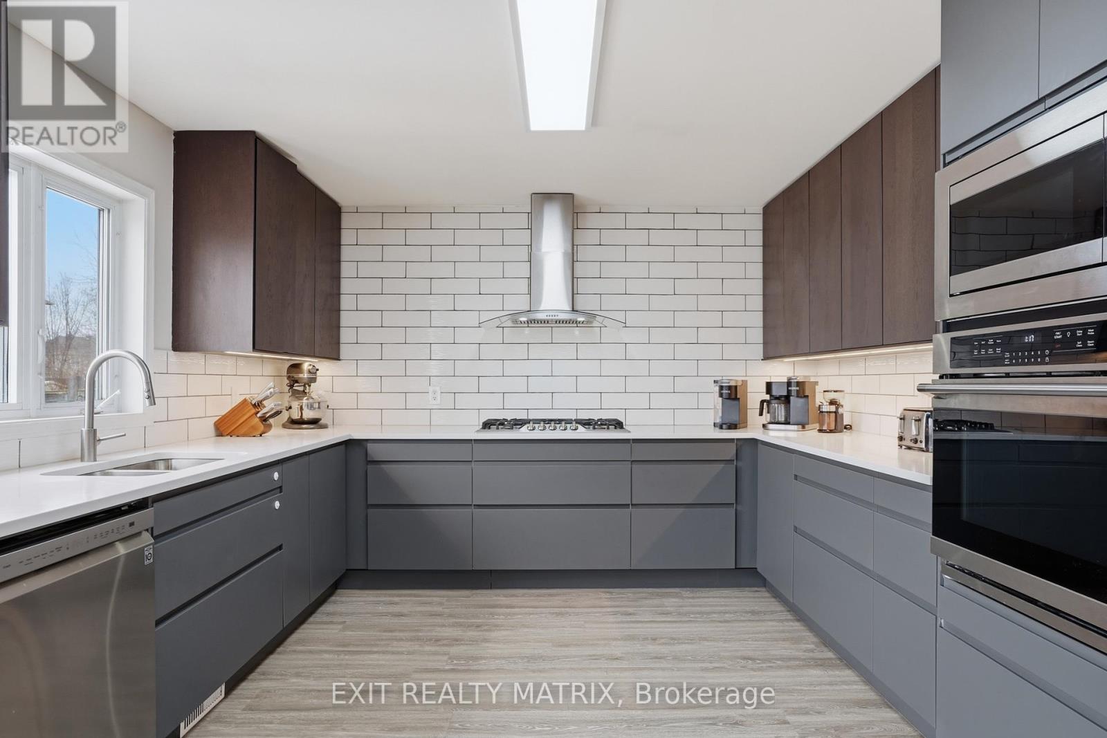 **OPENHOUSE SATURDAY APRIL 11th 2-4PM** Welcome to this pie-shaped 5-bedroom, 4-bathroom home with a fully finished basement, tucked away in a quiet, family-friendly pocket of Orleans close to parks, schools, and everyday amenities. From the moment you step inside, you are greeted by a bright and open main level with soaring ceilings and a warm, inviting layout. The front entrance features tile flooring, leading into a spacious living and dining area complemented by durable Duraclic laminate flooring that flows throughout. As you continue through the home, you are led into the main living room, offering a comfortable space to relax or entertain with easy connection to the heart of the home. The fully renovated kitchen is thoughtfully designed with entertaining and everyday living in mind, featuring sleek cabinetry, smart storage, a built-in wine holder, updated appliances including a newer fridge, and modern countertops. Just off the kitchen, you'll find inside access to the double car garage along with a well-placed powder room. Upstairs is where you'll find four of the bedrooms, including the primary suite which offers a private retreat complete with its own ensuite, while the three additional bedrooms provide great flexibility for family, guests, or a home office setup, all supported by a second full bathroom and the added convenience of upstairs laundry. The fully finished basement features a large family room with a 7.1 surround sound system, along with an additional bedroom, a full 3-piece bathroom, and a dedicated utility room, making it ideal for guests or multigenerational living. Outside, enjoy a fully fenced pie-shaped backyard with extra depth and usable space, perfect for entertaining or relaxing. With major updates including the roof, furnace, A/C, flooring throughout, and a renovated kitchen with updated appliances, this home is truly move-in ready. (id:64974)