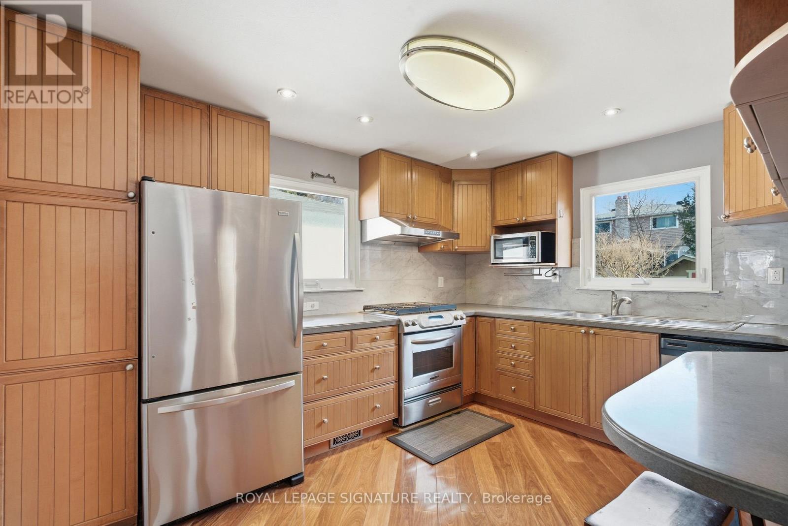 Welcome to this beautifully maintained 3-bedroom, 2-bathroom side-split home nestled in the highly sought-after German Mills community. Offering a functional and inviting layout, this residence is perfect for families seeking both comfort and convenience.The main level features a spacious living and dining area filled with natural light, complemented by hardwood flooring throughout. The modern kitchen is thoughtfully designed with ample cabinetry, quality finishes, and a breakfast area ideal for everyday living.The lower-level family room provides a warm and cozy retreat, complete with a fireplace and walkout toa private, landscaped backyard-perfect for entertaining or relaxing outdoors.Upstairs, you'll find three well-proportioned bedrooms with generous closet space, along with an updated main bathroom. A finished lower level adds valuable additional living space, ideal for a recreation room,home office, or guest area.Situated on a quiet crescent in a family-friendly neighborhood, this home is just minutes to top-rated schools, parks, shopping, public transit, and major highways for easy commuting.A fantastic opportunity to own a move-in-ready home in one of Markham's most established and desirable communities. ** This is a linked property.** (id:64974)