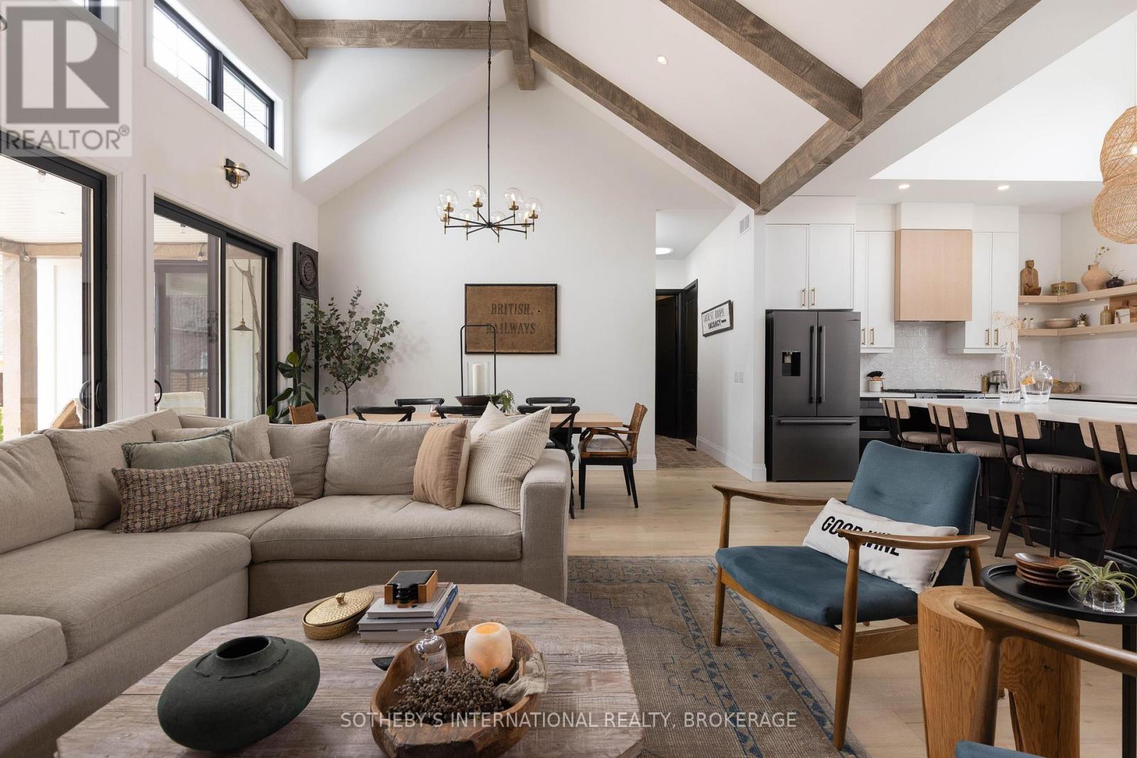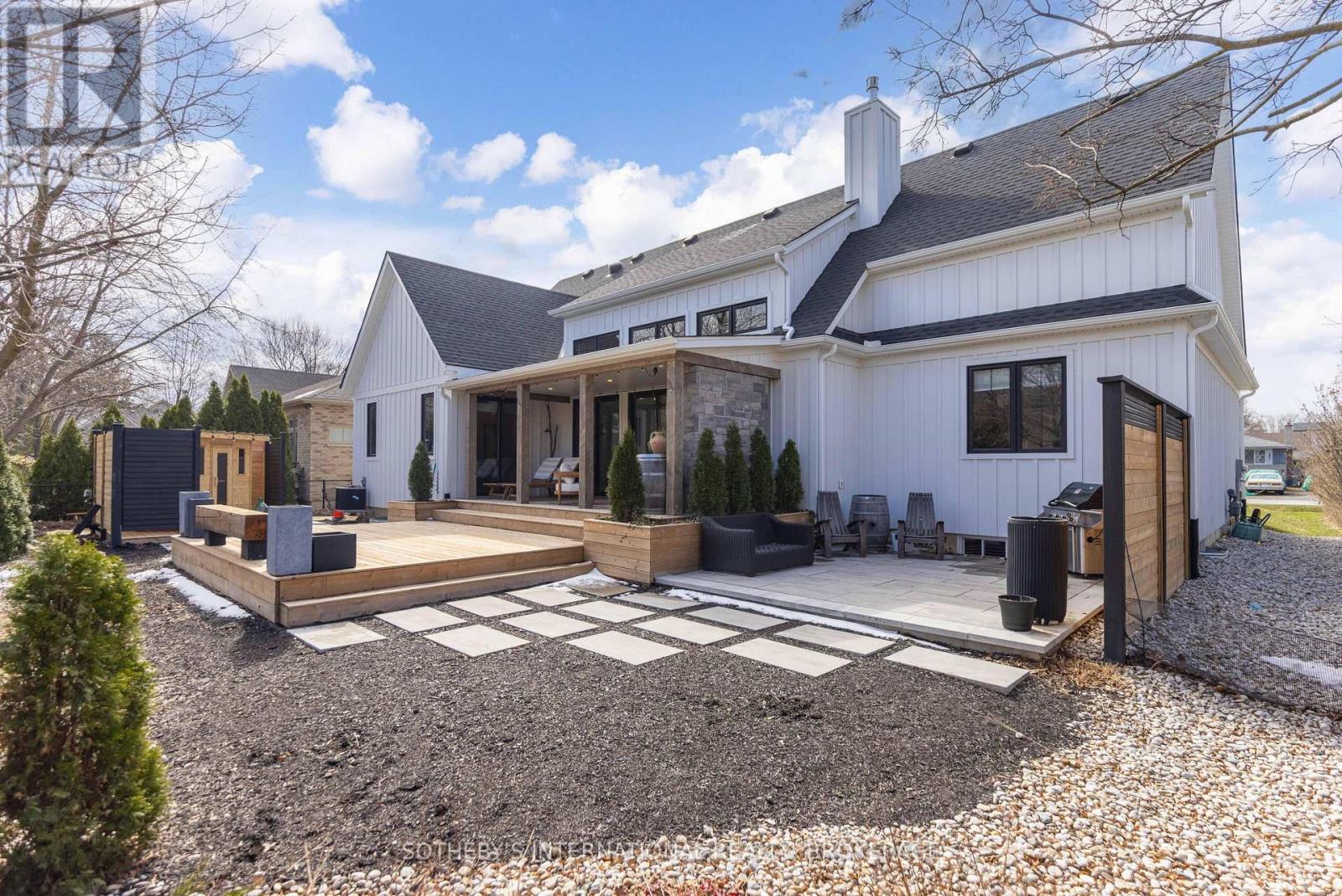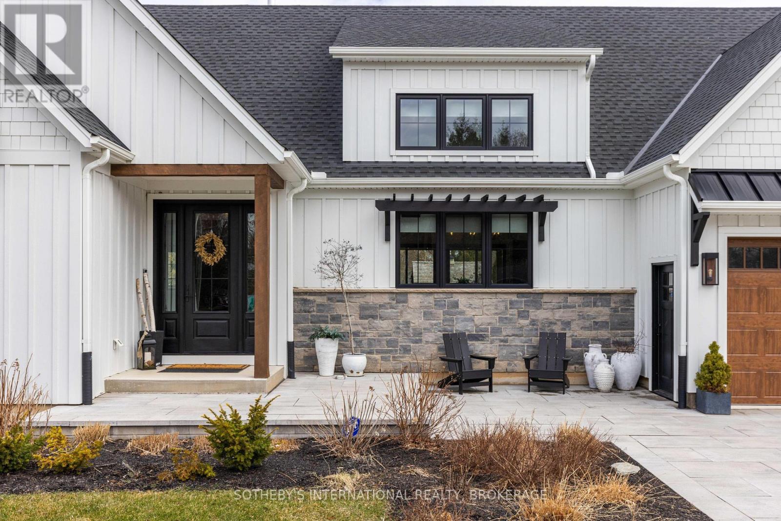 Experience the perfect blend of modern farmhouse charm and refined elegance in this exceptional, nearly new bungalow, nestled in a quiet and highly desirable location. Less than five years old and thoughtfully designed, this stunning residence offers approximately 1,800 square feet of beautifully curated living space. Featuring three spacious bedrooms and three luxurious bathrooms, every inch of this home showcases top-quality finishes and a distinctive, design-forward approach. Unique textures and creative details elevate the interiors, creating a warm yet sophisticated atmosphere that feels both inviting and elevated. At the heart of the home, a large, oversized island anchors the open-concept kitchen-perfect for entertaining and everyday living alike. Sunlight pours in from the south-facing exposure, enhancing the bright, airy feel throughout the main living spaces. Step outside to a meticulously landscaped setting designed for true outdoor living. The inviting outdoor space is complete with a gas fireplace, offering the perfect backdrop for relaxing evenings or hosting guests in style. This is a rare opportunity to own a modern farmhouse bungalow that seamlessly combines comfort, craftsmanship, and timeless design. (id:64974)