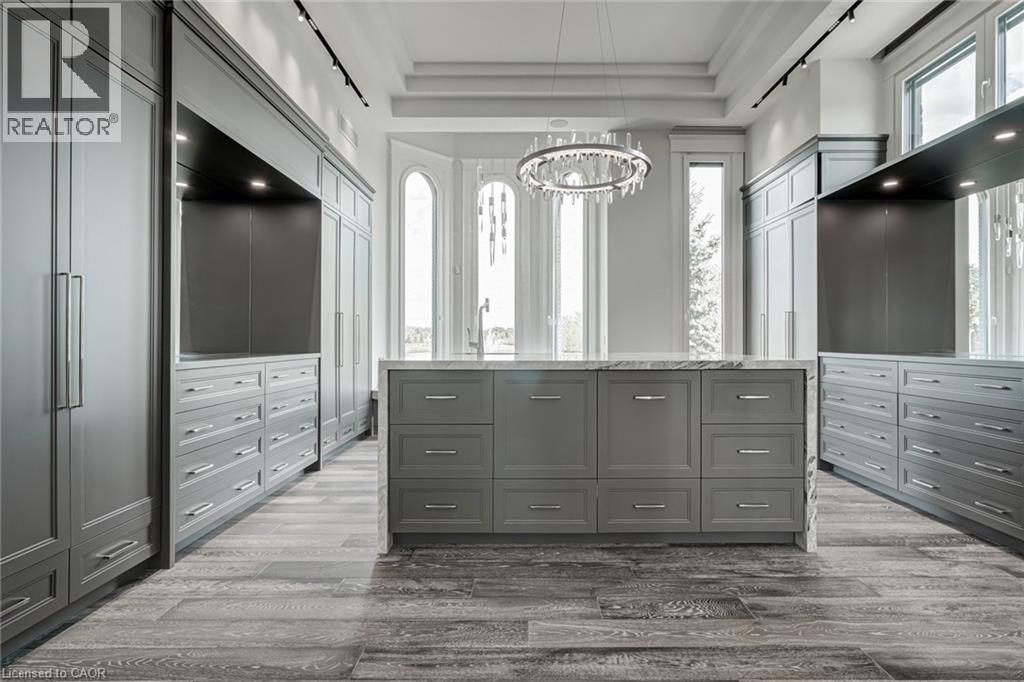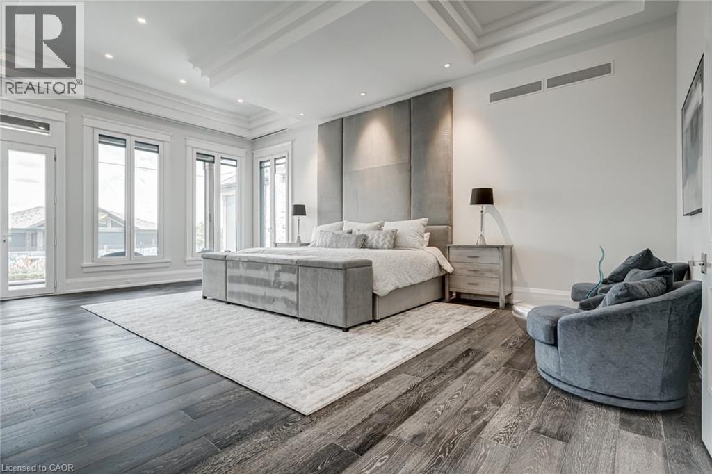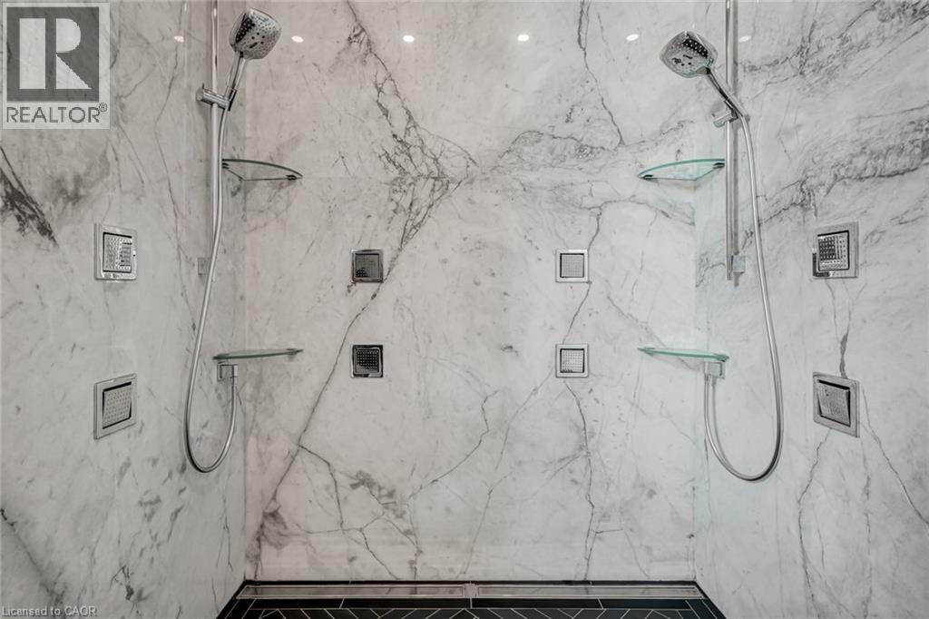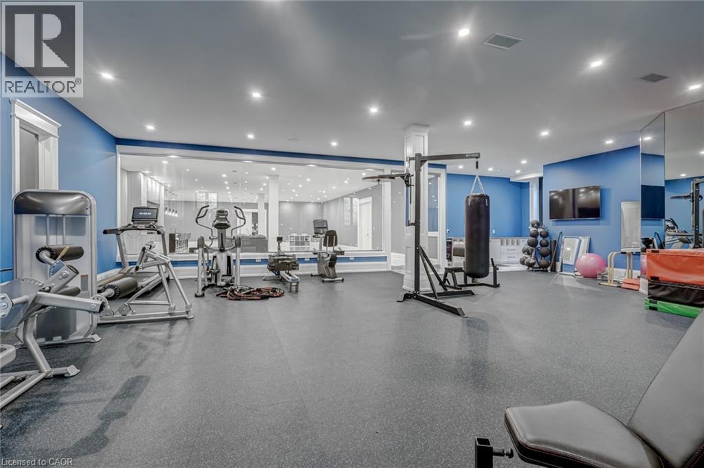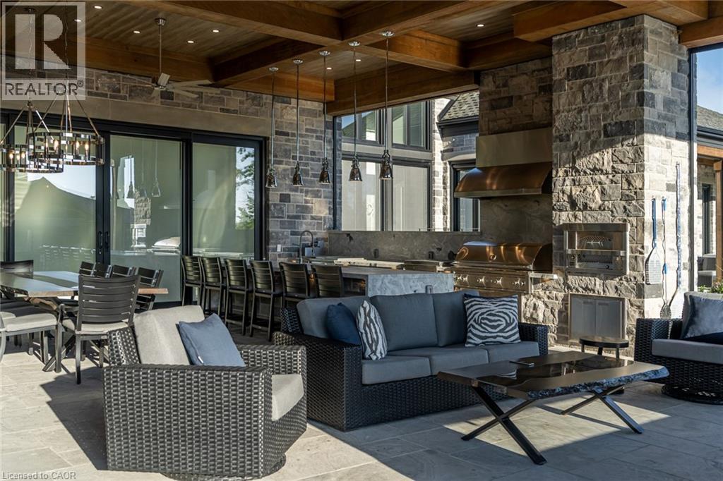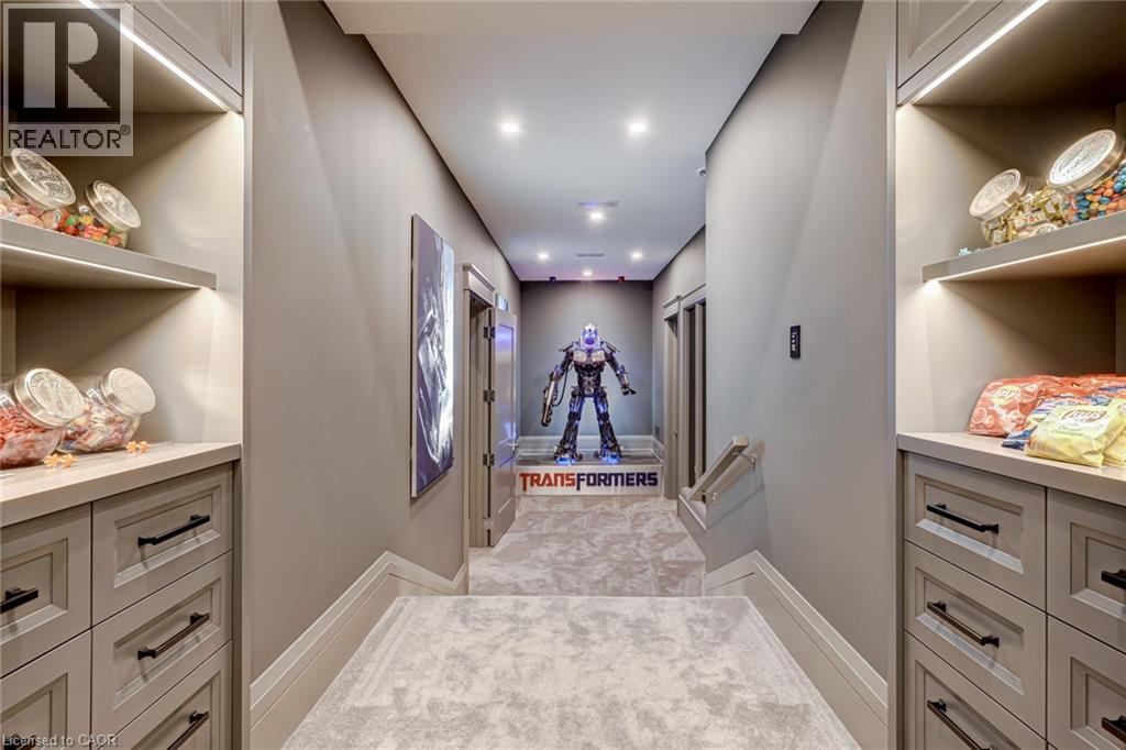 Set amidst a 5.2-acre estate, this extraordinary 32,000+ sq ft mansion offers unparalleled luxury and privacy. The gated and secured property features a stunning 1/3-acre aerated pond leading to a sprawling contemporary bungalow with lofted in-law quarters and a 5,210 sq ft detached garage with lounge, wash bay, and private gas pump—ideal for car enthusiasts.Surrounded by serene countryside, yet minutes from the heart of Ancaster, the renowned Hamilton Golf & Country Club, and Highway 403, offering both seclusion and convenience. Inside, every room showcases soaring 14 to 18-foot custom moulded ceilings, 32-inch porcelain flooring, and the highest quality materials and craftsmanship. The state-of-the-art home features whole-home automation by Control4. Spacious living areas feature custom granite walls with Town & Country fireplaces. A gourmet kitchen is equipped with top-tier appliances, including Sub-Zero, Thermador, and Miele. The luxurious lanai is perfect for entertaining, with heated Eramosa flagstone, a full outdoor kitchen, 72” Woods gas fireplace, and phantom screens. The opulent primary suite includes a private patio with hot tub and an expansive dressing room. The ensuite features heated herringbone floors, a soaker tub with fireplace, towel warmer drawers and a digital rain shower. The opposite wing offers three additional bedroom suites, each with walk-in closets and ensuites. A Cambridge elevator provides access to the entertainer’s dream basement, with a party room, full bar, professional gym with sauna and steam shower, games room, and a state-of-the-art home theatre. This 24-seat Dolby Atmos theatre features a 254-inch screen, 24-foot ceiling height, and a Kaleidoscope movie server for the ultimate cinematic experience. Outdoor amenities include a 35’ x 75’ heated pool, a 14-person hot tub, and an entertainment cabana with a media area and hosting bar. A regulation-size sports court and a children’s playground complete this family-friendly estate. (id:64974)