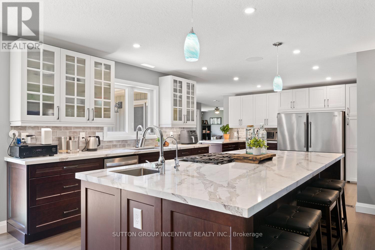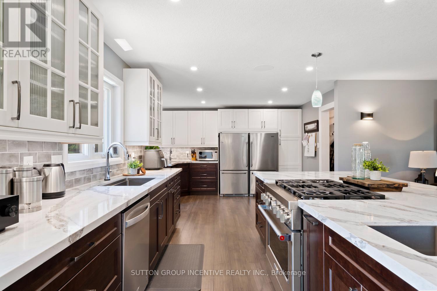 Welcome to this one-of-a-kind custom-built side split home, perfectly situated on a spacious 120x193ft lot. Designed with versatility in mind, this property is perfect for multi-generational families seeking extra space or buyers looking for income potential. Step inside and be captivated by the large open-concept kitchen, perfect for family gatherings and culinary adventures. Fitness enthusiasts will appreciate the dedicated home gym, ensuring you can stay active without leaving the comfort of your home. The home boasts an enormous basement with high ceilings, offering abundant living space for relaxation and entertainment. The basement also features a stunning wet bar in the games room making for a first-class entertainment area. Additional highlights include a 900 sqft garage with separate heating, ideal for car enthusiasts or those in need of a spacious workshop. The 200amp breaker ensures the home is well-equipped to meet all your electrical needs.This property truly must be seen to be believed. Don't miss out on the opportunity to own this unique gem that offers endless possibilities for comfortable living and entertaining. Schedule a viewing today and imagine the incredible lifestyle that awaits you! (id:64974)