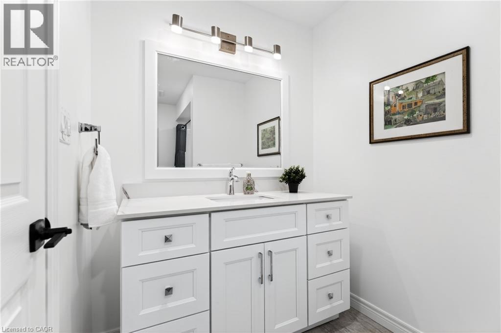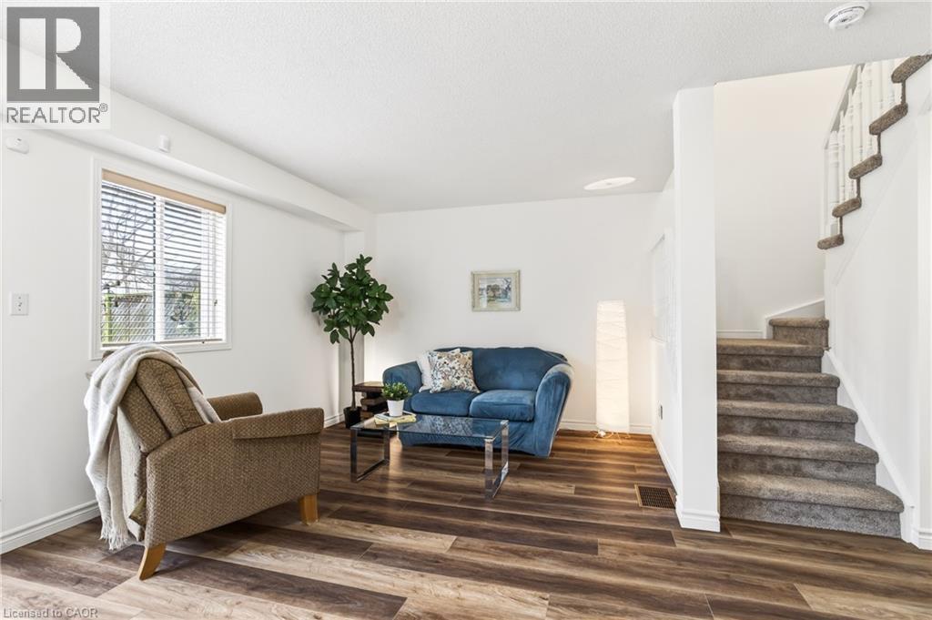 Welcome home. This beautifully maintained freehold townhouse in a family-friendly area invites you to experience a sense of flow. Notice the fresh paint and new luxury vinyl plank flooring as you move from the spacious foyer into the light-filled living and dining areas—perfect for entertaining. Discover the ease of the extended kitchen, offering ample prep and cupboard space for your daily life. Upstairs, feel the comfort of plush new carpeting and spacious landing. The primary bedroom features double closets and natural light, while the fully renovated washroom showcases premium finishes and a large vanity. With two more spacious bedrooms, there’s room to grow. The basement offers extra living space with a 3-piece rough-in, ready for your finishing touches. Step outside to a lovely deck overlooking a deep, 150-ft treed lot. The fenced backyard provides exceptional privacy for children and pets. Complete with direct access to the garden through the attached garage and providing a total of 3 parking spaces. You’re ideally located near schools, parks, shopping, and QEW. With too many updates to list here (Updates list provided upon request) this is a rare opportunity to secure a move-in ready home in a location that feels exactly right. (id:64974)