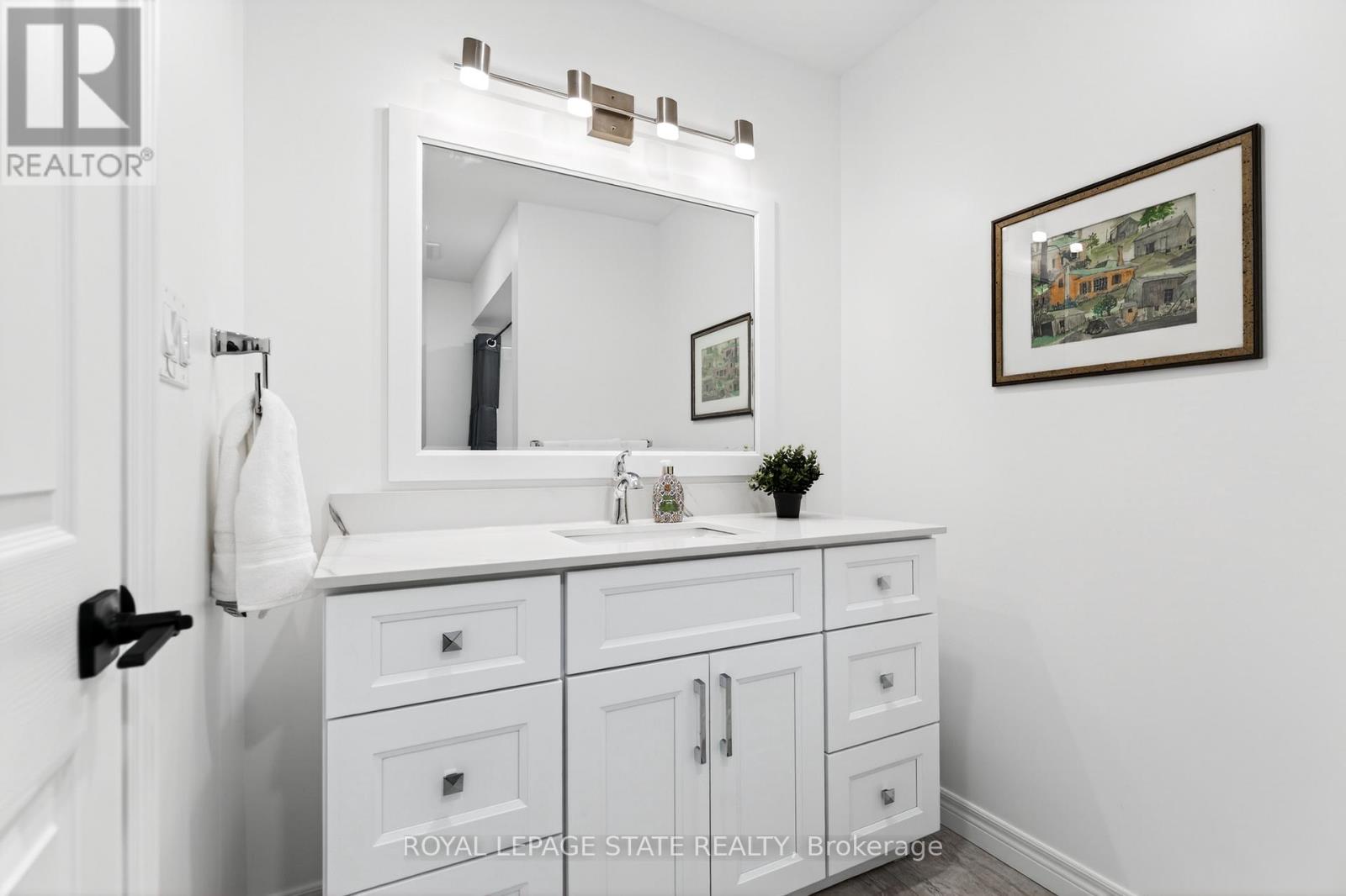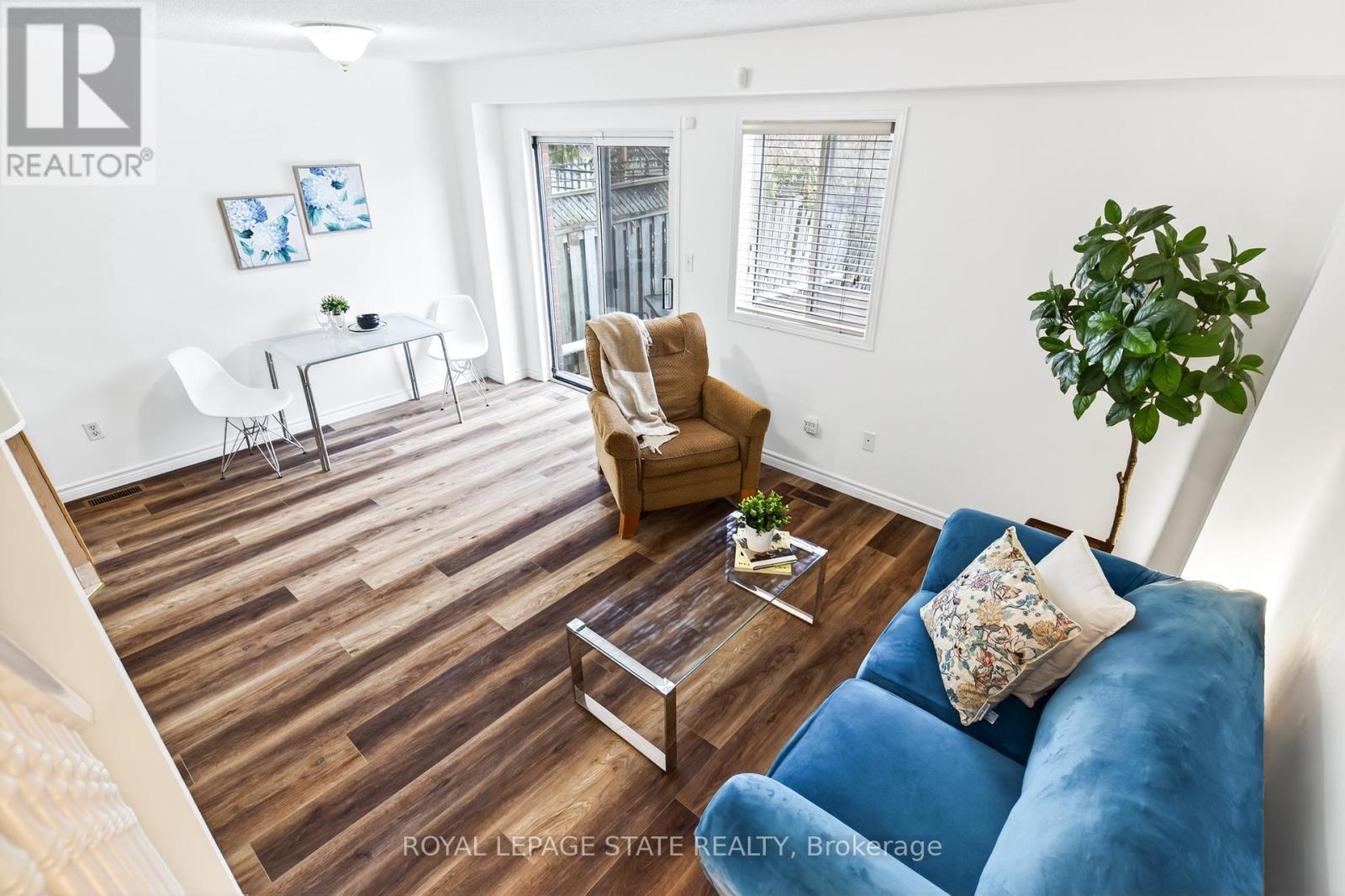 Welcome home. This beautifully maintained freehold townhouse in a family-friendly area invites you to experience a sense of flow. Notice the fresh paint and new luxury vinyl plank flooring as you move from the spacious foyer into the light-filled living and dining areas-perfect for entertaining. Discover the ease of the extended kitchen, offering ample prep and cupboard space for your daily life. Upstairs, feel the comfort of plush new carpeting and spacious landing. The primary bedroom features double closets and natural light, while the fully renovated washroom showcases premium finishes and a large vanity. With two more spacious bedrooms, there's room to grow. The basement offers extra living space with a 3-piece rough-in, ready for your finishing touches. Step outside to a lovely deck overlooking a deep, 150-ft treed lot. The fenced backyard provides exceptional privacy for children and pets. Complete with direct access to the garden through the attached garage and providing a total of 3 parking spaces. You're ideally located near schools, parks, shopping, and QEW. With too many updates to list here (Updates list provided upon request) this is a rare opportunity to secure a move-in ready home in a location that feels exactly right. (id:64974)