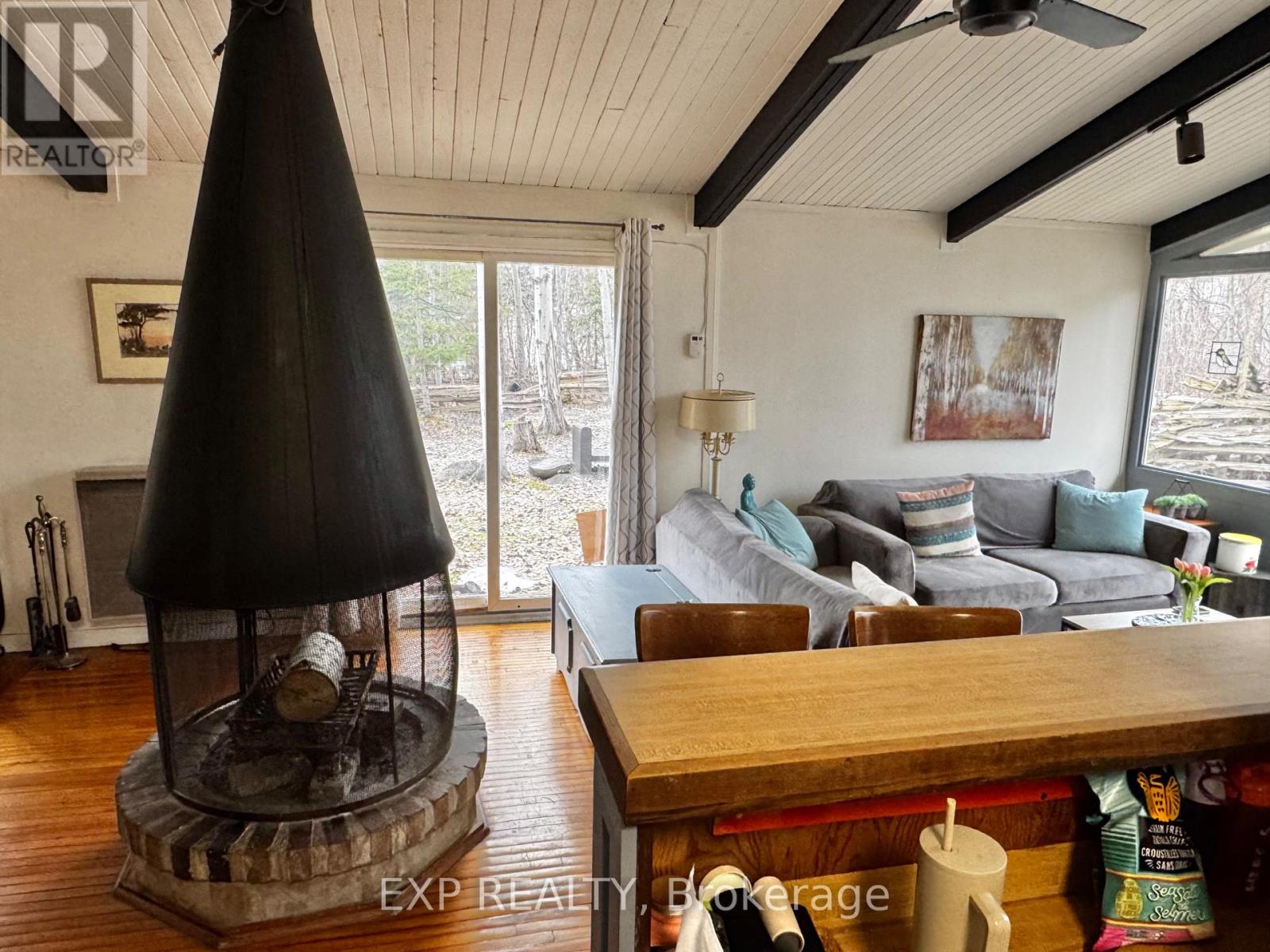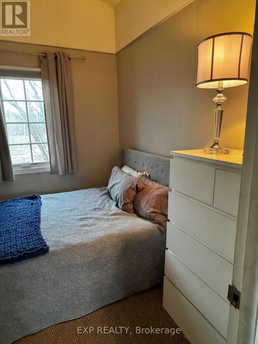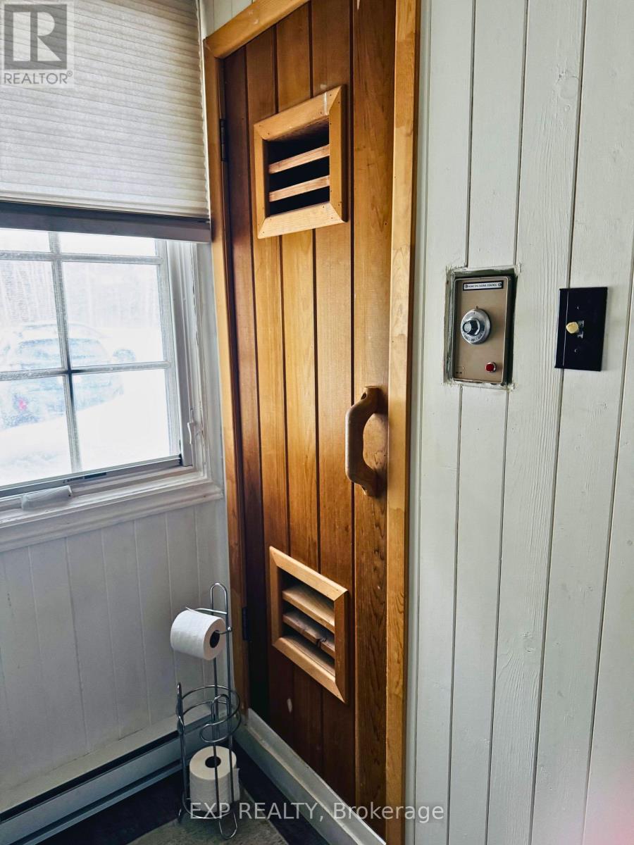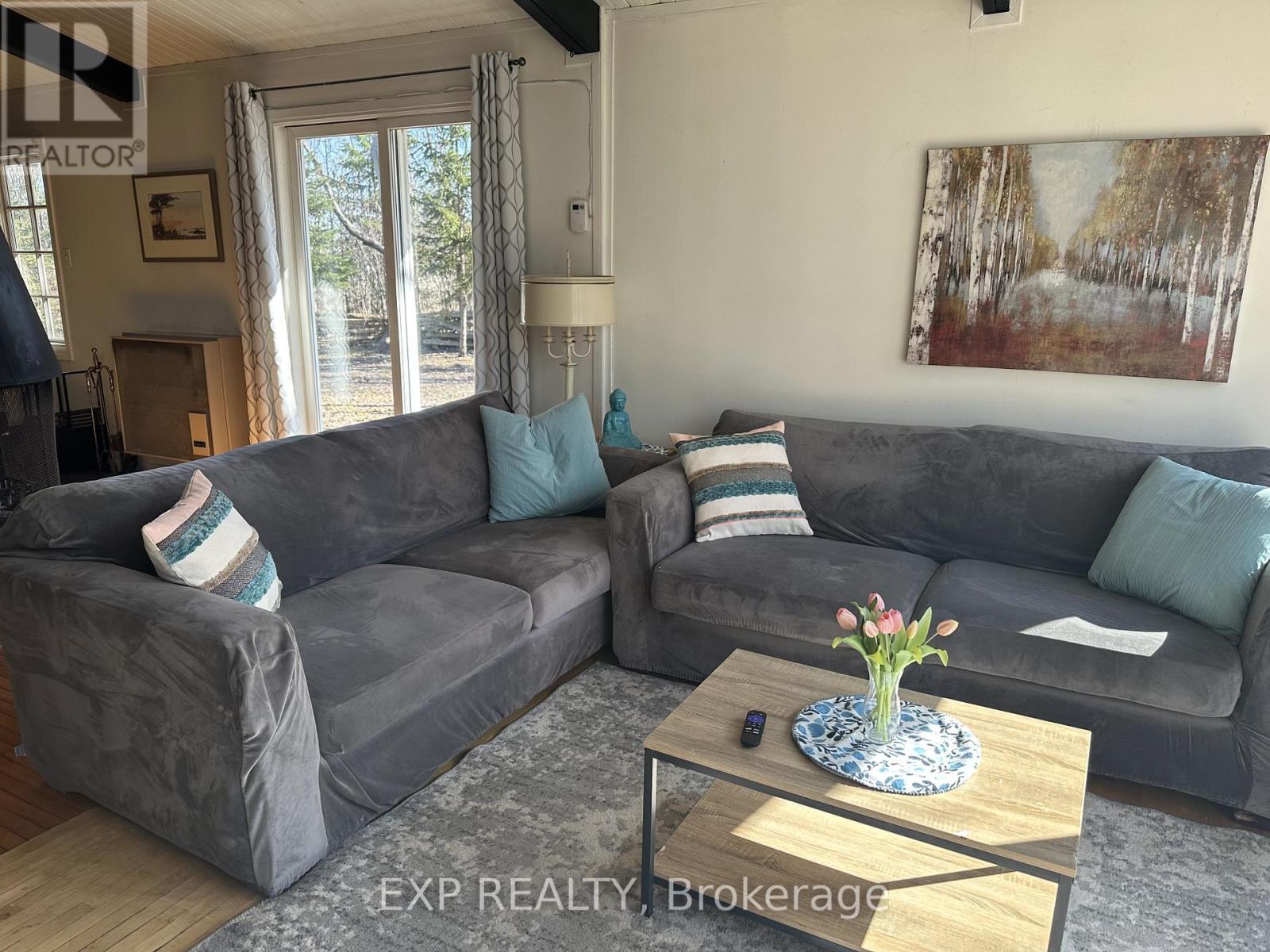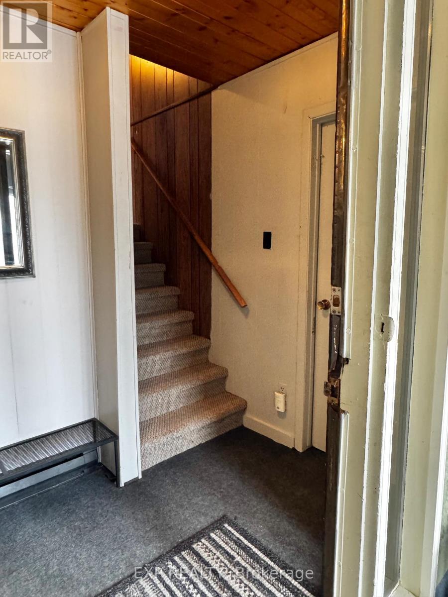 Pet-Friendly Annual Lease Within Walking Distance to Blue Mountain Village Available June 1st. This charming 4-bedroom, 1.5 bath chalet offers an unbeatable four-season lifestyle and the privacy of a forested half acre lot. The main floor features 3 cosy bedrooms, an open-concept kitchen, dining, and living area with vaulted ceilings and a central wood-burning fireplace, a den, and main floor laundry. Two patio doors open to a private backyard, and there is ample parking for family and guests. Upstairs, a fourth bedroom with retro charm offers views of the ski hills, adding to the chalet's character and warmth. After a day outdoors, unwind in your own private sauna. A new metal roof is being installed in May, offering added durability and peace of mind. All of this within walking distance to the Blue Mountain Village's restaurants, shops, ski lifts, and hiking trails, while still enjoying privacy and quiet at home. (id:64974)
