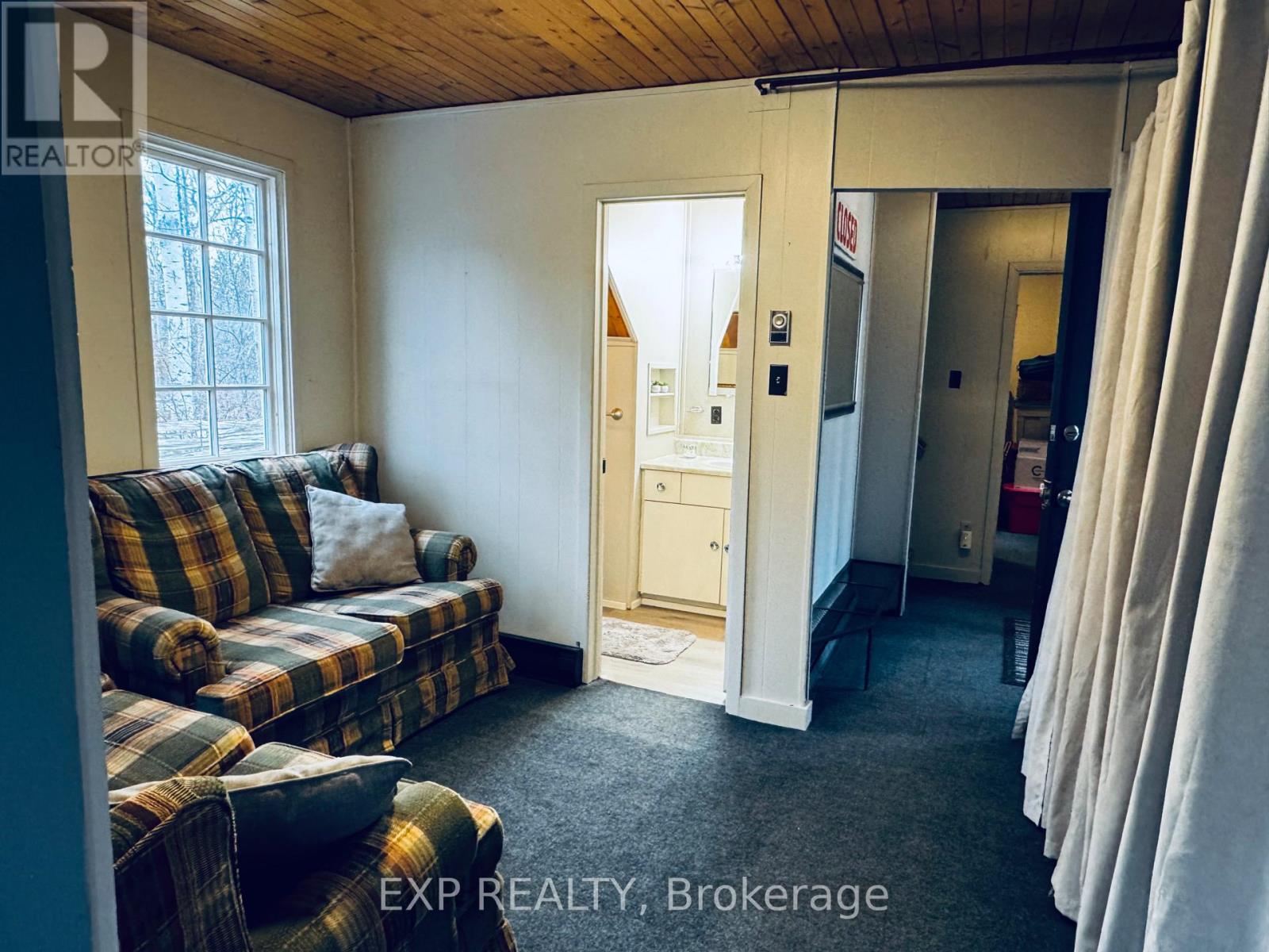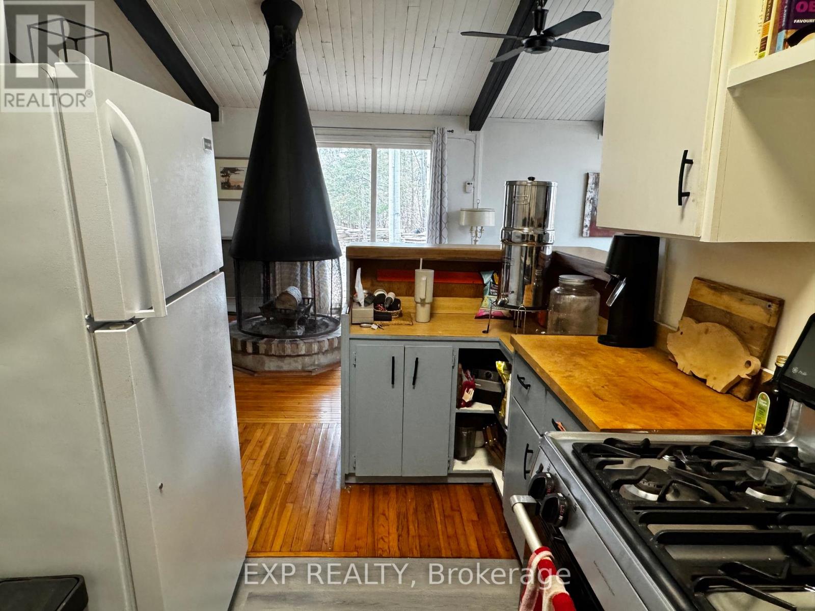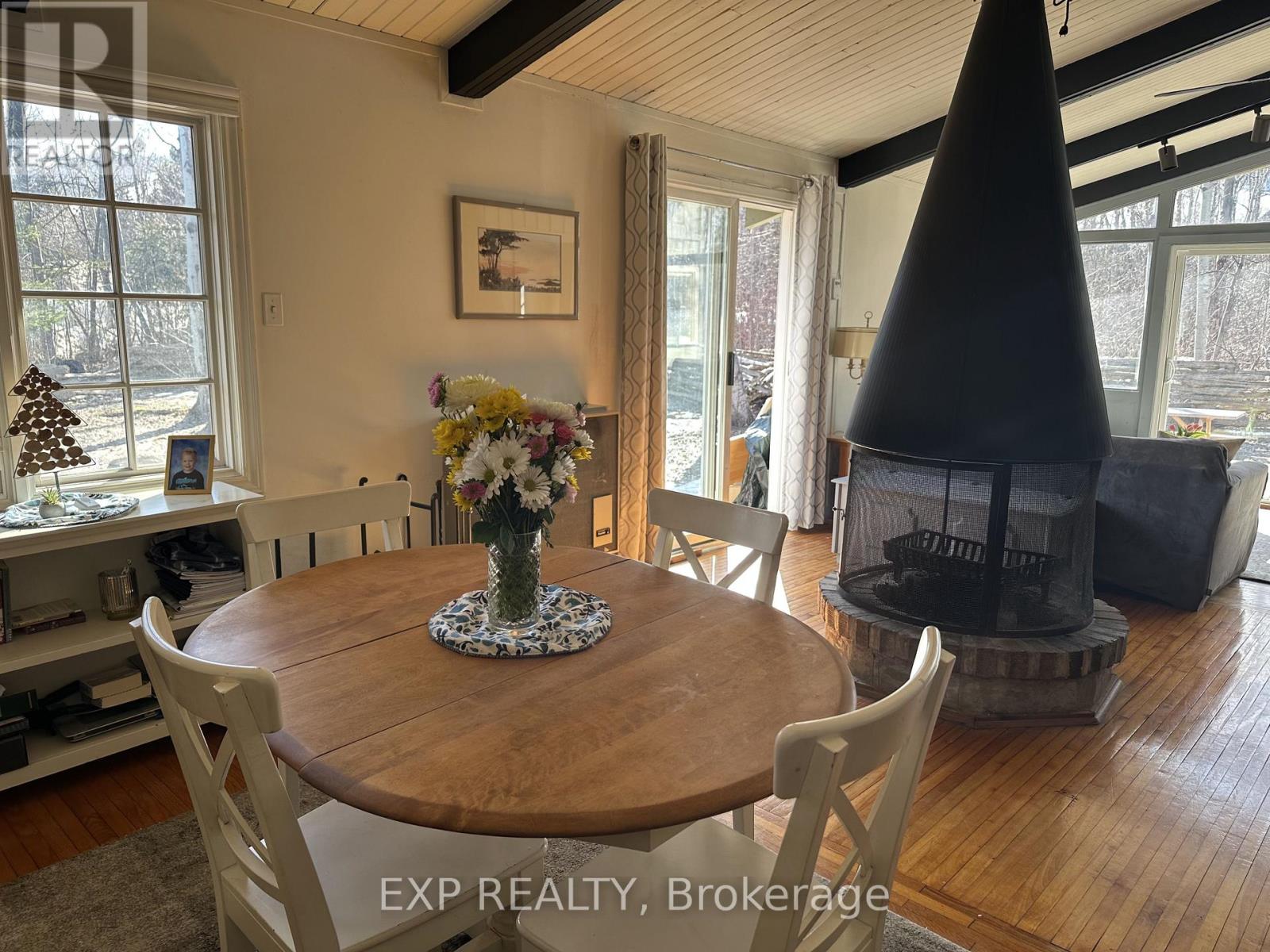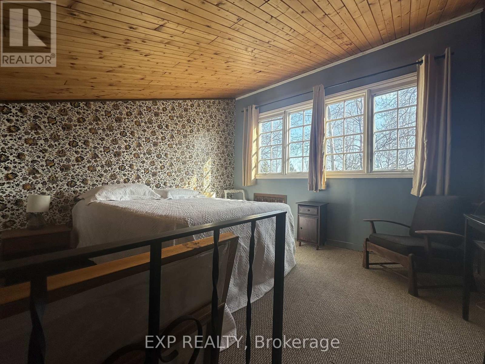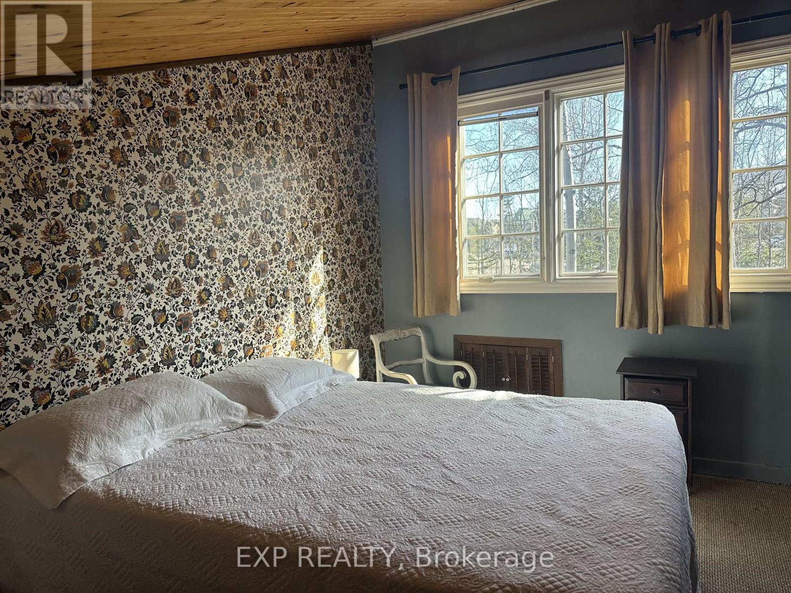 Pet-Friendly Annual Lease Within Walking Distance to Blue Mountain Village Available June 1st. This charming 4-bedroom, 1.5 bath chalet offers an unbeatable four-season lifestyle and the privacy of a forested half acre lot. The main floor features 3 cosy bedrooms, an open-concept kitchen, dining, and living area with vaulted ceilings and a central wood-burning fireplace, a den, and main floor laundry. Two patio doors open to a private backyard, and there is ample parking for family and guests. Upstairs, a fourth bedroom with retro charm offers views of the ski hills, adding to the chalet's character and warmth. After a day outdoors, unwind in your own private sauna. A new metal roof is being installed in May, offering added durability and peace of mind. All of this within walking distance to the Blue Mountain Village's restaurants, shops, ski lifts, and hiking trails, while still enjoying privacy and quiet at home. (id:64974)