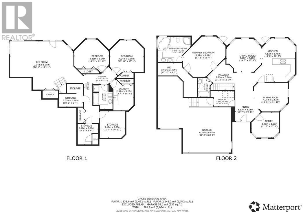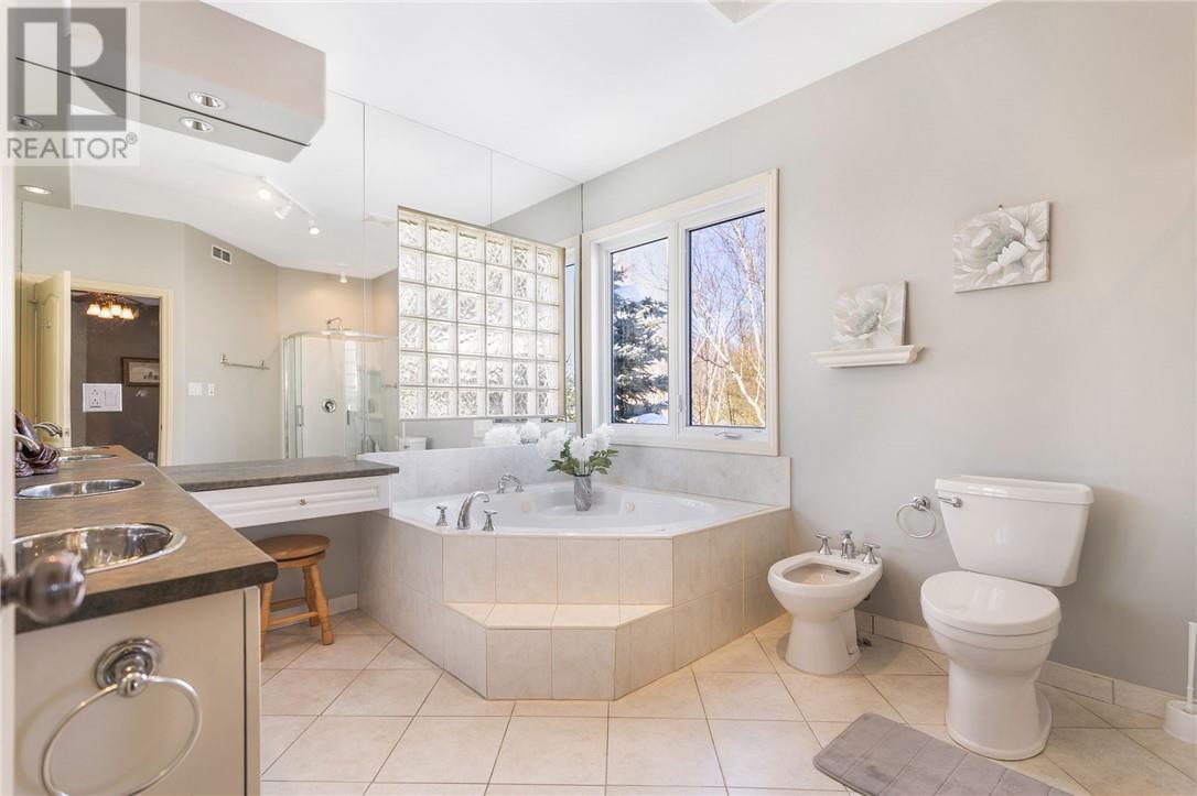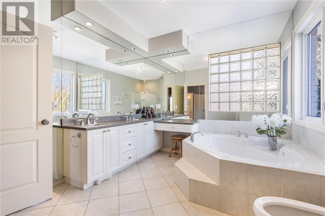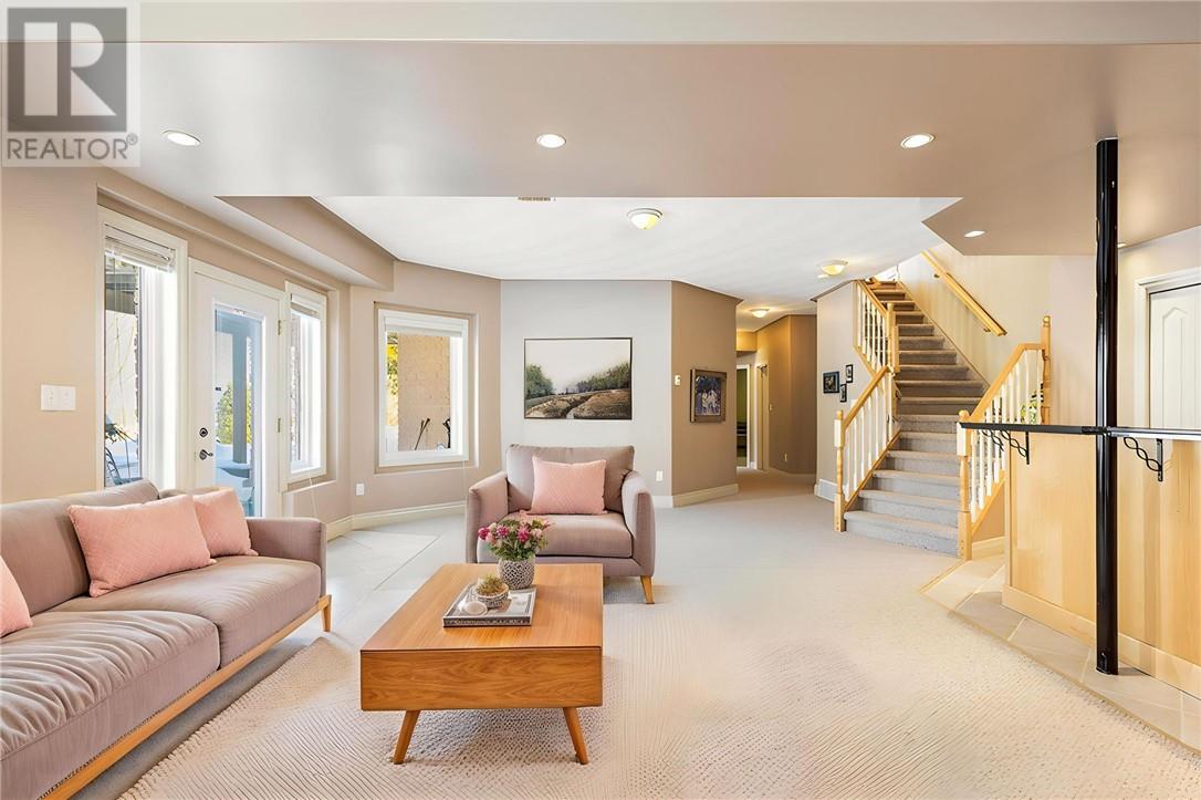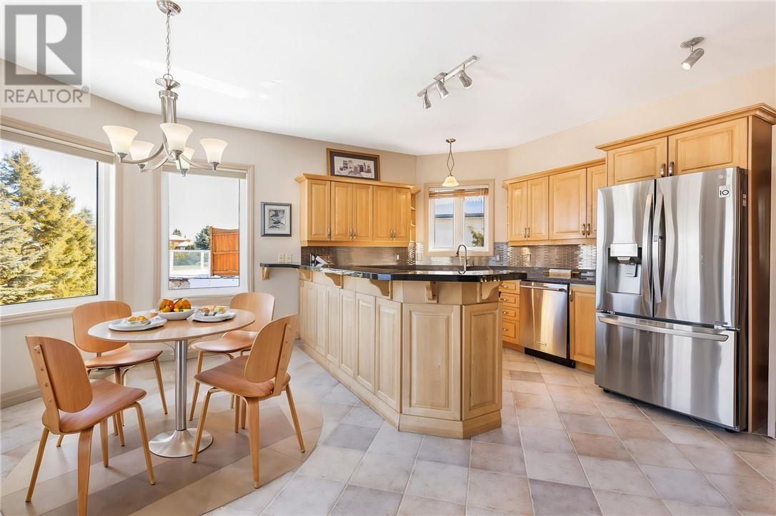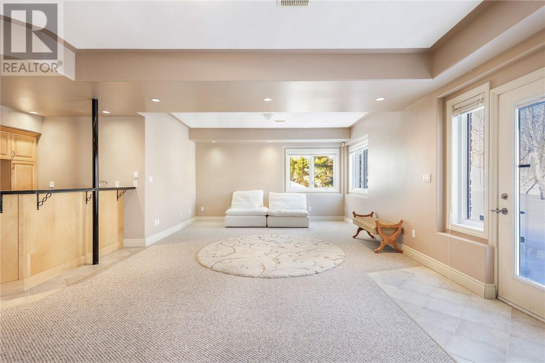 Welcome to 128 Gardenvale, a beautifully designed bungalow offering 3,600 square feet of living area, thoughtfully laid out with almost 1,800 square feet on each level. Perfectly situated on a quiet cul-de-sac, this home was custom built by the original owners with an attention to detail. The main floor features two bedrooms, including a spacious primary suite complete with a private walkout to the deck, a custom spa-inspired ensuite, and a double-section walk-in closet. The second bedroom is perfectly suited as a den or home office. A full four-piece bathroom adds convenience for guests or family. The kitchen overlooks the private backyard and connects to the dining room through a charming traditional swinging door. The living room is the perfect place to unwind, anchored by a cozy gas fireplace. The fully finished walkout basement boasts 9-foot ceilings and offers exceptional additional living space. Here you'll find two more bedrooms, a full bathroom with a separate shower, a mirrored workout room (ideal as a gym or additional office), a second laundry room with extensive storage and potential for a sewing or craft space, plus a fully functioning wet bar — perfect for entertaining. This lower level also has a great potential for an In-Law suite. Comfort is top of mind with multiple zone in-floor heating available throughout the lower level and in all tiled areas on the main floor. The main heat is a forced air furnace with Air conditioning for the summer heat. Completing the home is a rare triple car garage with loft storage space, providing plenty of room for vehicles, tools, and seasonal storage. Some recent upgrades in the last few years include new shingles (2021), updated a/c (2020) & furnace (2019) and new custom electronic blinds. This is a rare opportunity to enjoy space, warmth, and privacy in one exceptional package. For a 3D tour of the house go to: https://my.matterport.com/show/?m=YLuhHLRdoQq& (id:64974)