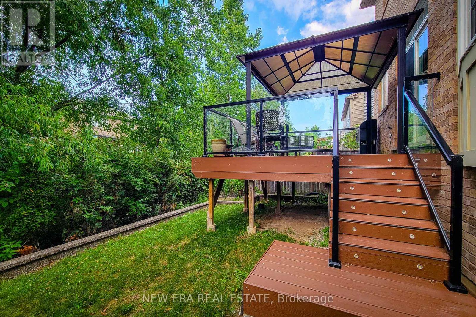 Welcome to this spacious 2-storey detached home nestled in a quiet, family-friendly neighbourhood! Offering over 2,000 sq ft of comfortable living space, this home features a carpet-free main floor with a cozy living room complete with an electric fireplace, a separate dining room perfect for entertaining, and a bright eat-in kitchen with stainless steel appliances, tiled backsplash, ample cupboard space, and a walk-out to the back deck. The upper level boasts a large family room ideal for relaxation or play, convenient bedroom-level laundry, and three generously sized bedrooms. The primary suite includes a walk-in closet and private 3pc ensuite, while the 4pc main bath offers ensuite privilege to the other two bedrooms. The partially finished basement includes an additional bedroom, offering flexible space for guests, a home office, or recreation. Enjoy the fully fenced backyard with a deck and charming gazebo - perfect for summer gatherings. Located close to parks, Lake Ontario, the marina, and just a short drive to schools, the QEW, and all major amenities. A fantastic place to call home! (id:64974)