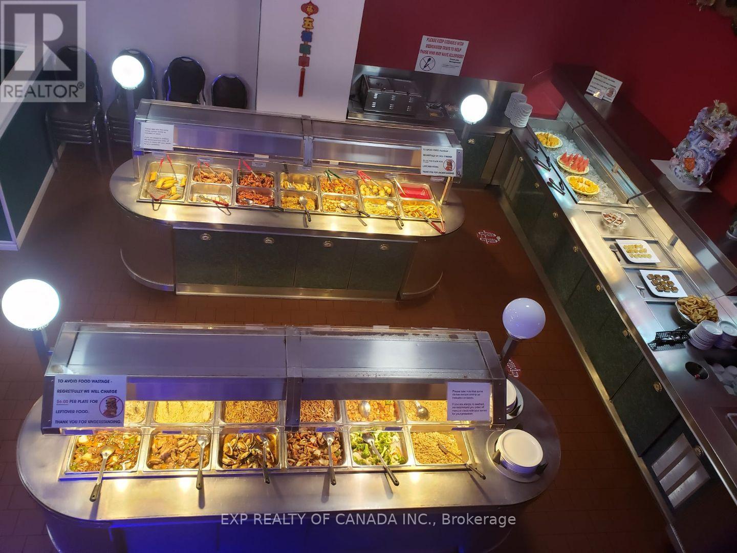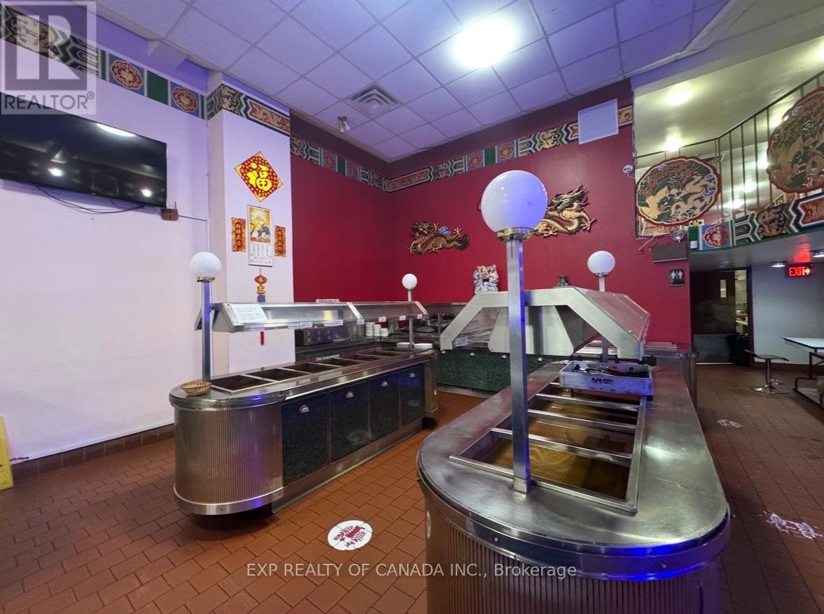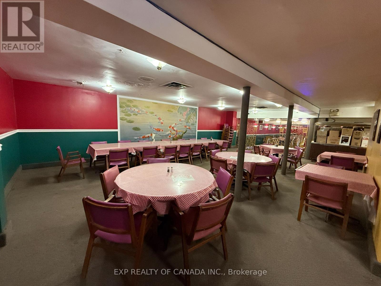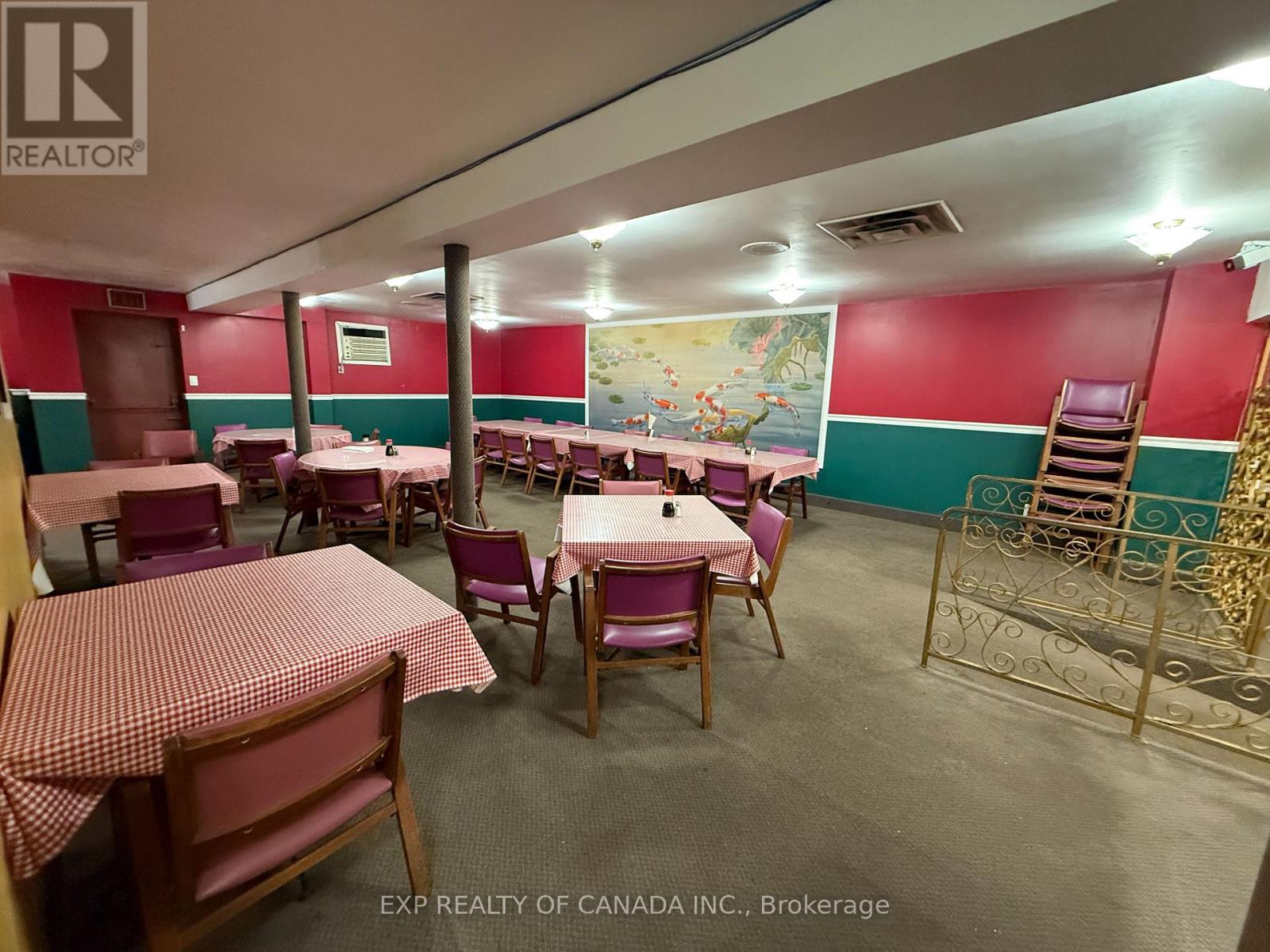 Well established Chinese food restaurant with over 5000 square feet of commercial space. The sale includes the restaurant equipment, inventory, kitchen equipment, (the dishwashing is not included) The lower level has a private entrance and a hall that can accommodate private function of up to 60 guests or can be rented separately as another business. The building has seating capacity of up to 180 guests. The restaurant does great volume with established clients and through the delivery service. See Schedule B regarding Chattels included in the Sale. (id:64974)