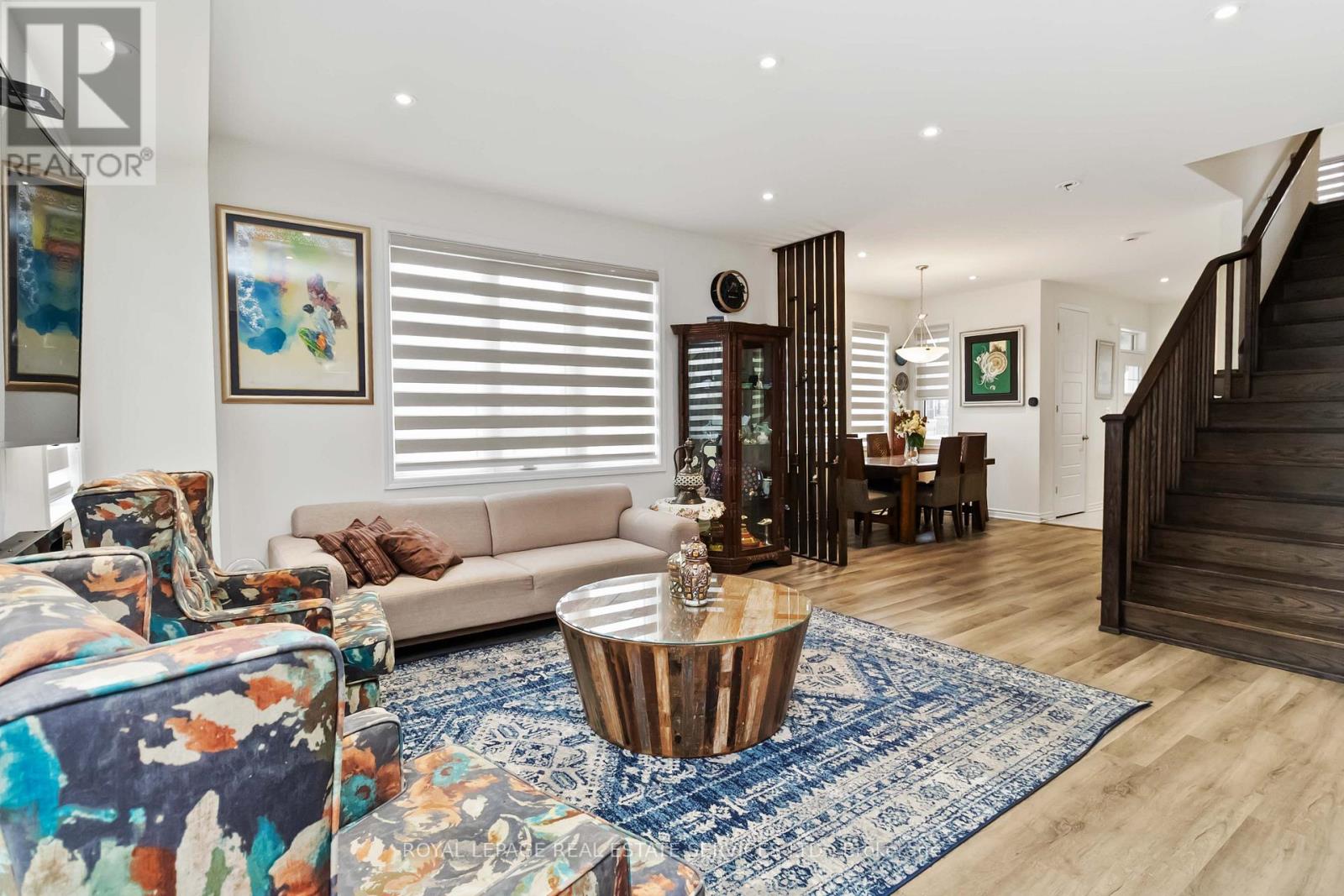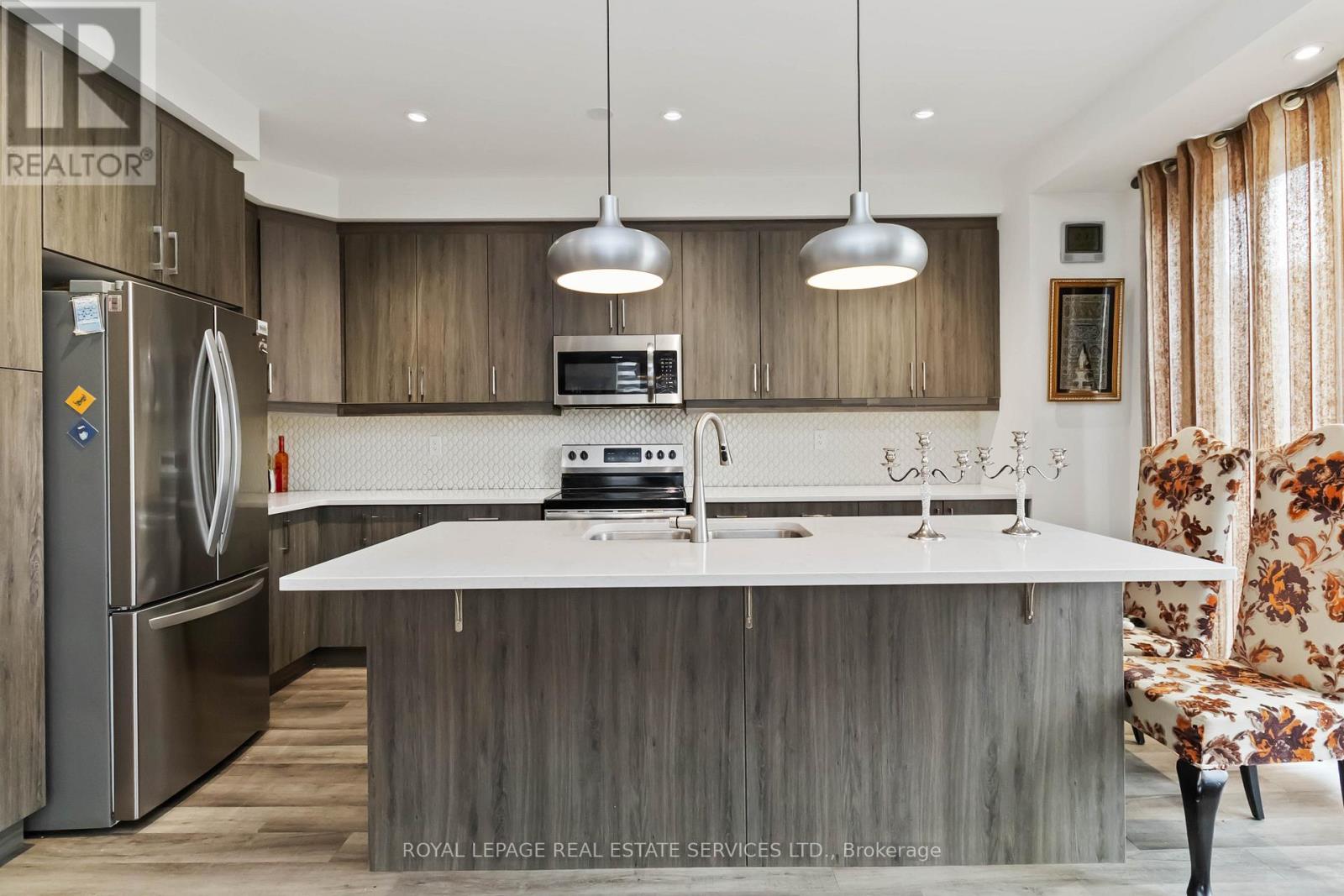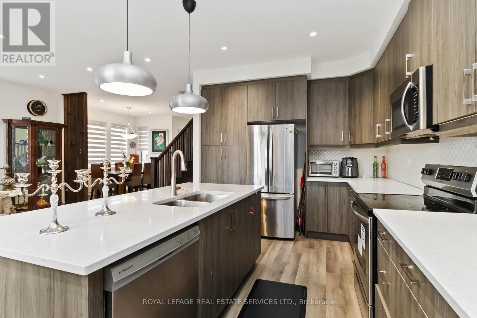 Discover the perfect blend of sophisticated design and family-oriented luxury in this immaculate corner residence, situated in the highly coveted Sixteen Mile Creek community of Hawthorne Village. This gorgeous 4-bedroom, 4-bathroom home offers nearly 2,600 square feet of total living space. Defined by recessed pot lighting and expansive windows that flood the space with natural light, the formal living and dining areas provide an elegant backdrop for both intimate gatherings and festive entertaining. At the heart of the home lies a gourmet open-concept kitchen designed for culinary excellence, boasting a massive quartz center island, custom cabinetry, a stylish backsplash, and stainless steel appliances. This central hub overlooks the inviting family room and features sliding glass doors that reveal a fully fenced backyard, offering a seamless transition to outdoor living. Ascend the stunning upgraded oak staircase to the second level. The primary bedroom features a walk-in closet and a spa-inspired 4-piece ensuite complete with a deep soaker tub and separate shower. Three additional spacious bedrooms share a 4 pc bath, while a dedicated laundry room on the upper level adds a layer of everyday ease. Unlock incredible potential with the professionally fully finished lower level. This versatile space is a complete in-law suite ready for action. It boasts a large open-concept rec room, a full second kitchen, a modern 3-piece bath, and dedicated laundry. Located in a prestigious enclave close to top-rated schools, scenic walking trails, and parks, this home is a commuter's dream-minutes from the GO Station and Hwy 401, with essential amenities like Metro and Starbucks just moments away. (id:64974)