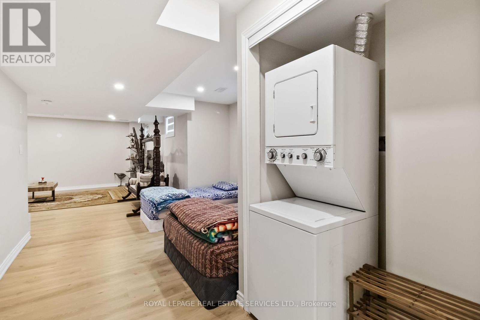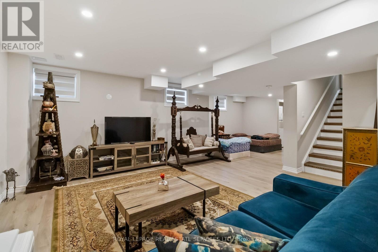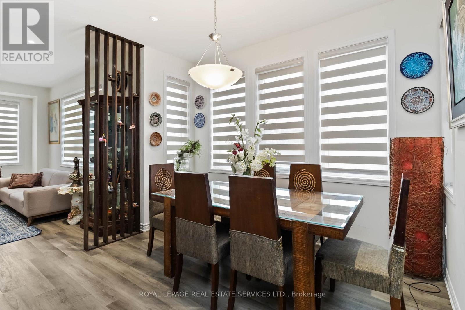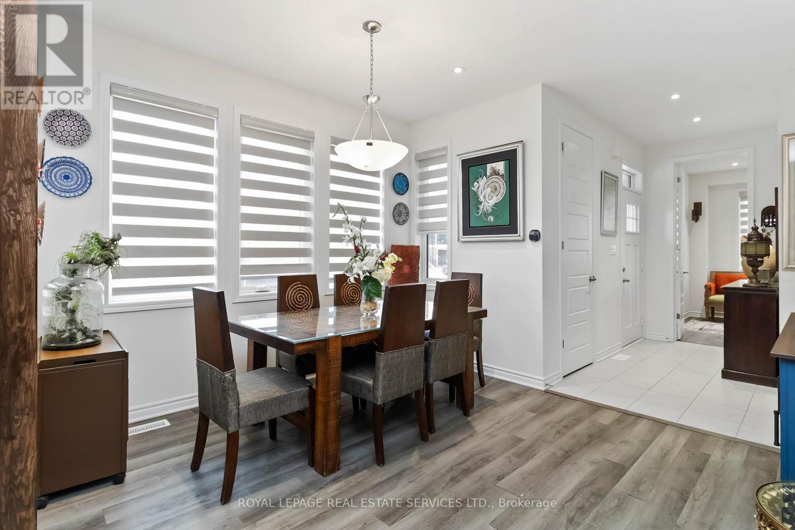 Discover the perfect blend of sophisticated design and family-oriented luxury in this immaculate corner residence, situated in the highly coveted Sixteen Mile Creek community of Hawthorne Village. This gorgeous 4-bedroom, 4-bathroom home offers nearly 2,600 square feet of total living space. Defined by recessed pot lighting and expansive windows that flood the space with natural light, the formal living and dining areas provide an elegant backdrop for both intimate gatherings and festive entertaining. At the heart of the home lies a gourmet open-concept kitchen designed for culinary excellence, boasting a massive quartz center island, custom cabinetry, a stylish backsplash, and stainless steel appliances. This central hub overlooks the inviting family room and features sliding glass doors that reveal a fully fenced backyard, offering a seamless transition to outdoor living. Ascend the stunning upgraded oak staircase to the second level. The primary bedroom features a walk-in closet and a spa-inspired 4-piece ensuite complete with a deep soaker tub and separate shower. Three additional spacious bedrooms share a 4 pc bath, while a dedicated laundry room on the upper level adds a layer of everyday ease. Unlock incredible potential with the professionally fully finished lower level. This versatile space is a complete in-law suite ready for action. It boasts a large open-concept rec room, a full second kitchen, a modern 3-piece bath, and dedicated laundry. Located in a prestigious enclave close to top-rated schools, scenic walking trails, and parks, this home is a commuter's dream-minutes from the GO Station and Hwy 401, with essential amenities like Metro and Starbucks just moments away. (id:64974)