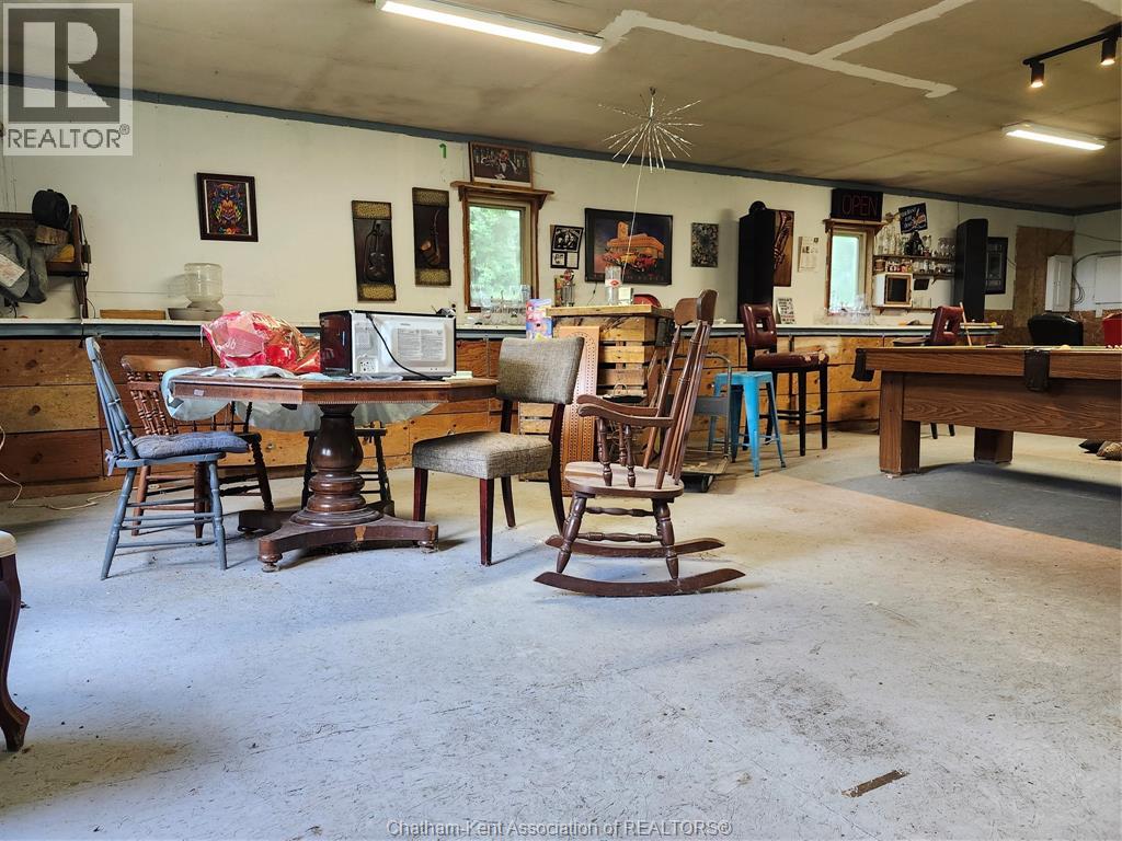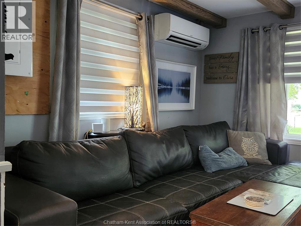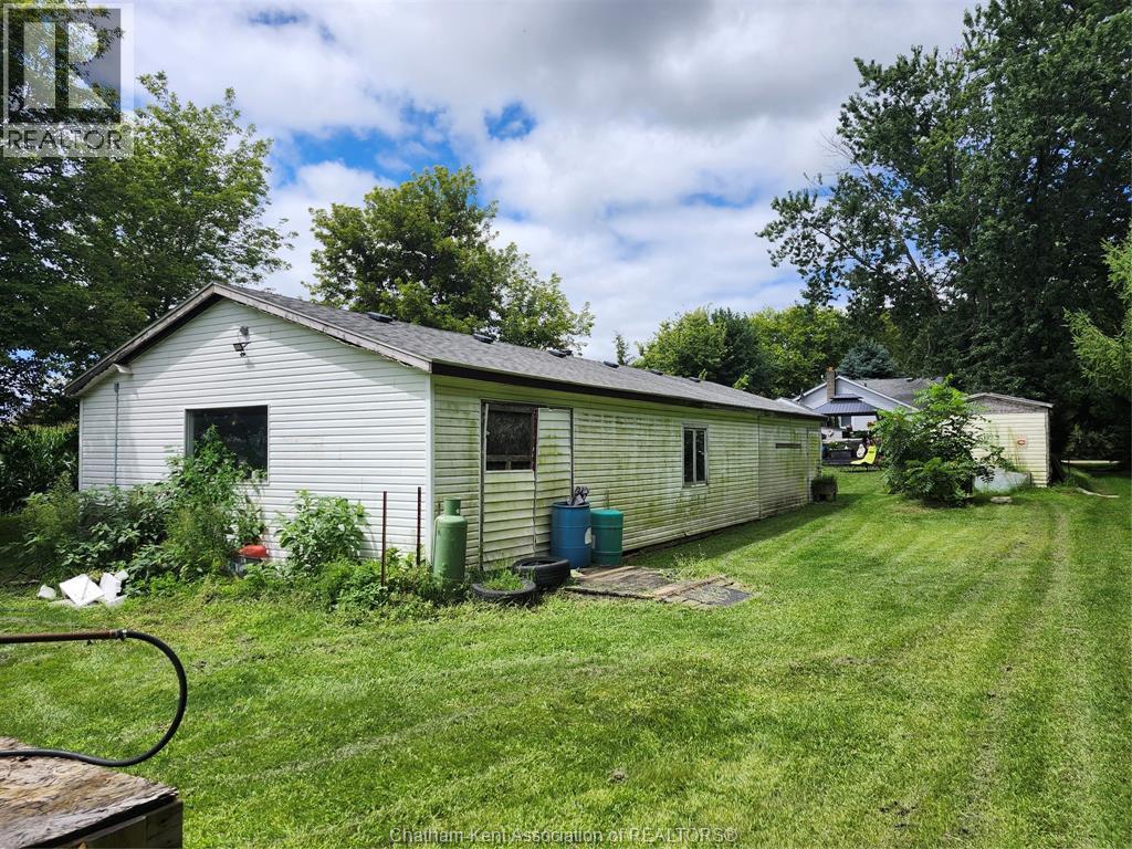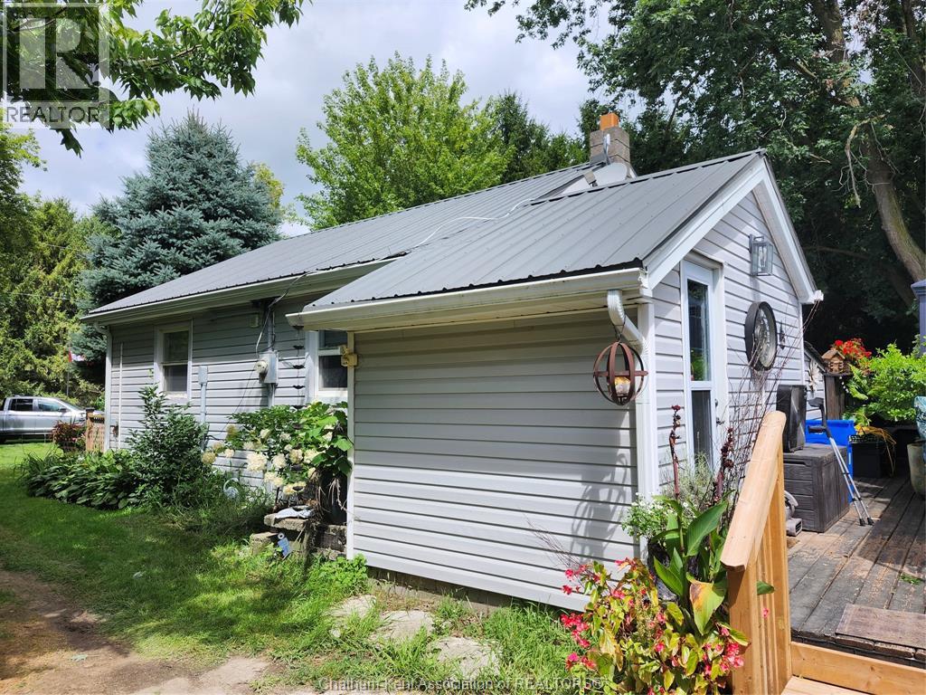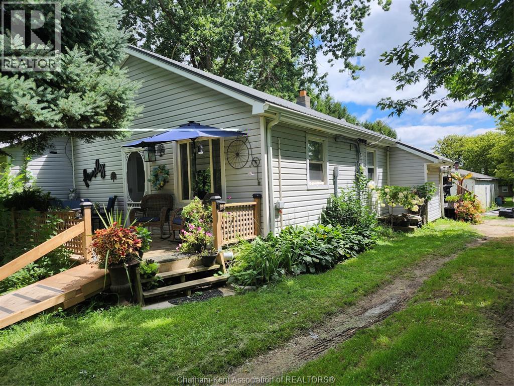 Looking for peace and quiet? Look no further!! This completed renovated 2 bedroom bungalow is situated on a 1/2+ acre lot. It features a large master bedroom with a large to dream for walk in closet. The building out back is 60' x 25' and is ideal for entertaining. If it gets cold you can warm yourself by the wood stove while playing pool or darts(both included). Looking to sit under the stars? There is lots of room for that with a firepit already set up for you. This takes you to the back part of the property complete with a bunk house (no plumbing) installed in 2022 . There is electricity to both of these buildings. Upgrades include the roof on both the house and the back building, plumbing and electrical all updated in 2020, ductless heating/a/c 2020, 200 amp , new flooring throughout and bathroom totally renovated. Pump house pump and accessories have all been replaced in 2026. 7 minutes from Thamesville, 25 minutes to Chatham. Central to Ridgetown, Wallaceburg and Dresden. Listing agent is also the owner. Seller needs to acquire suitable accomodations. (id:64974)