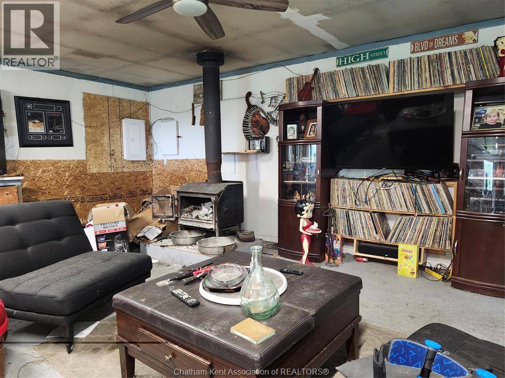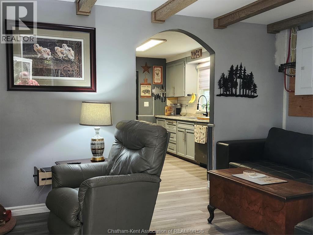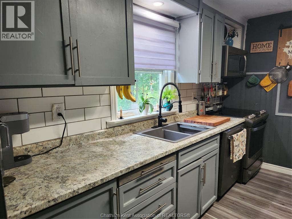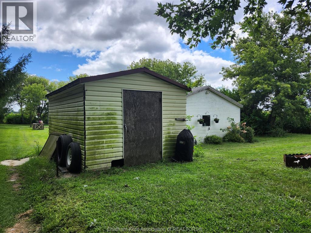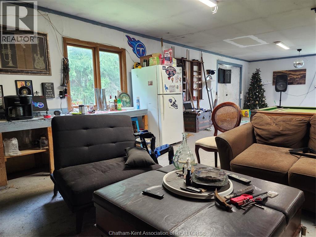 Looking for peace and quiet? Look no further!! This completed renovated 2 bedroom bungalow is situated on a 1/2+ acre lot. It features a large master bedroom with a large to dream for walk in closet. The building out back is 60' x 25' and is ideal for entertaining. If it gets cold you can warm yourself by the wood stove while playing pool or darts(both included). Looking to sit under the stars? There is lots of room for that with a firepit already set up for you. This takes you to the back part of the property complete with a bunk house (no plumbing) installed in 2022 . There is electricity to both of these buildings. Upgrades include the roof on both the house and the back building, plumbing and electrical all updated in 2020, ductless heating/a/c 2020, 200 amp , new flooring throughout and bathroom totally renovated. Pump house pump and accessories have all been replaced in 2026. 7 minutes from Thamesville, 25 minutes to Chatham. Central to Ridgetown, Wallaceburg and Dresden. Listing agent is also the owner. Seller needs to acquire suitable accomodations. (id:64974)