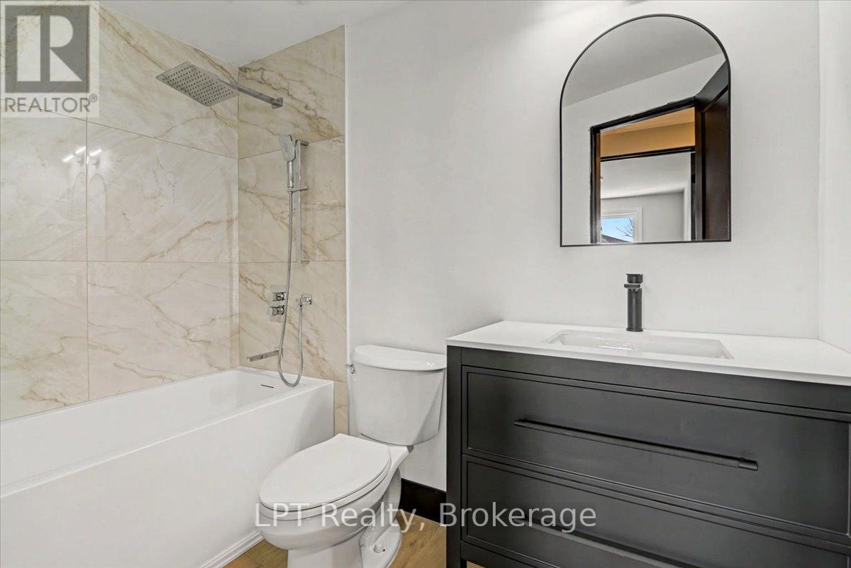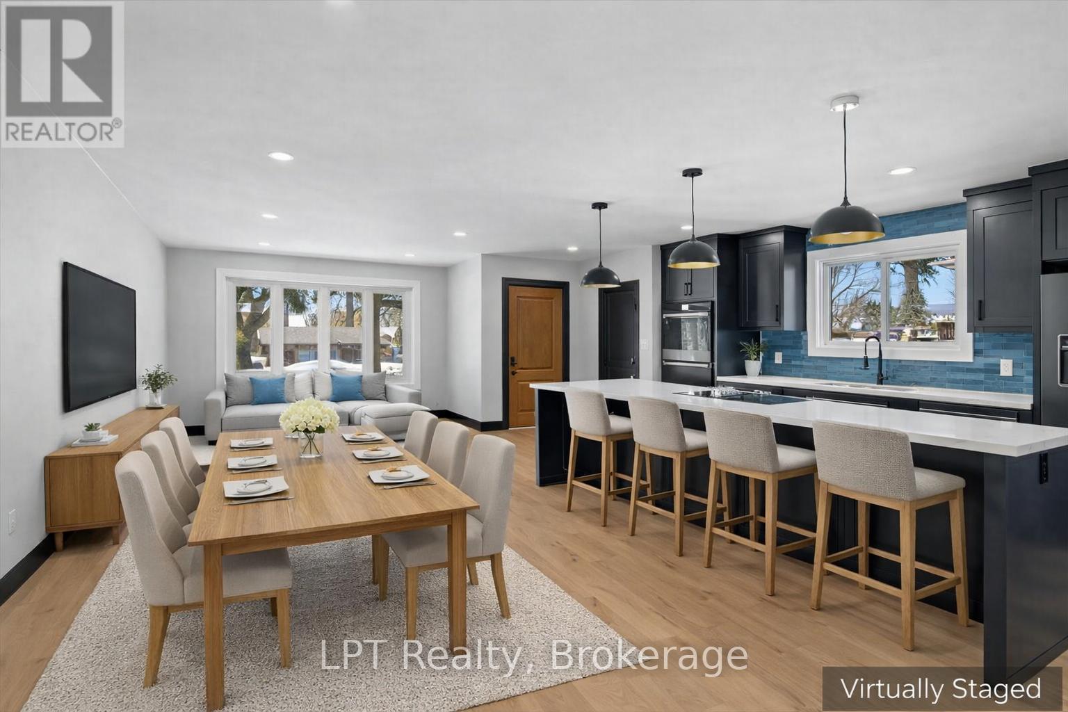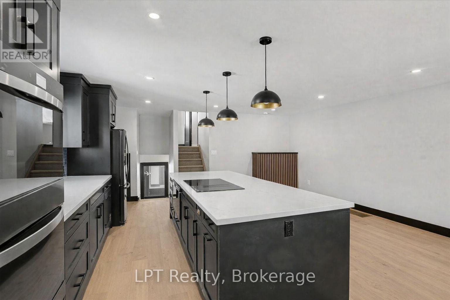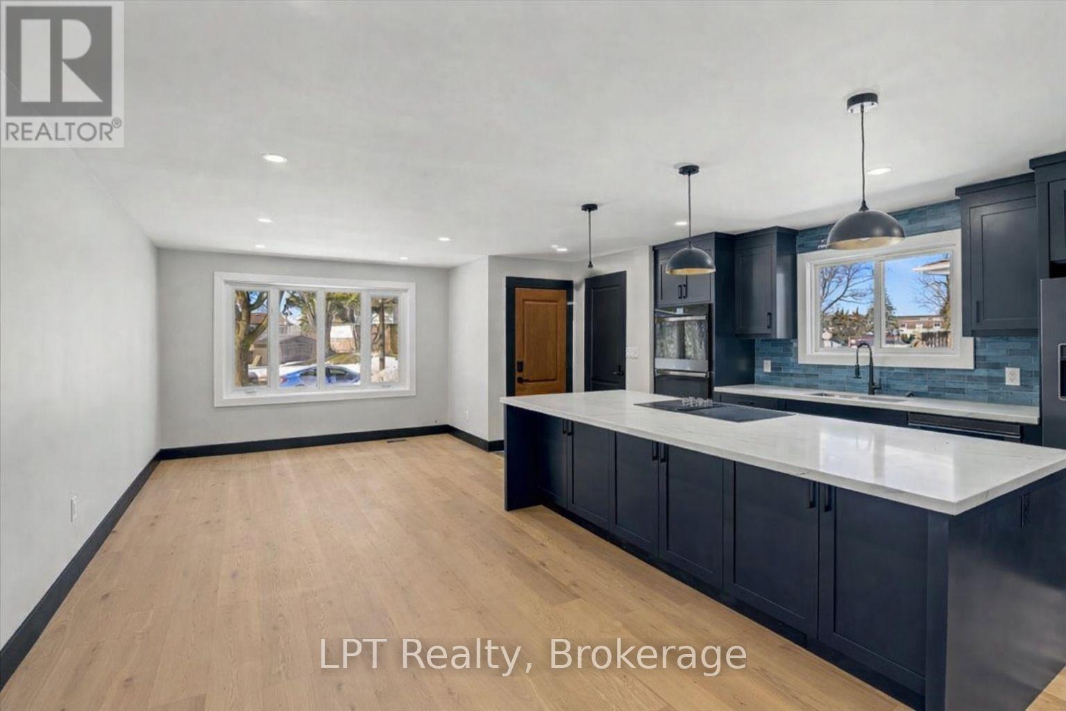 Extensively Renovated Brick Backsplit In Oshawa's Lakeview Neighbourhood With A Surprisingly Functional Layout And A Lot Of Usable Living Space. | The Main Level Is Centered Around A Bright Open Concept Kitchen, Dining And Living Area. The Kitchen Features Quartz Counters, A Large Centre Island With Cooktop, Built In Wall Ovens And Brand New Stainless Steel Appliances. Clean Modern Cabinetry And A Bold Tile Backsplash Complete The Space. The Open Layout Works Well For Everyday Living And Entertaining, With A Large Front Window Bringing In Natural Light. | The Upper Level Includes Two Bedrooms And A Full Bathroom. The Top Level Adds Two More Bedrooms Including The Primary Bedroom With Walk In Closet, Creating A Practical Separation Of Sleeping Areas. | The Lower Level Provides A Large Recreation Room Along With An Extensive Utility And Storage Area With Built In Cabinetry And Sink. Mechanical Systems Include A Full Whole Home Water Treatment System With Filtration, Softener And UV Purification. | Outside The Property Features New Wood Fencing, A Backyard Storage Shed And A Long Private Driveway With Parking For Up To Four Vehicles. The Lot Is Level And Located In An Established Neighbourhood Close To Schools, Parks, Shopping And Transit. | According To MPAC The Home Contains 877 Sq Ft Above Grade With 587 Sq Ft Of Finished Basement Space. Floorplan Measurements Show Approximately 1,529 Sq Ft Of Total Interior Space. Measurements May Vary And Buyers Should Verify. (id:64974)