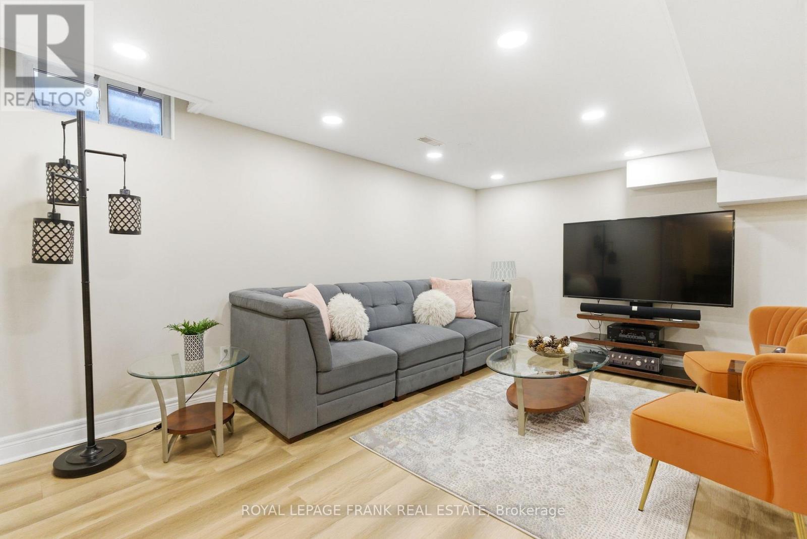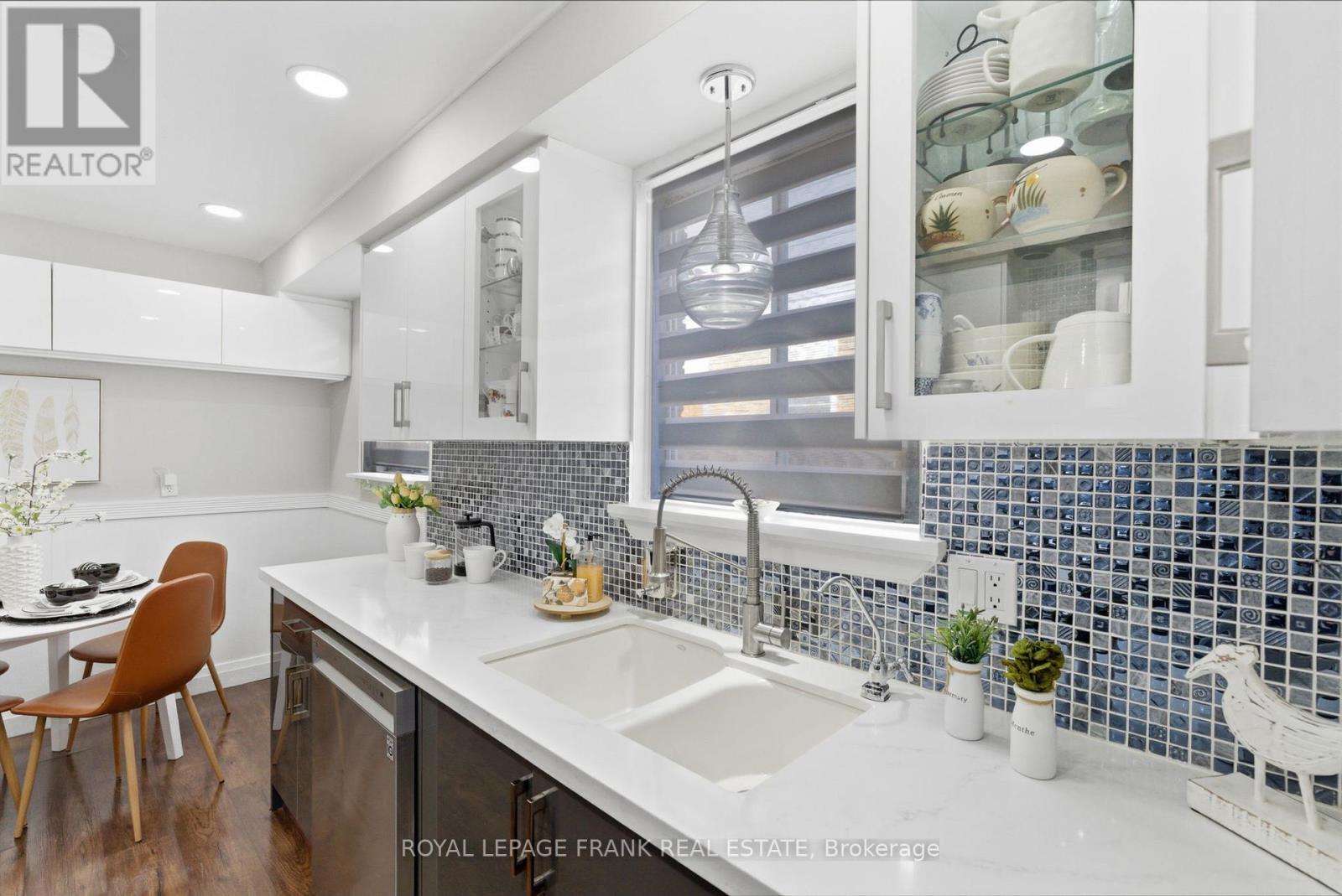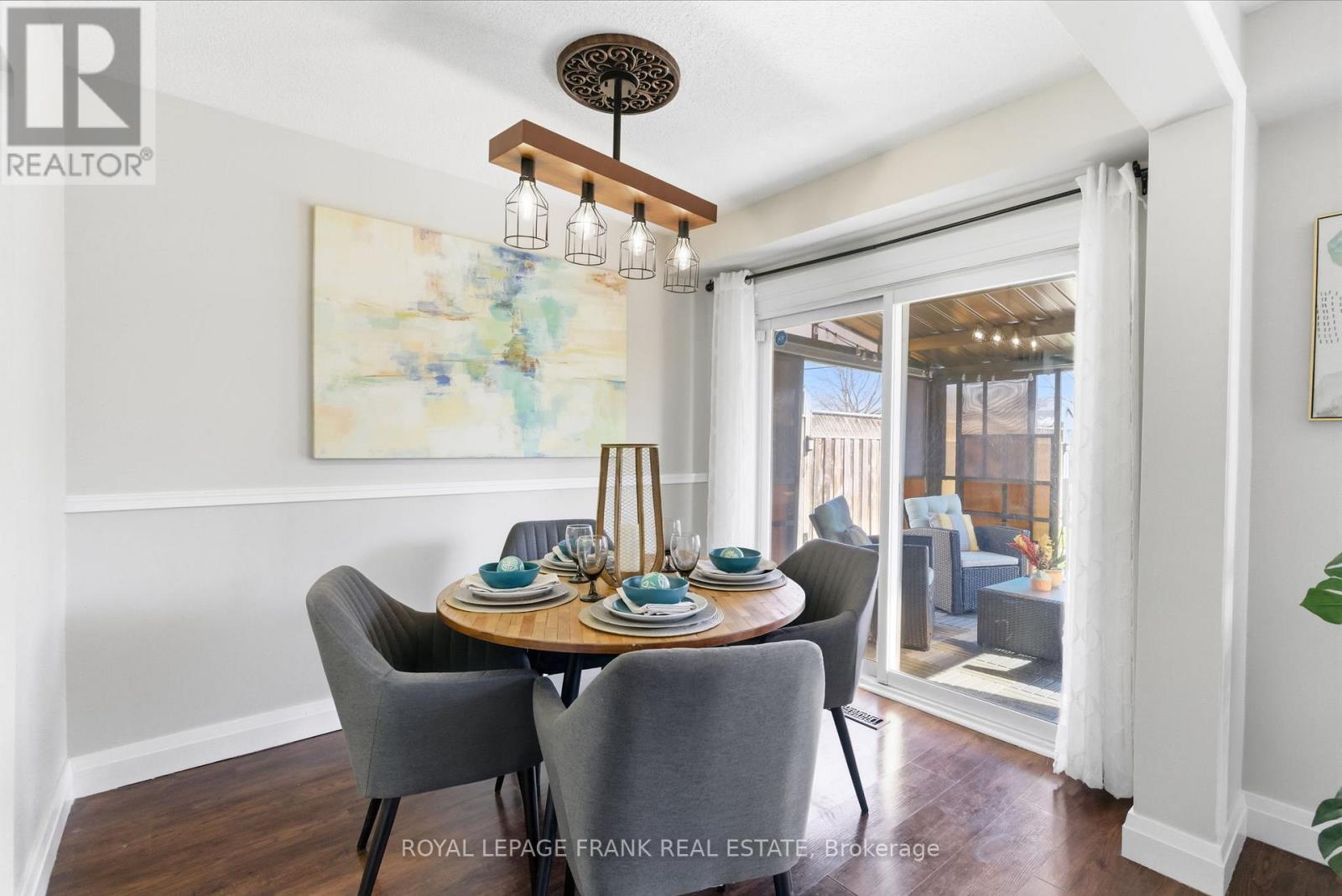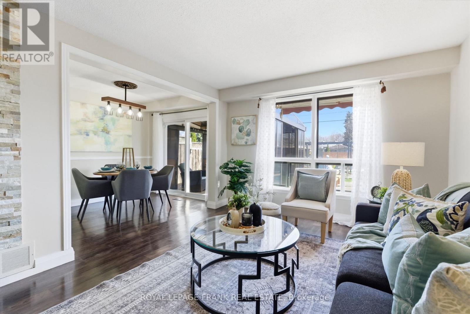 Offers anytime! Welcome to the perfect family home located in the desirable Eastdale neighbourhood of Oshawa. This beautifully updated 3 bedroom home provides plenty of space for a growing family. The remodelled modern kitchen features upgraded cabinetry, quartz countertops, stainless appliances, backsplash and pot lights. The dining area walks out to a covered gazebo and fully fenced landscaped backyard - perfect for entertaining. There are two separate living rooms - one which can be used as a convenient home office. Upstairs, you'll find 3 generous sized bedrooms. The primary bedroom includes a walk-in closet and updated semi-ensuite with a soaker tub and glass shower. The basement is fully finished, featuring a dry bar and plenty of storage space. Parking for 2 vehicles in the driveway. Close to schools, parks, public transit, all amenities and 401 access. New A/C in 2025. Kitchen renovated in 2021. Luxury vinyl plank flooring in basement and main level updated in 2021. Refinished driveway in 2025. ** This is a linked property.** (id:64974)