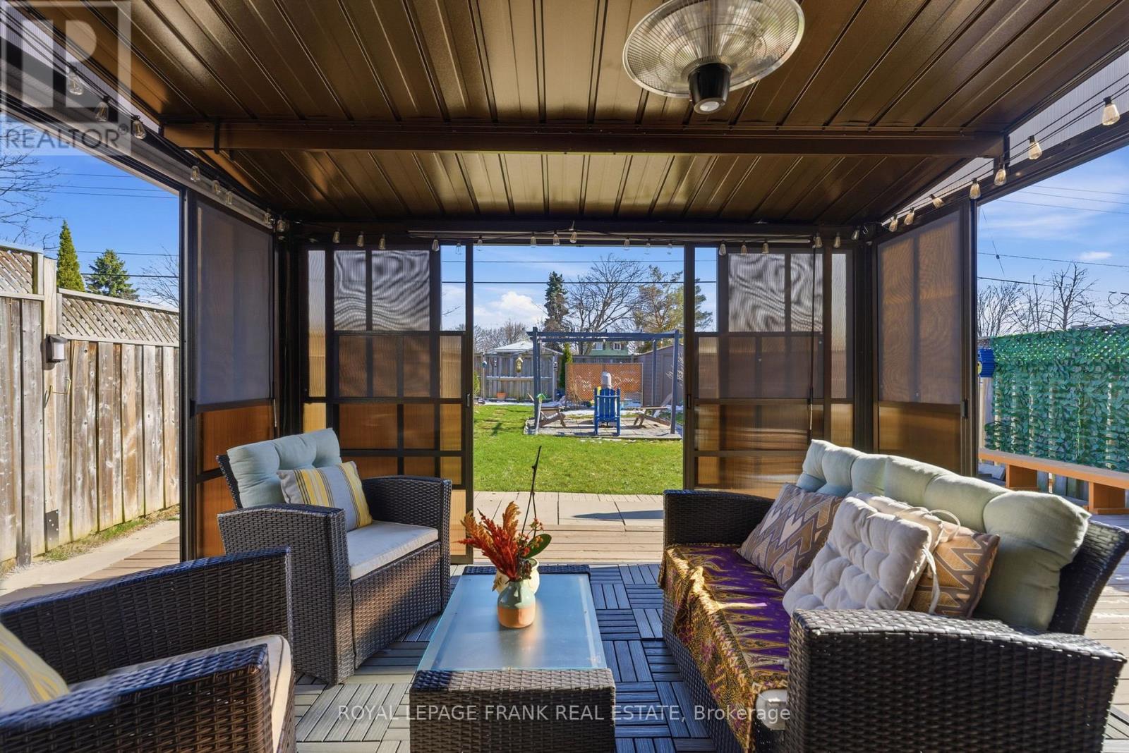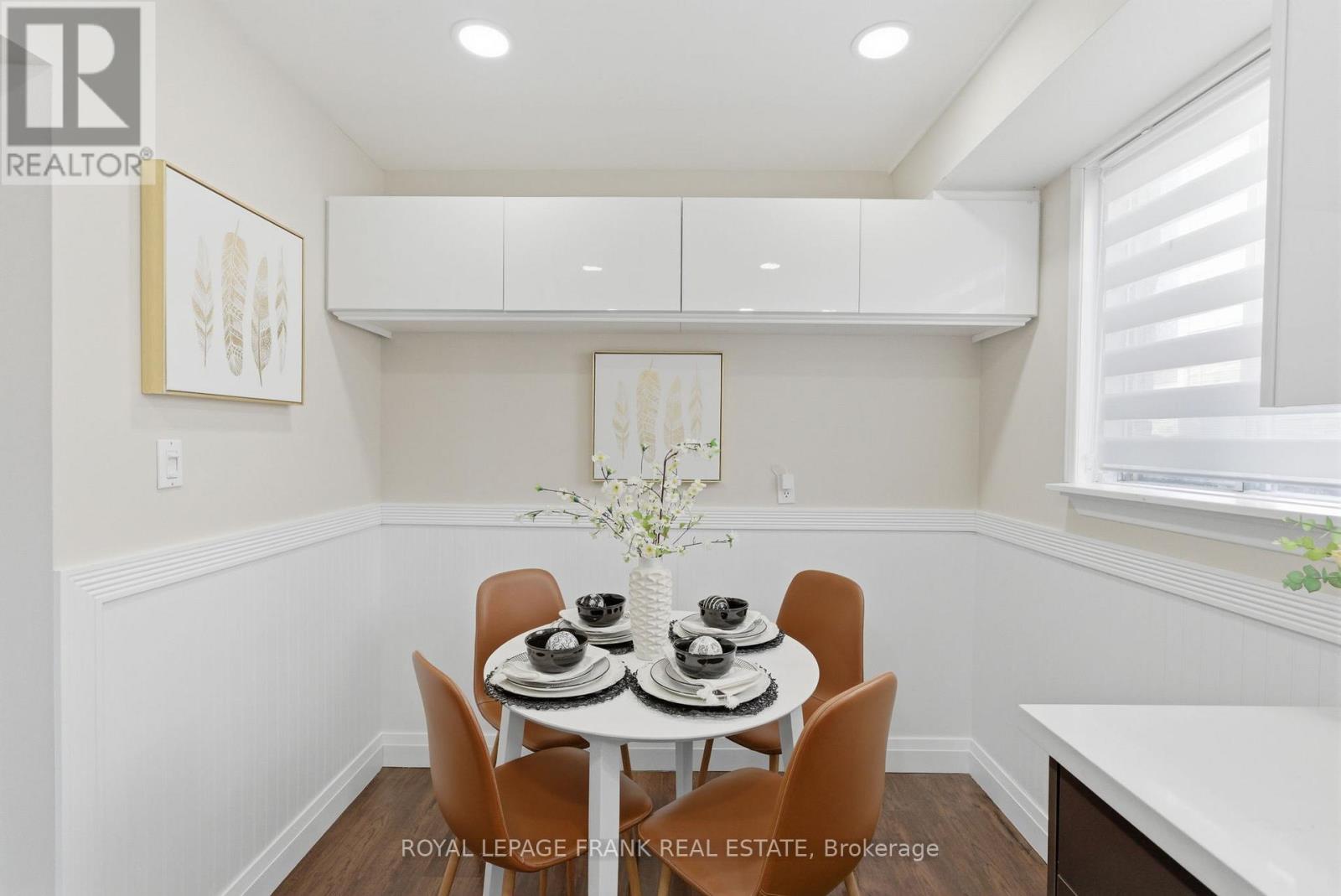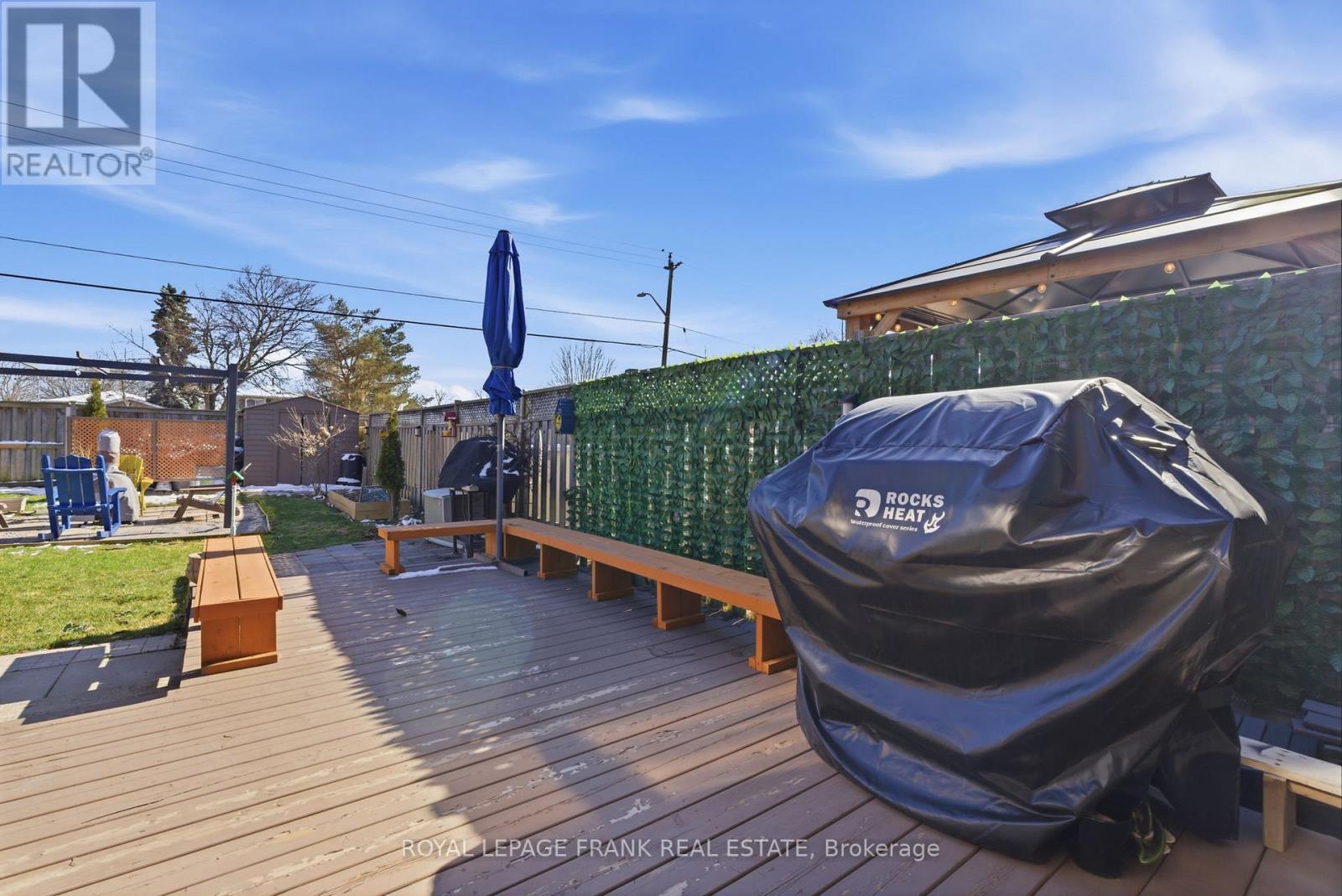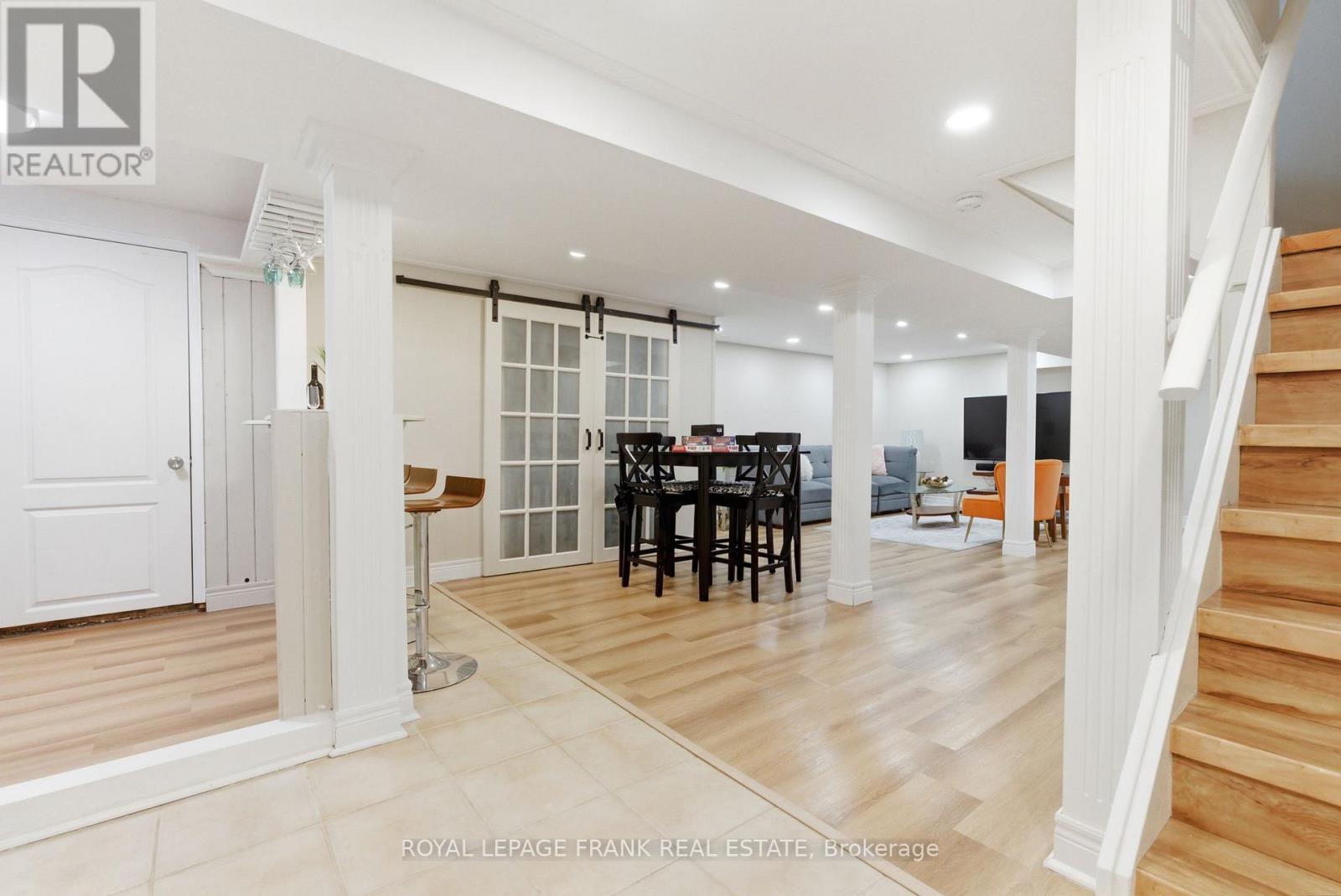 Offers anytime! Welcome to the perfect family home located in the desirable Eastdale neighbourhood of Oshawa. This beautifully updated 3 bedroom home provides plenty of space for a growing family. The remodelled modern kitchen features upgraded cabinetry, quartz countertops, stainless appliances, backsplash and pot lights. The dining area walks out to a covered gazebo and fully fenced landscaped backyard - perfect for entertaining. There are two separate living rooms - one which can be used as a convenient home office. Upstairs, you'll find 3 generous sized bedrooms. The primary bedroom includes a walk-in closet and updated semi-ensuite with a soaker tub and glass shower. The basement is fully finished, featuring a dry bar and plenty of storage space. Parking for 2 vehicles in the driveway. Close to schools, parks, public transit, all amenities and 401 access. New A/C in 2025. Kitchen renovated in 2021. Luxury vinyl plank flooring in basement and main level updated in 2021. Refinished driveway in 2025. ** This is a linked property.** (id:64974)