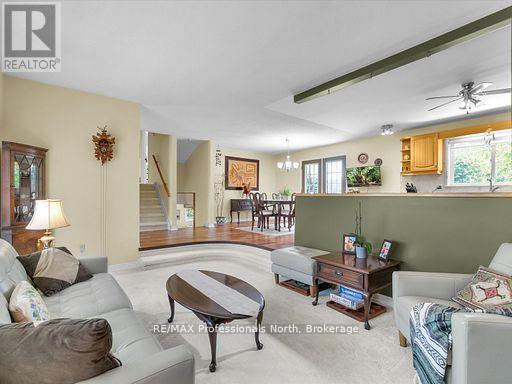 PUBLIC OPEN HOUSE- SAT 11TH @ NOON - 2 PM. Great Opportunity to own this property ideally and conveniently located in Premier rural area of Bracebridge just steps to Bowyer's Beach and Patterson-Kaye Resort/Seasons Restaurant on Lake Muskoka, 2 min to George Road Public Boat Launch, 3 min to Highlands Golf Club and 5 minute drive to Town and to South Muskoka Golf and Country Club. This very well maintained 3 bedroom/2 bathroom home offers a unique country oasis to behold with almost 2000 sq ft of finished living area (2600 sq ft total). Gentle and beautifully landscaped yard is a show piece and is approximately 1 acre in size and features generous parking and outside storage areas, and plenty of play areas for kids and summer get togethers. Enjoy the long open and forested views to the east, westerly year round sunsets and the abundant wildlife that visit the property. Relax and on your choice of either front or rear (12'X26') cedar decks or the ground level 12'x22' private rear patio, or unwind in the evenings around the cozy wood fire pit. Well maintained and upgraded home features open concept main level kitchen/dining/living room area with walkout to both decks. Lower area features spacious and bright family room with gas fireplace with walk out to rear patio and fire pit area; rec room/office/hobby room and storage rooms. Upper level features Primary Suite with 3 piece ensuite overlooking the rear yard, 2 additional bedrooms and 4 piece bathroom. Upgrades include Roof Shingles (2024), both bathrooms, High Efficiency Furnace and A/C, Scraped Walnut Floors, GenerLink for Power Backup and 6 stainless steel appliances. Other features include 280' drilled well (great water!) attached 22'X23' garage, 20'X20' outbuilding, central vac and recently inspected septic system. Home Inspection report available upon request. ULTRA HIGH SPEED BELL FIBRE INTERNET SERVICE INSTALLED (id:64974)