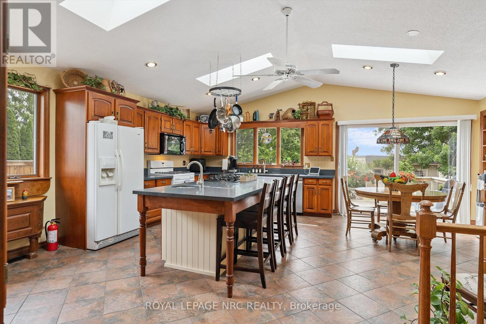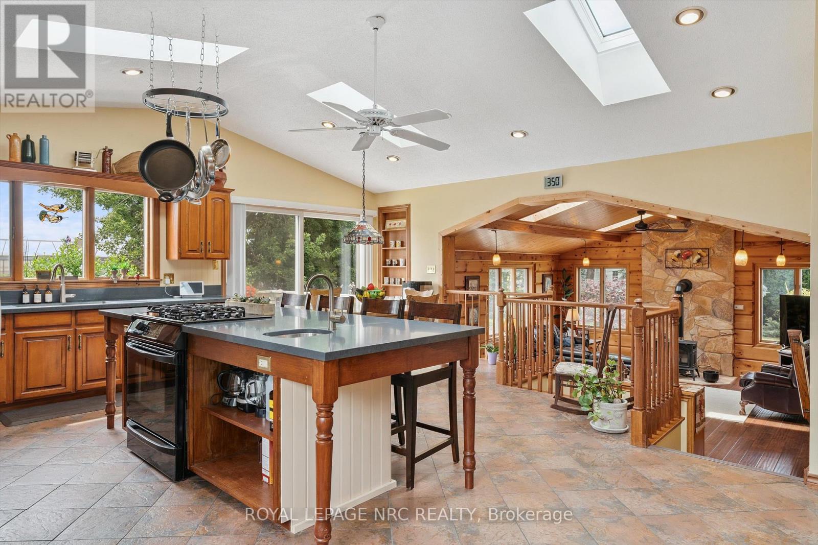 Country Living on the edge of the city. This attractive rural home is situated on a paved road close to amenities yet far enough from the hustle & bustle of city life. This 2.5 storey home has a huge front veranda along with a courtyard entry leading to a large mud room and access to the rear family room addition which was built in 1991. This massive, open concept kitchen and family room is the heart of the home. The kitchen features an island with a prep sink, Quartz counters, vaulted ceiling, 4 skylights, built-in display cabinet & 2 gas stoves/ovens perfect for a busy kitchen. This area is ideal for the person who loves big family gatherings or just loves to entertain. The kitchen overlooks the massive family room designed with a vaulted ceiling and another 4 skylights, a gas fireplace & pine walls. Main floor also offers a 3 piece bathroom with shower, formal dining and living rooms plus a cozy sitting area next to the bay window & another gas fireplace. Upstairs are 3 bedrooms, a bathroom with a jet tub and a walk up staircase to the 3rd level and an undeveloped attic. A future finished room in the attic would measure approximately 16' x 14' and could make a beautiful room for a bedroom retreat or office space. Some notable features of the home are: 8 skylights, 2016 roof shingles (Timberline), backyard garden shed, drywalled garage with high ceiling & interior that measures approx. 23' X 21'. The property is nicely landscaped and measures 100' x 164'. Set back off the road, the concrete driveway offers lots of parking for 6 vehicles. Make this your home and experience life on the edge of the city with the convenience of being a short distance to shopping, hospital, Hwy access, Green Ribbon Trail, Port Dalhousie shops, dining & the beach. And now with Bell Fibe internet. (id:64974)