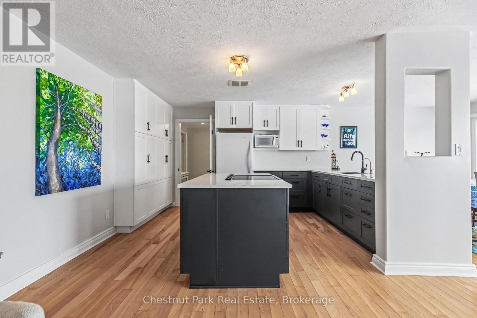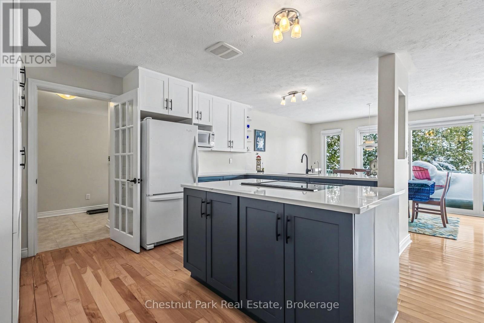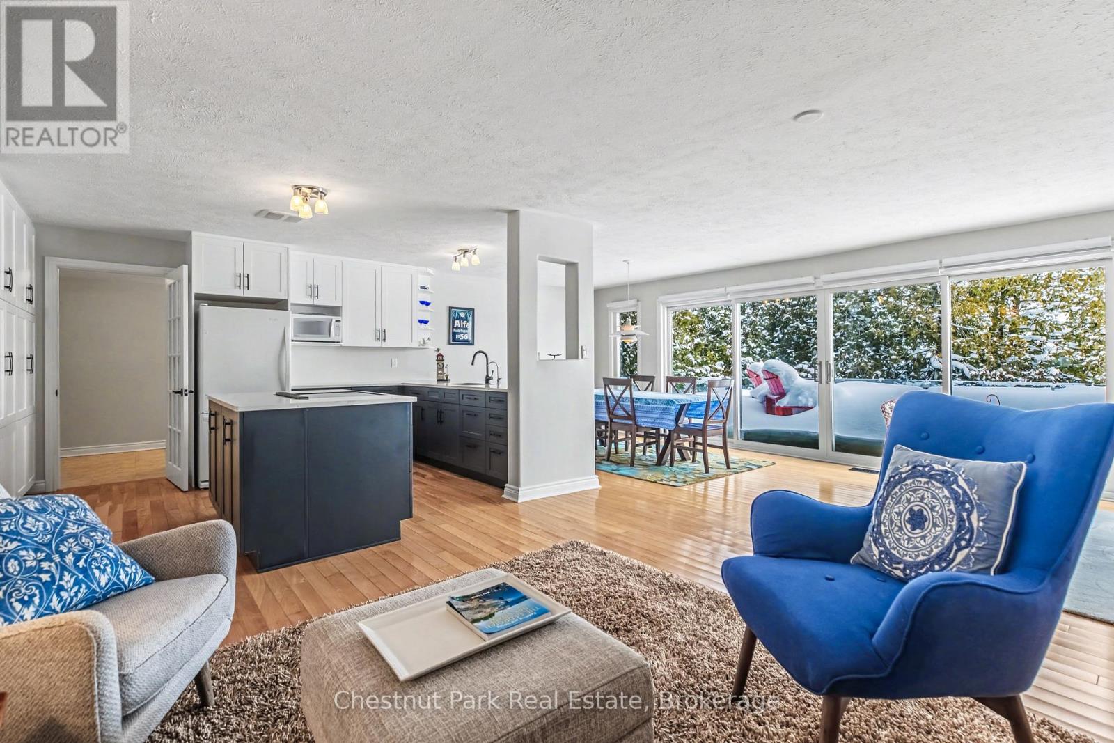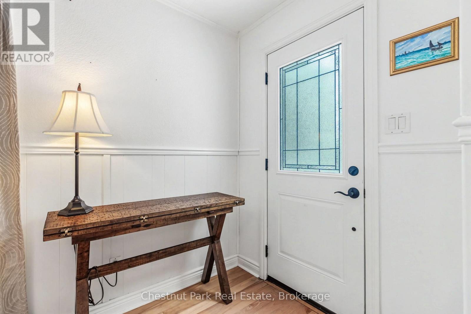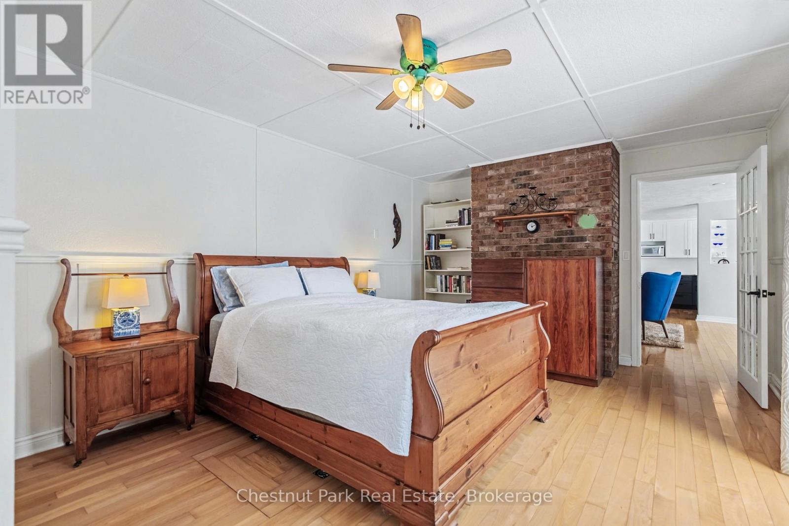 Set along the coveted shores of Isthmus Bay near Lion's Head, this exquisitely renovated, year-round 3-bedroom, 2-bath waterfront residence offers refined living on Georgian Bay. With 75 feet of pristine shoreline, two lots and uninterrupted bay views, the property provides direct access to crystal-clear, Caribbean-blue waters and iconic Bruce Peninsula scenery. The home showcases Manitoulin beechwood floors, a designer kitchen, oversized double patio doors, and a comprehensive suite of upgrades including new siding, windows, doors, and expansive decks that seamlessly connect indoor and outdoor living. Spacious bedrooms with generous storage, an inviting fireplace, and light-filled living spaces create an atmosphere of comfort and sophistication, ideal for both private retreats and elegant entertaining. Across the road, the separate waterfront parcel features a detached double garage with loft and a water-side deck, offering plenty of potential space for accommodating guests, pursuing hobbies, or enhancing the estate's versatility. With a rare flat rock shoreline, multiple outdoor lounging areas, and breathtaking Georgian Bay sunsets, this turn-key offering, on almost half an acre of land, represents a premier opportunity to own a distinguished waterfront escape on the Bruce Peninsula. (id:64974)
