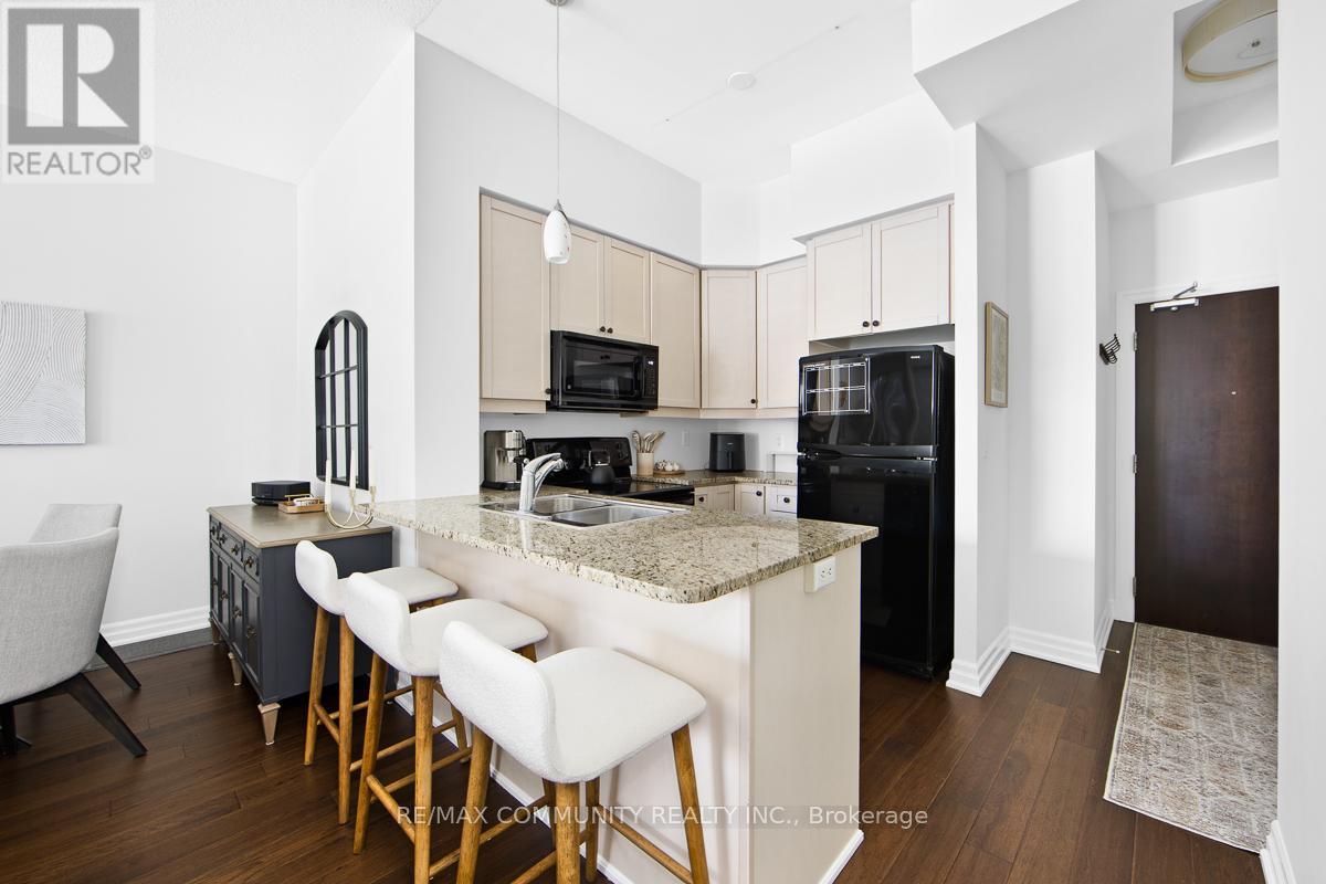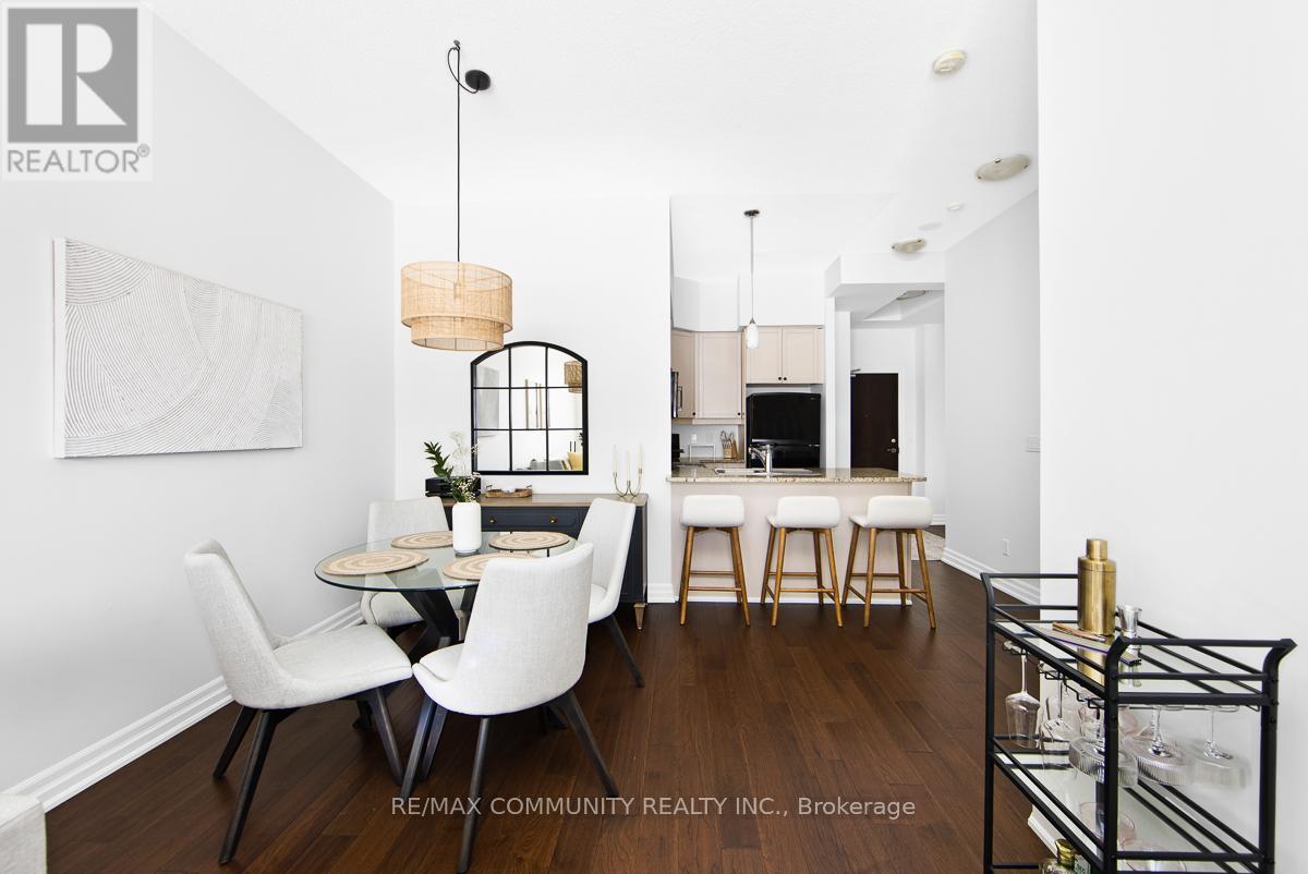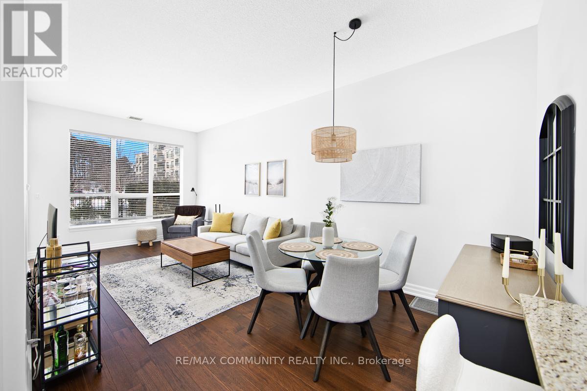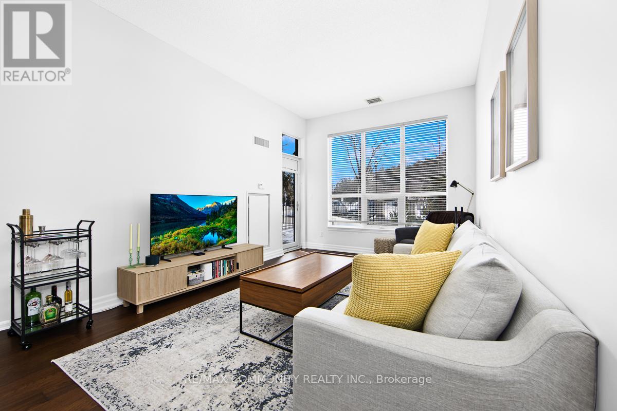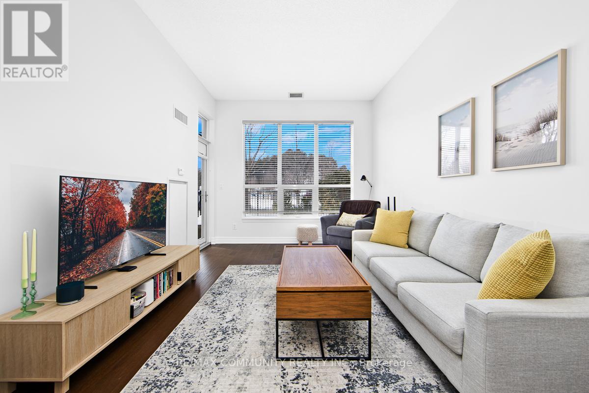 Welcome to Ridgewood Residences - where condo living meets private outdoor space. Enjoy the best of condo living with the rare bonus of your own private outdoor space. This spacious, well maintained ground level residence unit sits in one of Aurora's most desirable neighborhoods. Inside, you'll find hardwood flooring throughout, granite countertops in the kitchen, and impressive 10-foot ceilings that create an open, airy feel. Being on the ground floor means no waiting for elevators and easy access in and out. Step outside to your exclusive-use patio-approximately 380 square feet, partially covered, with garden and grass, ideal for relaxing or entertaining. Residents enjoy premium amenities including concierge service, an outdoor saltwater pool, fitness centre with sauna and steam room, library, meeting room, BBQ area, guest suites. Additional features include in-suite laundry, one underground parking space, and a private storage locker for added convenience and storage. Just steps from the Aurora Senior Centre, Parks, Tim Jones Trail, the GO Train, Municipal Dept and everyday shopping and dining, this is a rare opportunity to own a ground-floor condo unit in one of Aurora's most desirable communities. (id:64974)