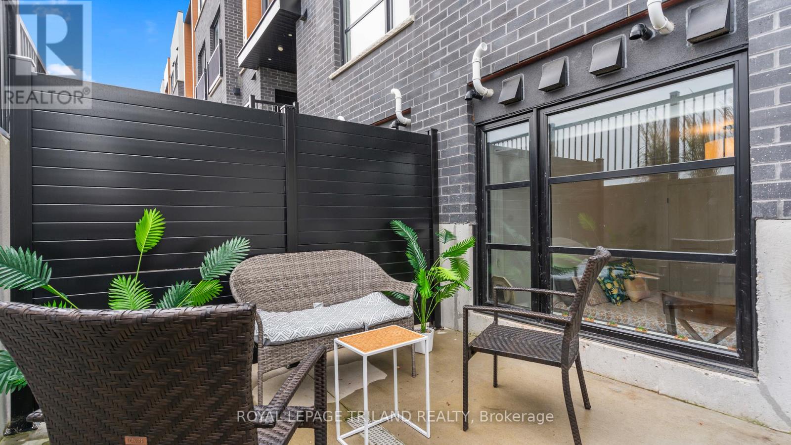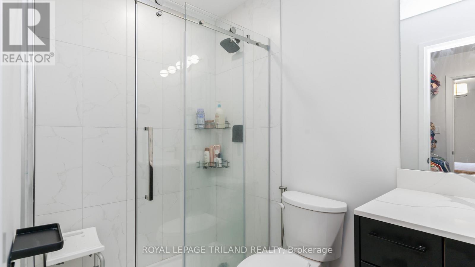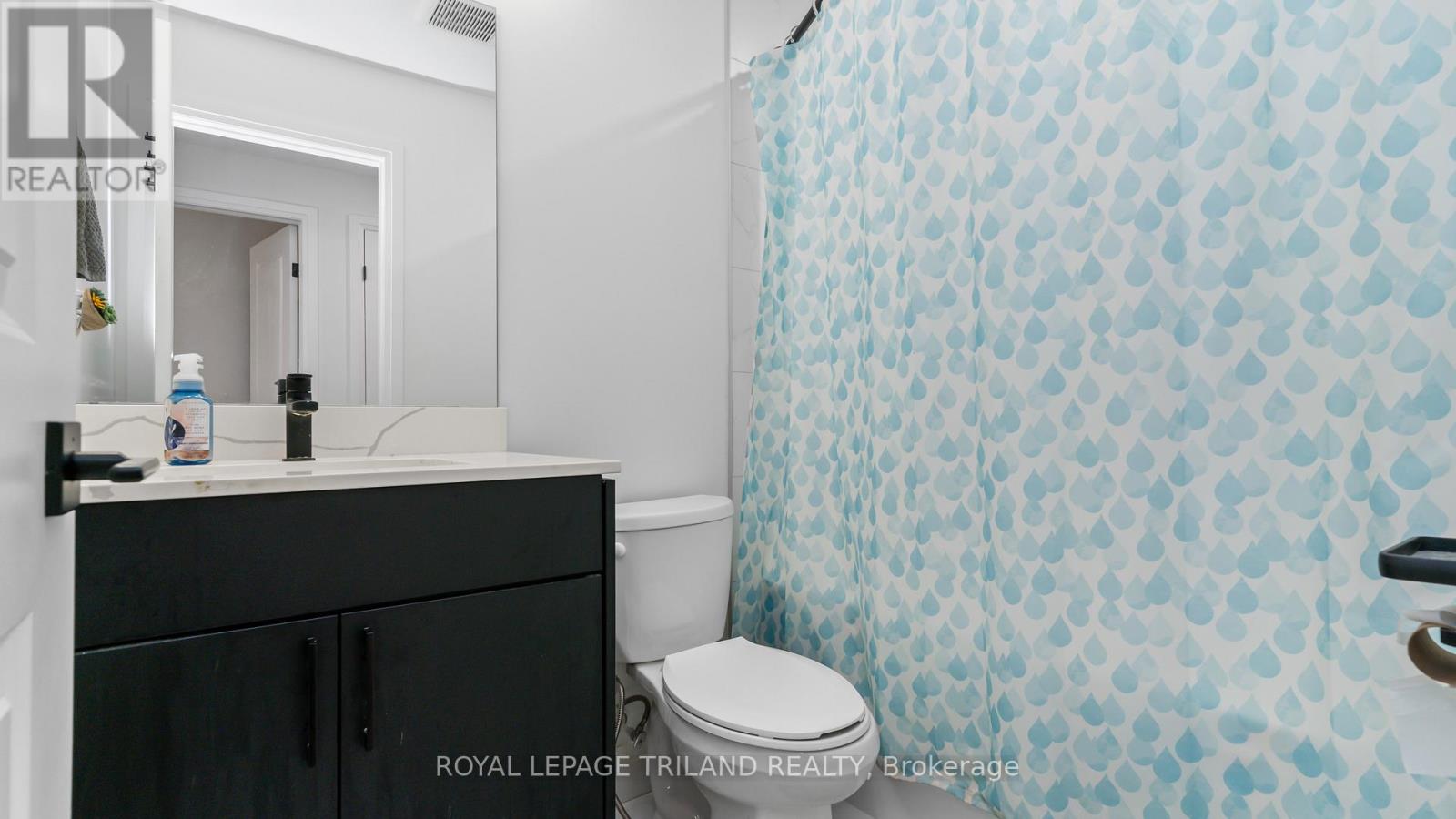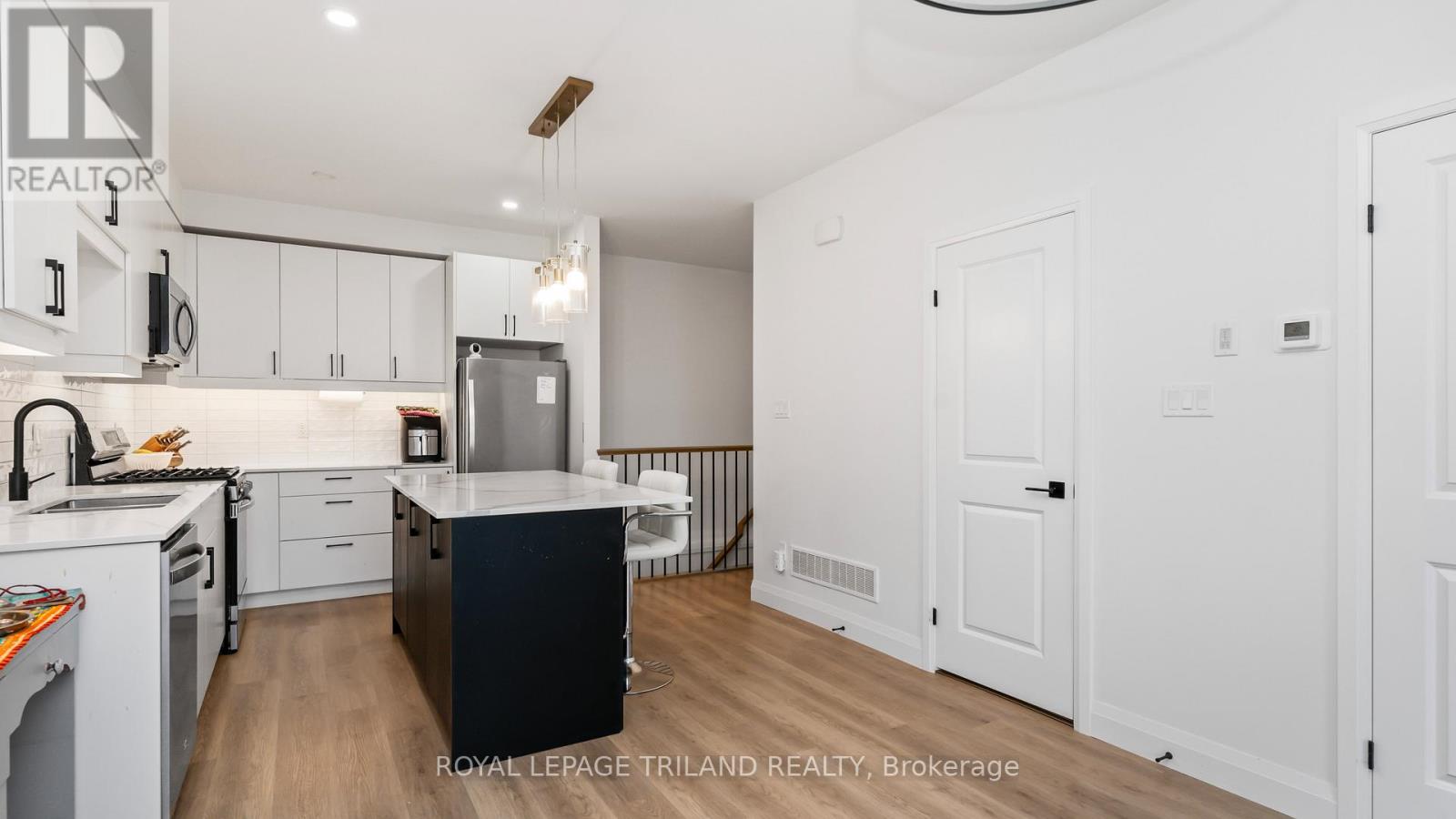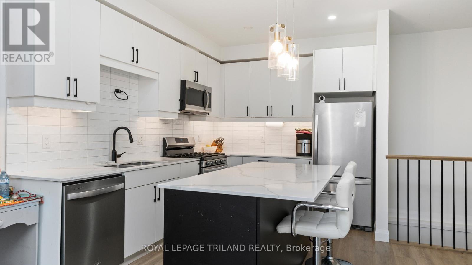 Welcome home to this beautifully designed 2 bedroom, 3 bathroom townhome, with modern finishes in London's desirable Lambeth neighbourhood. Entering the front door into the open concept living room area, you notice plenty of natural light coming in from the large windows. Looking into the kitchen, you see all new stainless-steel appliances, including the gas range. Just adjacent to the kitchen is the main floor 2-piece power room. The lower-level features 2 bedrooms, with the primary having a walk in closet and 3-piece ensuite bathroom. There is also a 4-piece bathroom and laundry located on this level. Outside there is a lovely lower level terrace, ideal for a play area or relaxing seating area. Close to major highways, amenities and London Transit, this home is well situated in the southwest part of the city and still close to nature and sought after schools. Condo fees: $179/month. (id:64974)