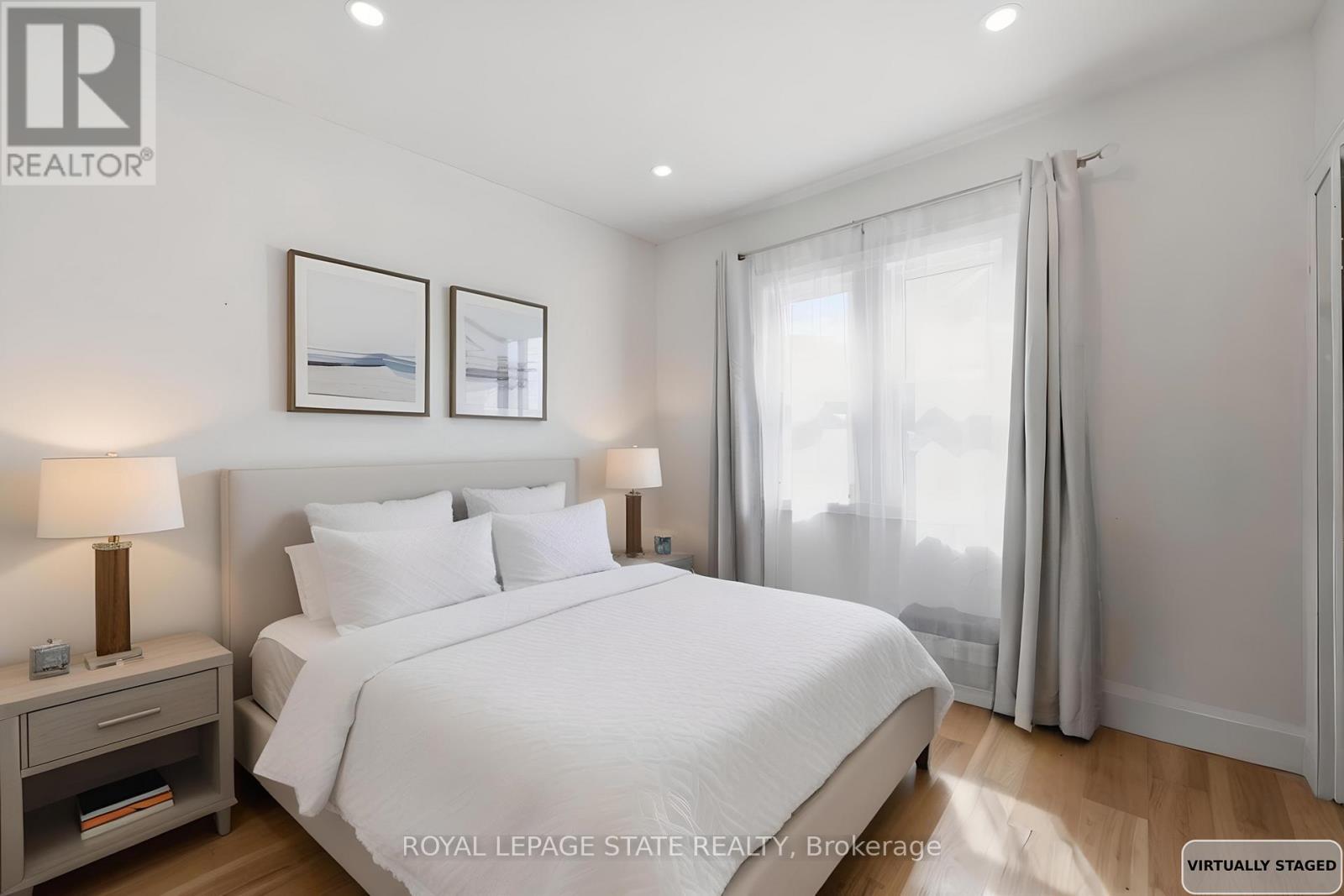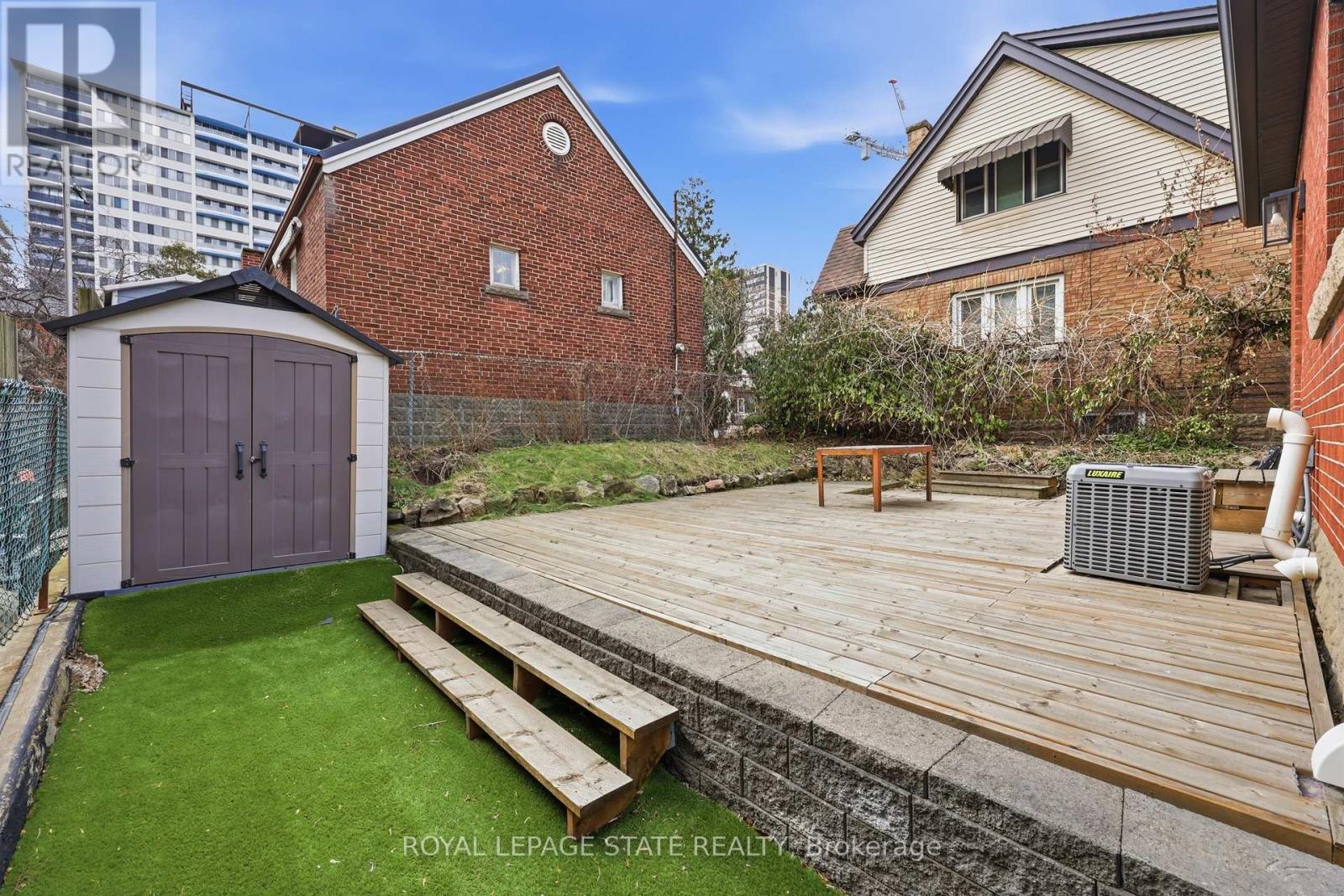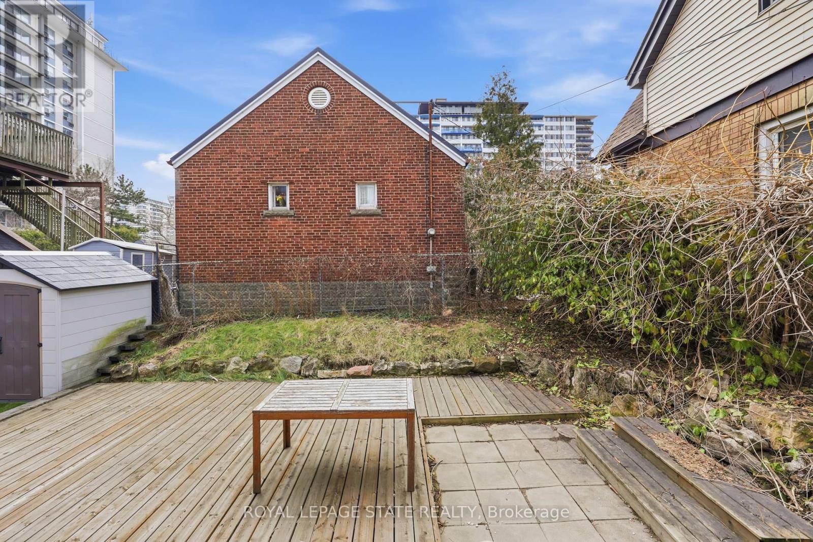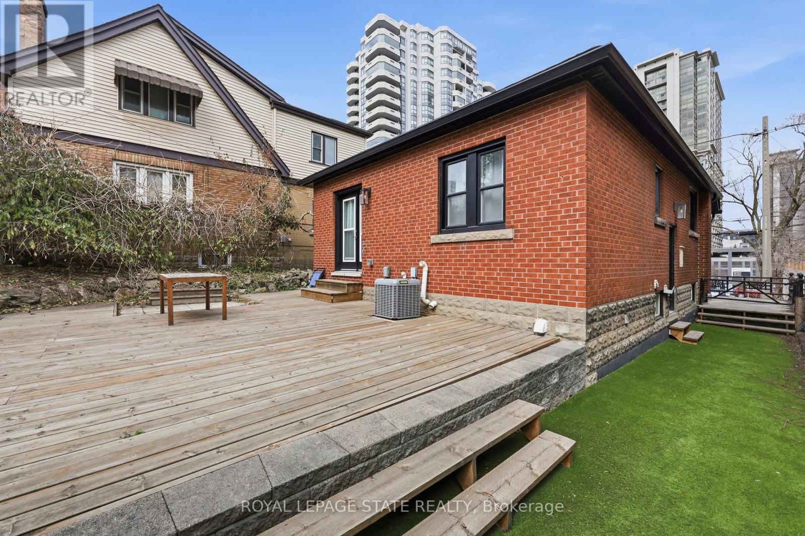 Beautifully renovated open-concept bungalow in the heart of trendy Durand, offering over 1,500 sq ft of finished living space including a fully finished lower level. The home sits on the historic grounds of the former Wesanford Estate gardens and still showcases the charming original iron and stone wall, adding a unique touch of character. The custom kitchen is filled with natural light from updated windows and features stainless steel appliances, quartz countertops, and a classic subway tile backsplash, all modern and move-in ready. Major updates completed in 2022 include the roof, soffits, eavestroughs, furnace, HVAC vents, electrical wiring, hardwood flooring throughout both levels, solid wood interior doors, and 6-inch baseboards, all professionally installed. A private driveway and garage-a rare find in this sought-after neighbourhood-add to the home's appeal, along with solid double-brick construction. The spacious deck overlooks a low-maintenance backyard complete with a storage shed and rough-in for a future hot tub, perfect for relaxing or entertaining. Ideally located just minutes from Locke Street scenic trails, shops, restaurants, and convenient GO Train access, offering the perfect blend of lifestyle, charm, and convenience. (id:64974)