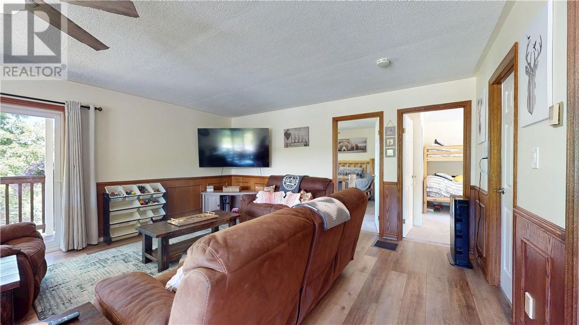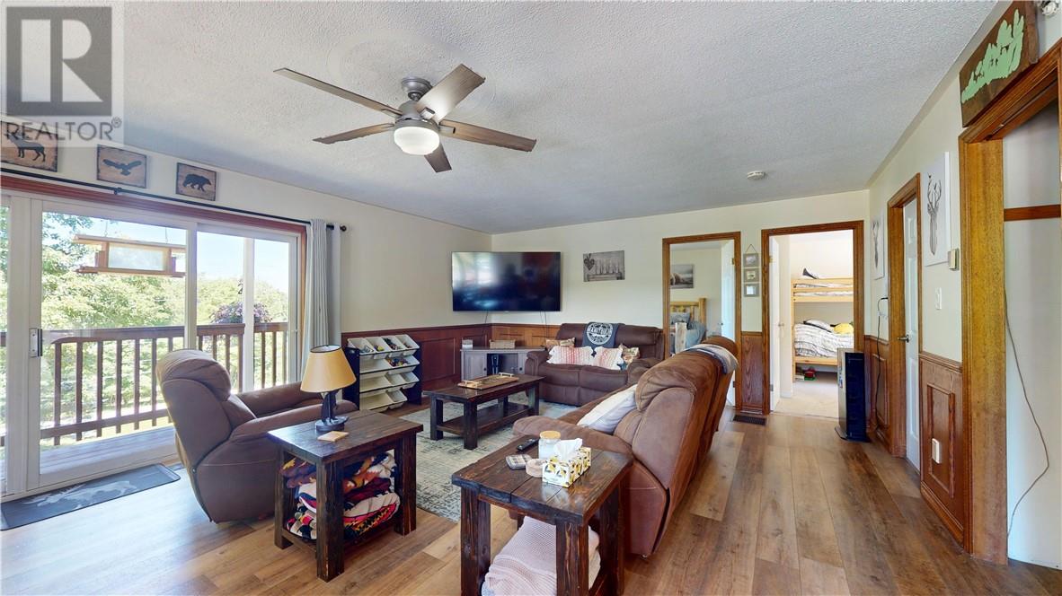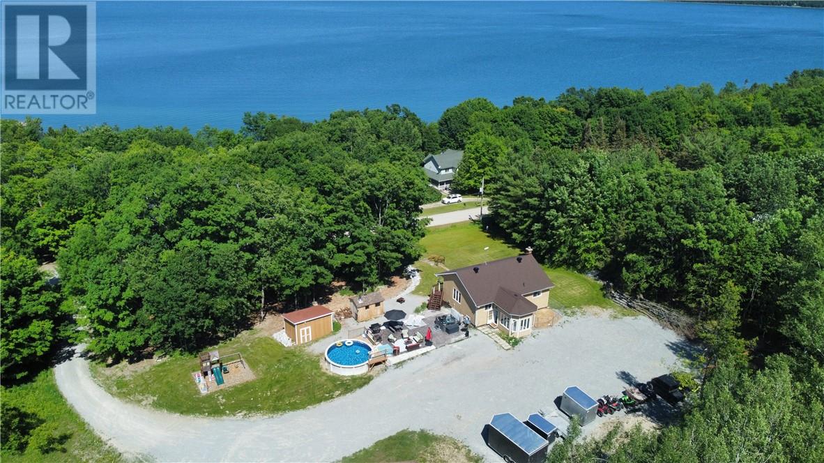 Welcome to this beautifully maintained bungalow in the sought-after Maple Ridge area of Kagawong, offering stunning views over Mudge Bay. Set on a private, landscaped 1.1-acre lot with a peaceful forest backdrop, this 2,136 sq ft home (1,138 sq ft above grade) blends comfort, functionality, and nature just a short walk from the sandy beach and nearby trails. The home features 2+1 bedrooms, 2 full bathrooms and den, with a bright open-concept layout that includes the kitchen, dining, and living areas. A cozy family room and a sun-filled sunroom add to the generous living space. From both levels, step outside to enjoy the views from the upper balcony or relax on the lower walkout porch. Thoughtfully updated and well-equipped, this home includes a whirlpool tub, a pellet stove, a mini-split heat and air conditioning system. Five appliances are included for added convenience. The fully finished walkout basement offers flexibility for guests or extra living space. Outside, you'll find everything you need for outdoor enjoyment: a double garage, storage and garden shed and an above-ground pool. Whether you’re looking for a full-time residence or a peaceful retreat, this home offers year-round comfort in a stunning natural setting. (id:64974)