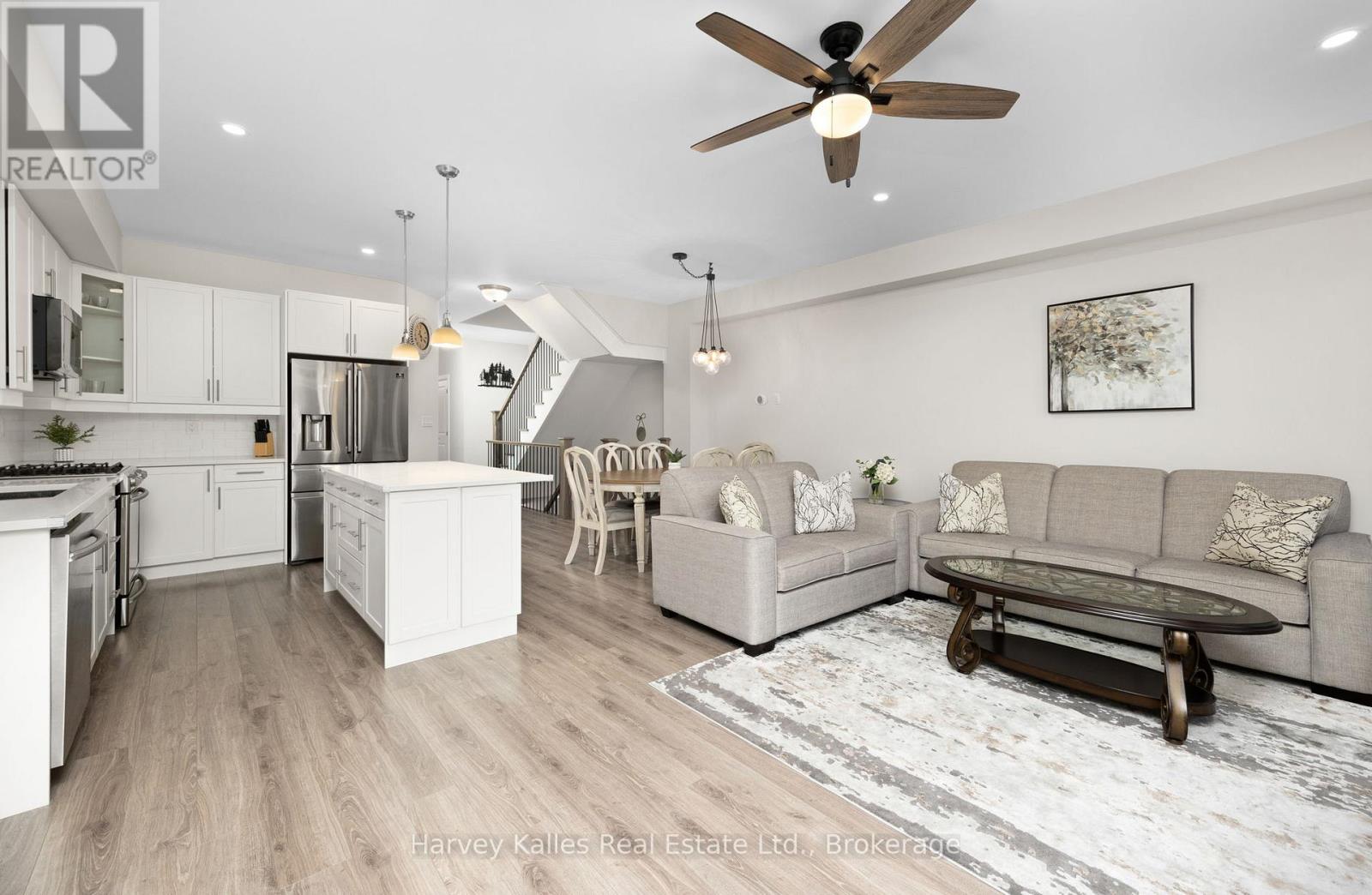 Seasonal monthly lease available starting April 13th. This charming 3 bedroom/ 3 bath, fully furnished home near the base of Blue Mountain Resort. An open concept floor plan with neutral colours, gas fireplace, quartz countertops, spacious bedrooms, finished basement and views of the ski hill from your living room. This property sleeps up to 8 people, has a fenced backyard with patio and parking spaces for 2 cars. Access the year-round heated community pools, gym and sauna! Tons of trails to walk or bike down. Close to Blue Mountain resort and a short drive into town. Spend your spring season in this lovely home in Blue Mountain. Fully furnished home with towels and linens; fully equipped kitchen. A great property to enjoy for any season. Rental application required. (id:64974)