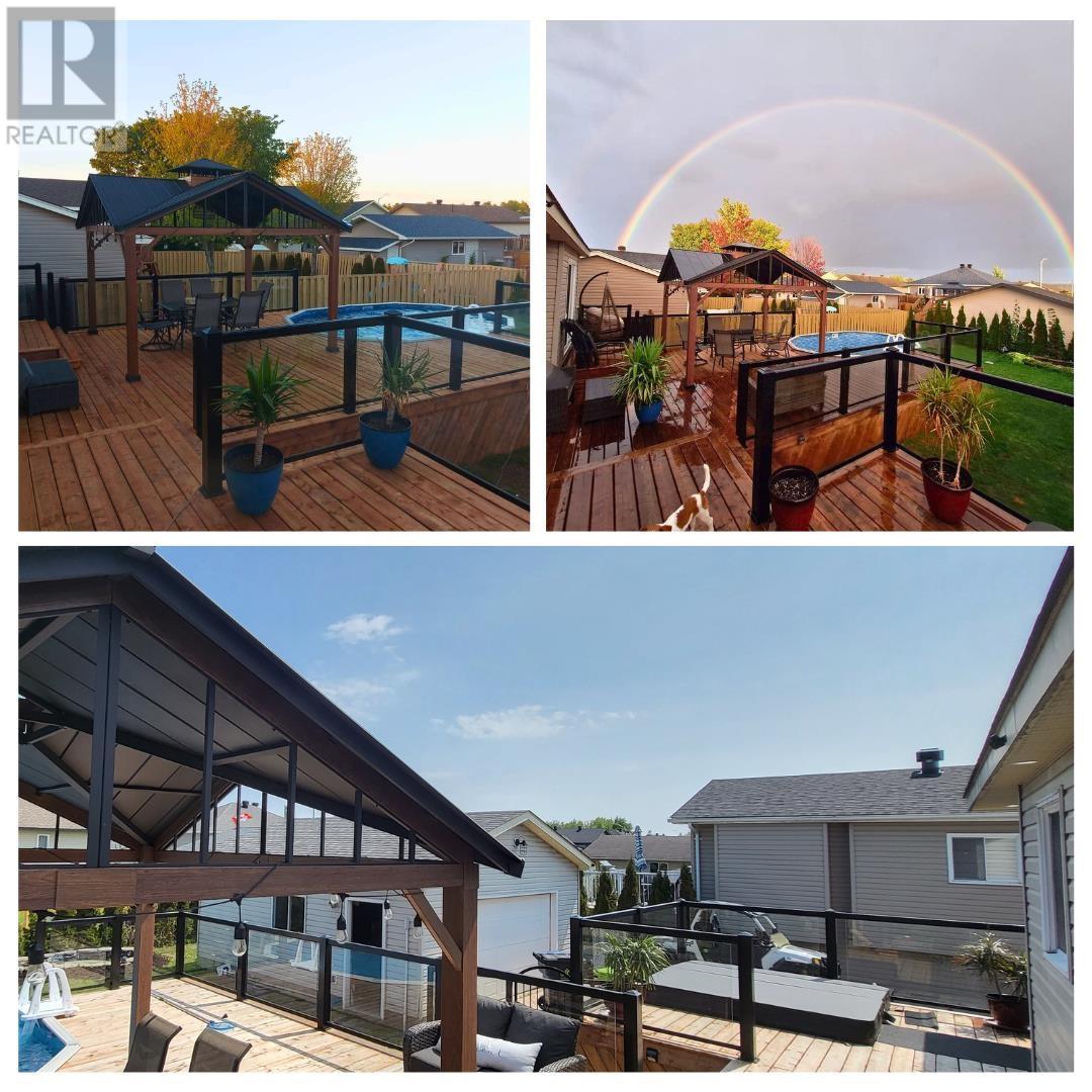 Welcome to this beautifully updated **3+1 bedroom high-rise bungalow** East end! Walking distance to Grandview Public School. Built in 2003. Inside, you’ll find a bright open-concept kitchen, new interior doors on main floor. Featuring two full bathrooms. Upstairs bathroom has heated flooring. The lower level is finished with new flooring and trim offering excellent additional living space. Step outside and prepare to be impressed by the massive two-tiered deck (only 3 years old), featuring regal posts, sleek glass railings, and two patio doors providing seamless access from both the primary bedroom and dining room. The upper tier hosts a sunken hot tub, while the lower tier wraps around part of the above-ground pool creating the ultimate space for entertaining or relaxing. Don't miss the outdoor mounted t.v! The metal gazebo with architectural roofing adds style and shade, while a backyard pond with koi and gold fish complete this private oasis. Highlights to the home are a stamped concrete double driveway, 1.5-car garage that’s wired and insulated, house and garage roof reshingled 3.5 years ago, gas heat, central air, Venmar system, and Level 2 EV charging. Making this home as efficient as it is impressive. Added bonus! soffit pot lights on dimmable switches installed at front, driveway side and back of house and on the front and north side of garage. (id:64974)