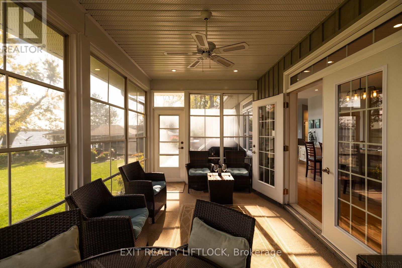 Welcome to your slice of heaven in Kawartha Lakes! 129 Stinson's Bay Road is a meticulously maintained custom-built home resting on the pristine shores of Sturgeon Lake. Built in 2005, this property has been thoughtfully upgraded over the years to maintain its "like-new" feel and offer a truly low-maintenance lifestyle. Enjoy your morning coffee as you watch the sunrise over the lake from the back deck, lakeside patio, or three-season sunroom overlooking the water. When the weather turns cooler, the four-season sunroom becomes the perfect cozy retreat to take in the peaceful views year-round. Outside, the crystal clear waterfront is lined with stamped concrete and features a covered boathouse with a marine rail system for easy boat storage. After a day on the lake, relax in your private sauna or outdoor shower, then gather around the firepit with friends and family as the sun sets. Inside, the open concept main floor offers a bright and functional layout with plenty of natural light, ample storage, and thoughtful finishes throughout. The entire second level is dedicated to a spacious primary suite, featuring a Juliette balcony that overlooks the peaceful forest - perfect for taking in breathtaking sunsets. You'll also find a walk-in closet and a large ensuite bathroom with stunning lake views, creating a true retreat to begin and end your day. Perfectly situated between Bobcaygeon and Fenelon Falls on a quiet, paved, dead-end road, this property offers both tranquillity and convenience. Whether you're seeking a full-time residence or the ultimate lakeside getaway, this home delivers a perfect blend of comfort, craftsmanship, and waterfront living. The lake life is calling - are you ready to answer? (id:64974)