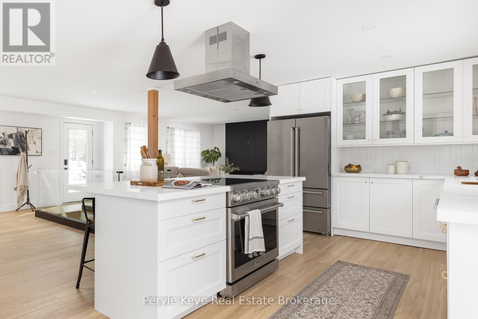 There's a reason families hold onto certain pockets of town, and this is one of them. Set within the Macauley school catchment, just min to Downtown Bracebridge and close to Wilson's Falls trails, this location finds that rare middle ground. Groceries are close. School runs stay simple. And just as easily, you will find yourself out on the trails, walking down to the falls, surrounded by nature. Extensively rebuilt and thoughtfully finished, the heavy lifting is done. Brand new septic. Mun water. Nat gas. High-speed internet.The important pieces are in place.What's left is the part you look forward to: settling in. Inside, the tone is warm and modern. Natural light moves freely across the main floor. The large windows showcase treed views. The kitchen holds its place at the centre - equipped with top of the line Thor appliances, a generous island, and a natural connection to the dining room. Meanwhile, the living room is centred around a floor-to-ceiling gas fireplace, bringing a sense of warmth and quiet focus to the space.Upstairs, the primary suite offers a sense of private separation. A 5pc ensuite and walk-in closet create a space that feels easy to return to. Two additional bedrooms and a full bath round out the second level. The lower level adds another layer. A family room that is perfect for movie nights or a dedicated home office. There is an additional bedroom, and a full bath. It's the kind of space that feels cozy and relaxing! Main floor laundry and powder room keeps things practical. The oversized, insulated garage handles everything else - vehicles, storage, gear, the details of everyday living.Outside, just over an acre of level, private land.A backyard that doesn't sit still - kids running barefoot, a soccer ball left out, and the BBQ going. Music, nature, and laughter becoming the soundtrack of summer.This is where bikes line the driveway, friendships live just down the street, and home extends beyond your front door. This is where families stay. (id:64974)