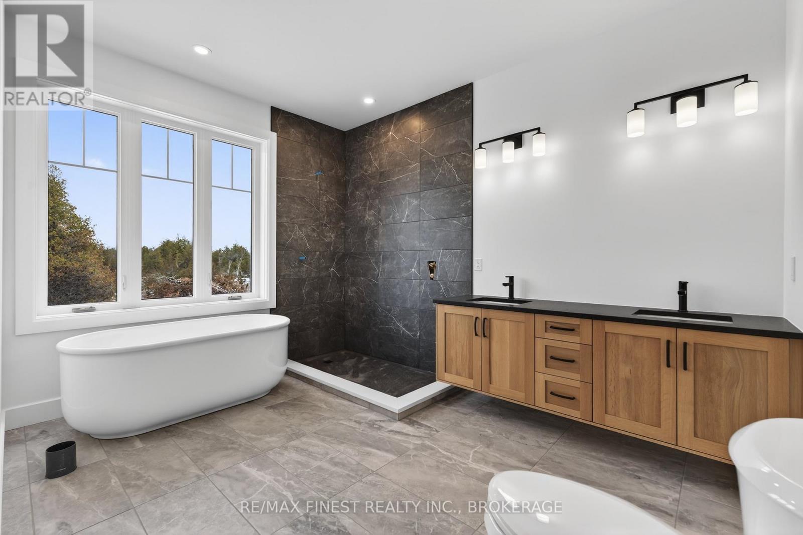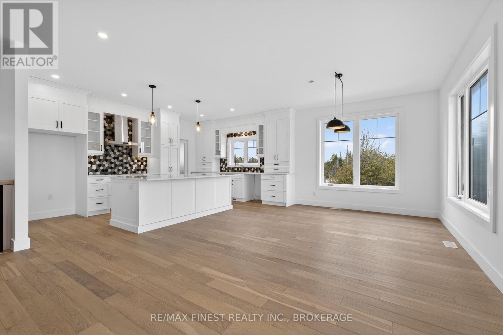 Just 6 minutes west of Kingston, this brand new MacAdam Homes custom-built 1800+ sf bungalow offers 2+2 bedrooms and 3 baths on a very private 3.1-acre parcel of land. With over 3000sf of upscale living space and an attached triple-car garage, this home will be sure to impress even the most discerning of buyers. Your oversized kitchen has an extra-large island, quartz countertops, a walk-through butler's pantry and is open to both a dining area and great room that overlook the covered rear deck and yard through stunning 10ft patio doors. The spacious master has a luxurious ensuite that features a stand-alone soaker tub, walk-in tiled/glass shower and a quartz-topped double vanity. The largely finished and very bright walk-out lower level includes a massive rec room with electric fireplace and TV hookup above. The home's additional features of note include open floor plan with 9ft ceilings; propane fireplace with custom surround; main floor laundry; oversized windows on both levels; hardwood and ceramic throughout. The upgraded insulation package with foam beneath the ground level concrete slab and additional R7.5 foam on main floor exterior walls, provides extra comfort and minimizes energy costs. This home has it all. For buyers willing to act quickly, there is still an opportunity to select your own exterior finishes! Call to book a showing before it's too late. (id:64974)