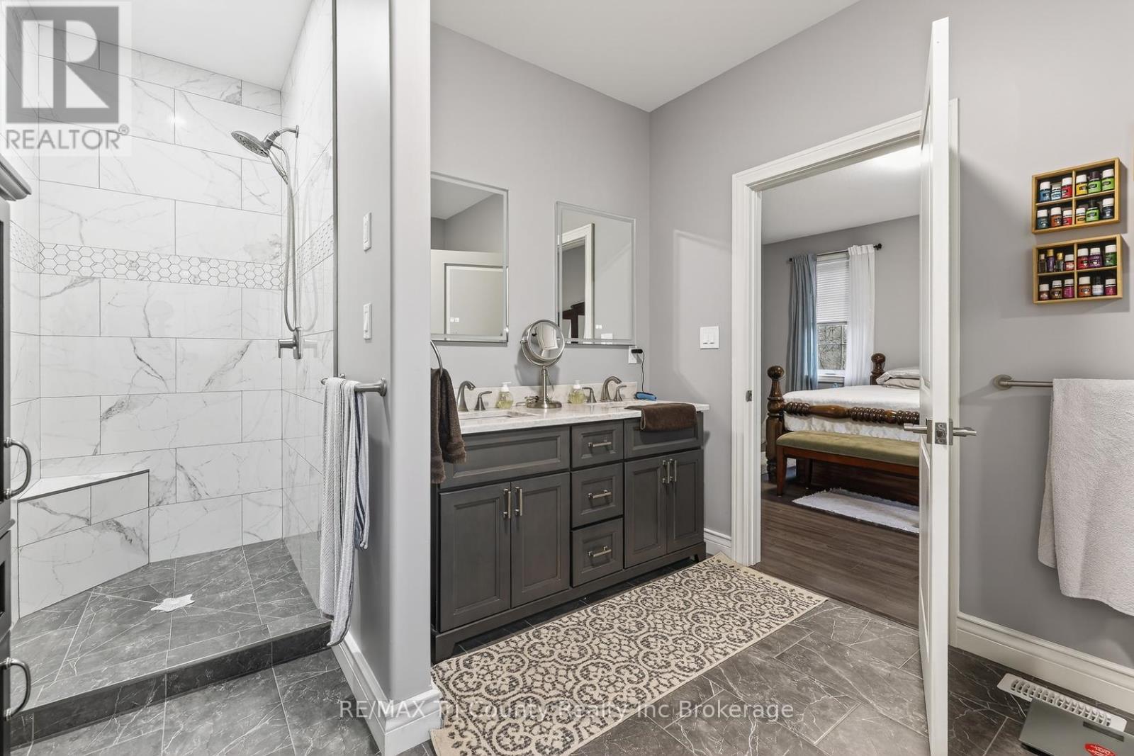 Welcome to this exceptional custom-built home on 1.06 acres, completed in 2022, offering 2,260 sq ft of above grade finished living space designed with both luxury and functionality in mind. Set in a peaceful country setting, this 3-bedroom, 3-bathroom residence delivers the perfect blend of modern comfort and rural freedom. The main floor showcases a stunning open-concept design, highlighted by an oversized quartz island that anchors the kitchen-perfect for entertaining or everyday living. Thoughtfully designed, the kitchen also features a stylish coffee bar and premium finishes throughout. Convenient main floor laundry adds to the home's practicality. The spacious primary suite is complete with a walk-in closet featuring built-in wardrobe organizers and a luxurious 5-piece ensuite, including a soaker tub. The walk-out basement offers incredible flexibility with in-law suite potential, already equipped with a bathroom and a bright, very large, open layout ready for your personal vision. Outdoors, the impressive 40' x 60' fully foam-insulated shop is ideal for hobbyists, storage, or business use. Featuring a 14' x 14' RV door and an additional 8' x 9' side door, it's built to accommodate all your needs. Additionally, there are two sand point wells and a lawn sprinkler system. Energy efficiency takes centre stage with an 8kW solar system (20 panels), significantly reducing utility costs while minimizing your environmental footprint. A full battery backup system ensures peace of mind, capable of powering the entire home for days during outages. Energy efficiency is top of mind with an 8kW solar system (20 panels), significantly reducing utility costs while minimizing your environmental footprint. Plus, enjoy peace of mind during power outages with a full battery backup system ensures peace of mind, capable of powering the entire home for days. Offering space, and style this property is a rare opportunity to enjoy refined country living without compromise. (id:64974)